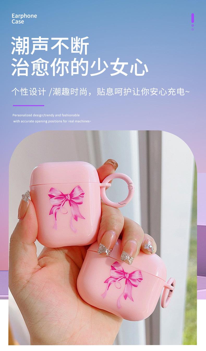 Estuche protector con lazo rosa para auriculares inalámbricos Bluetooth Apple AirPods 4 Pro2 de 3.ª generación