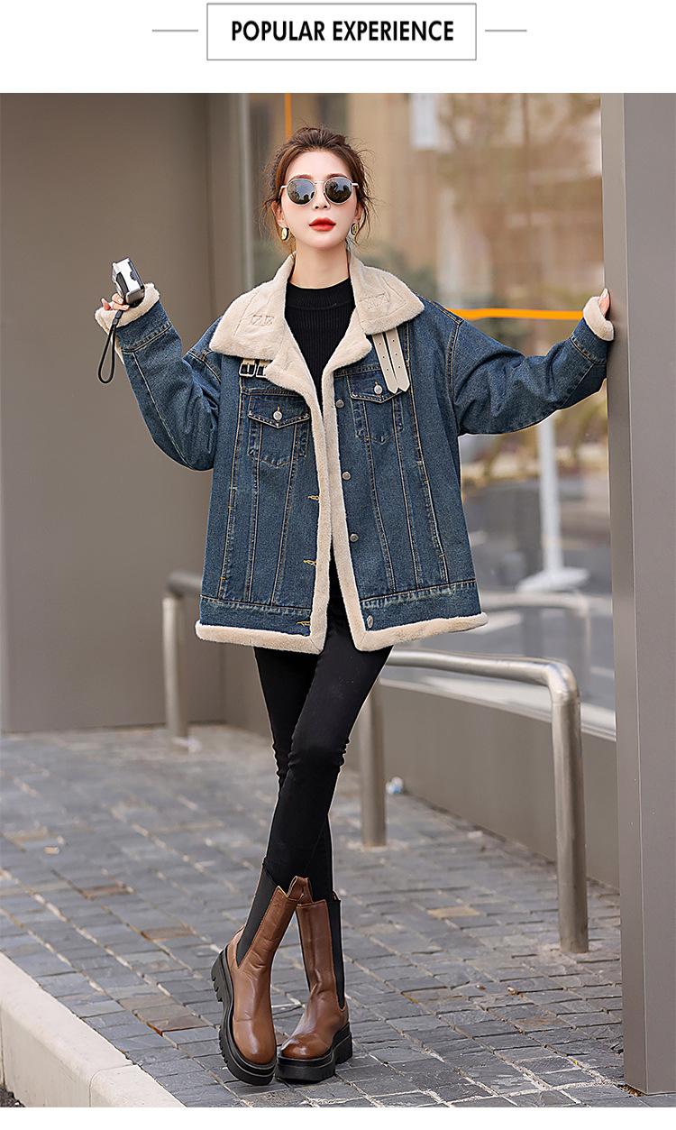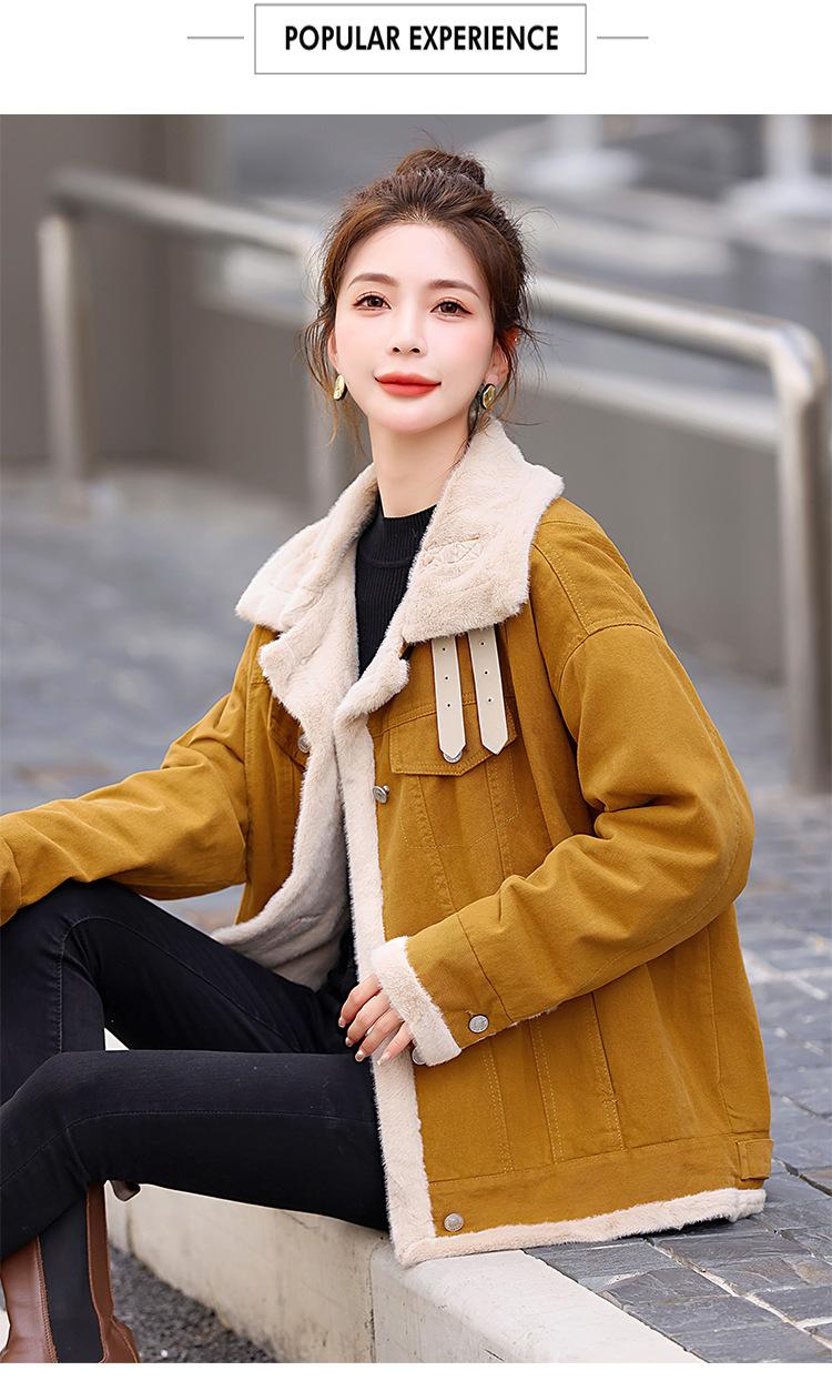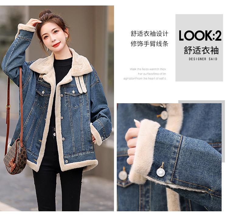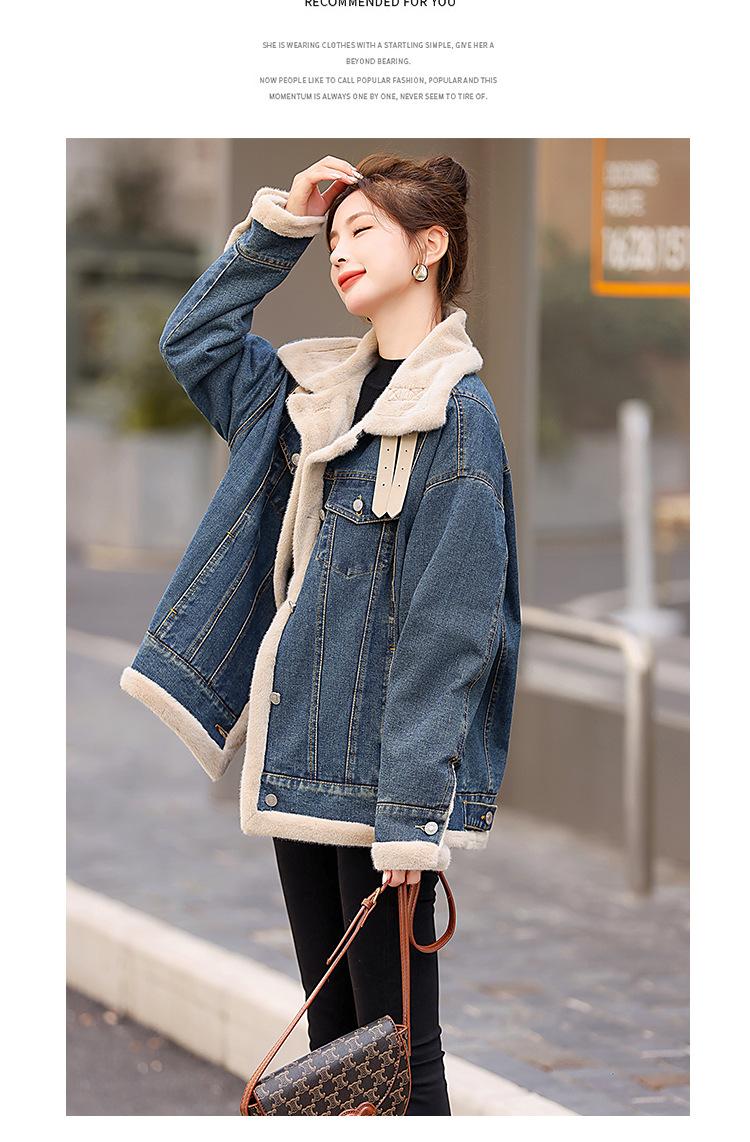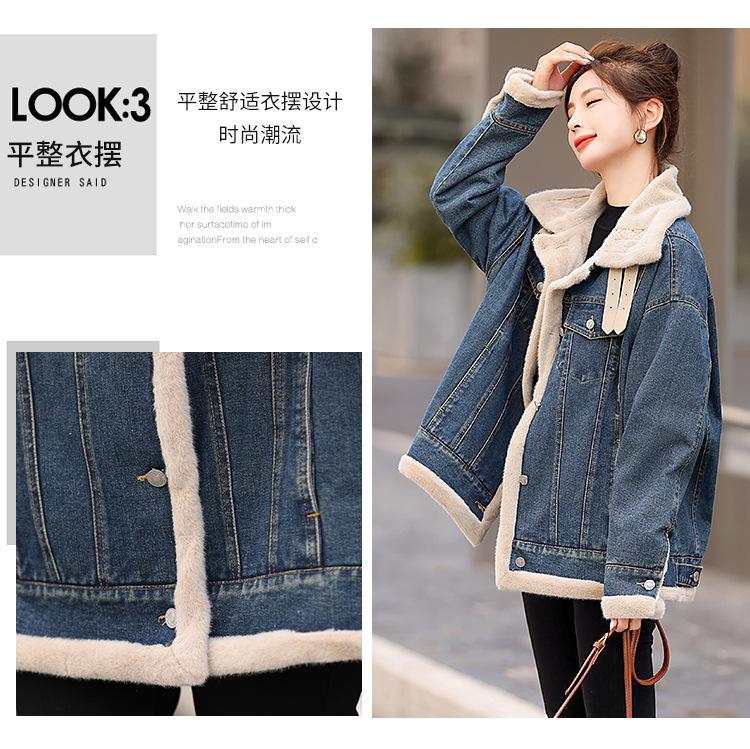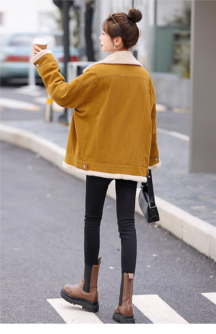 Abrigo acolchado de algodón vaquero grueso con forro polar para mujer, nueva moda de invierno 2023, abrigo parka holgado informal de terciopelo de visón que combina con todo