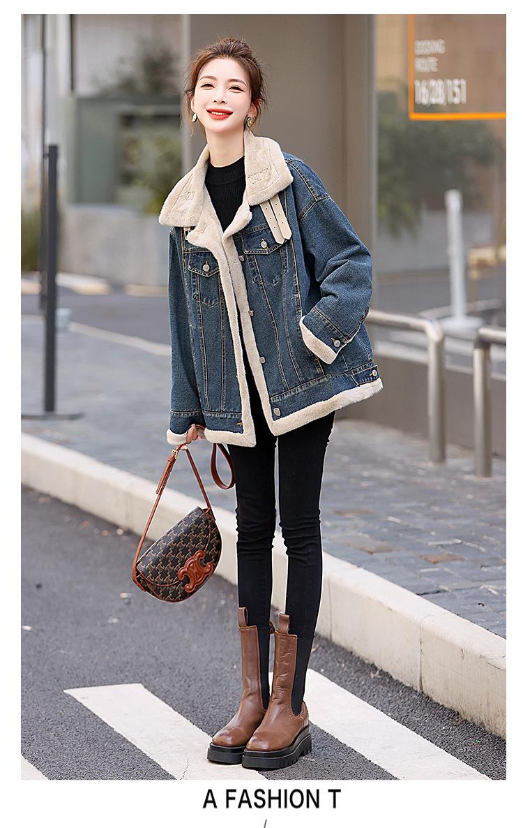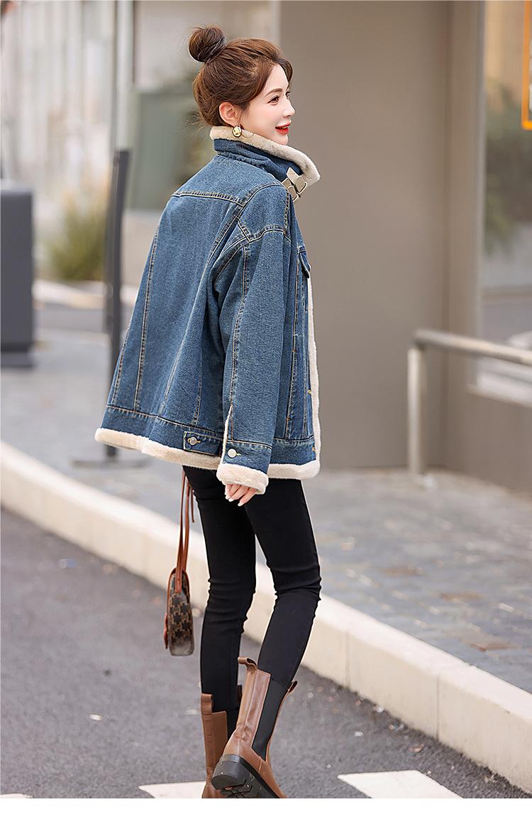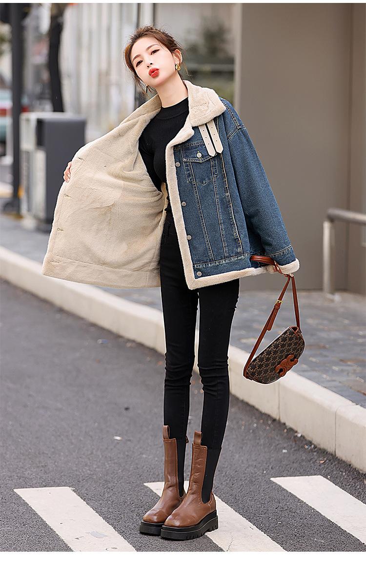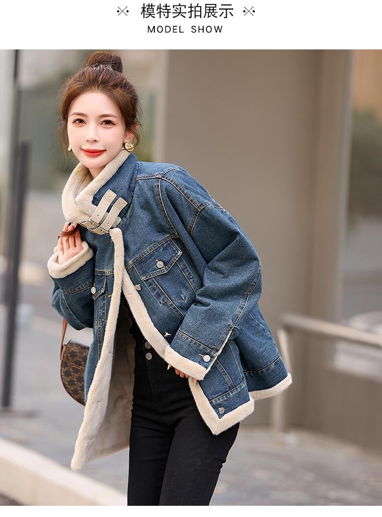 Abrigo acolchado de algodón vaquero grueso con forro polar para mujer, nueva moda de invierno 2023, abrigo parka holgado informal de terciopelo de visón que combina con todo
