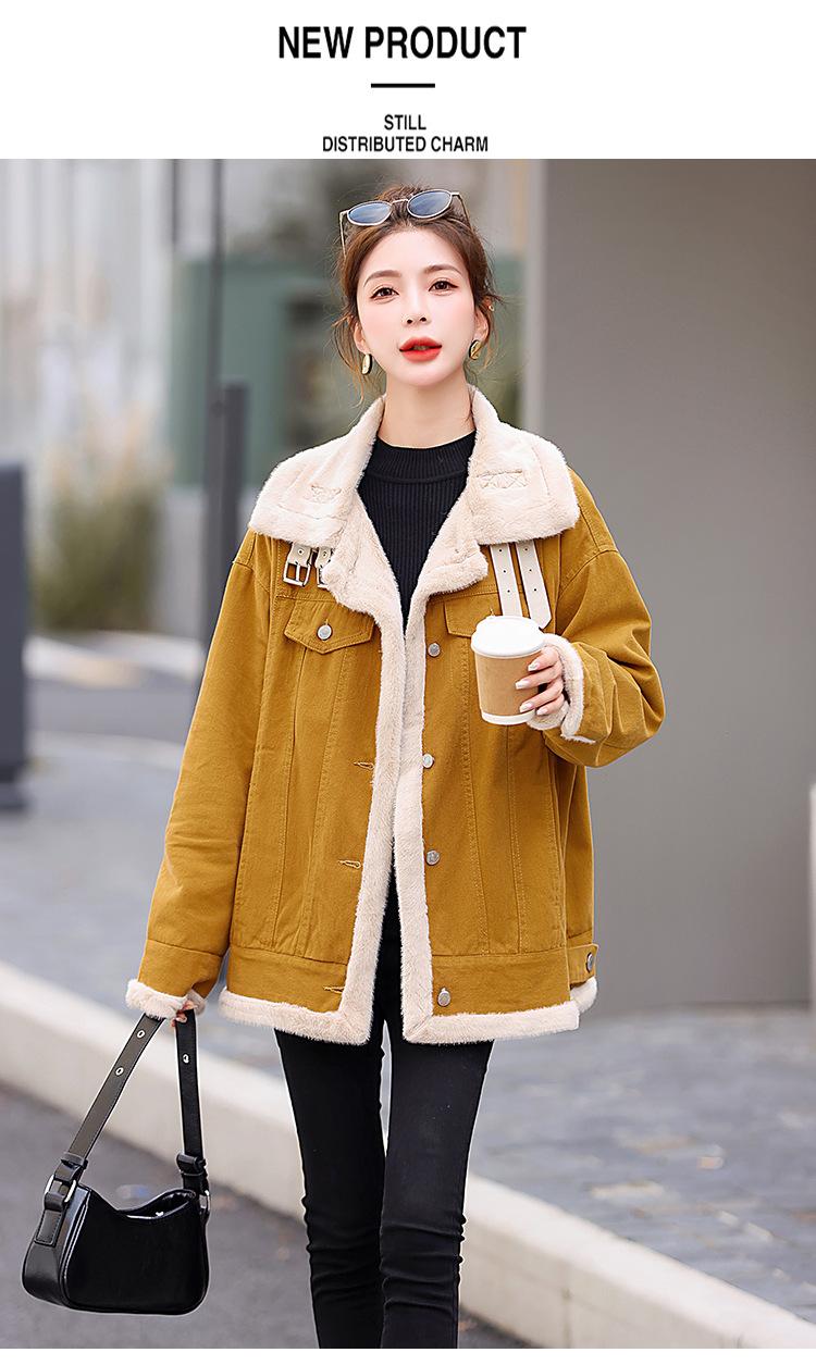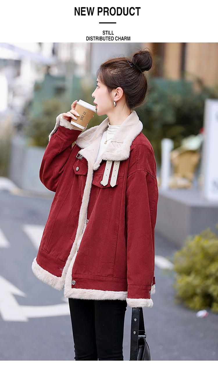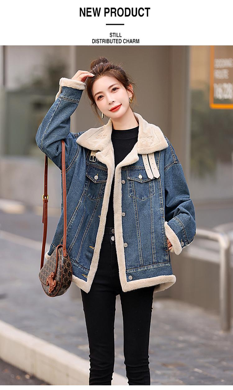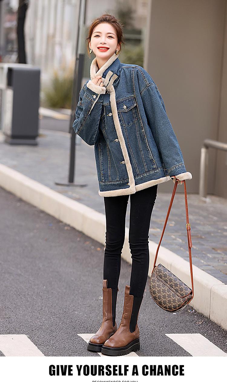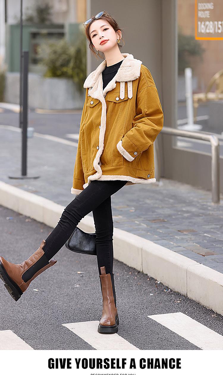 Abrigo acolchado de algodón vaquero grueso con forro polar para mujer, nueva moda de invierno 2023, abrigo parka holgado informal de terciopelo de visón que combina con todo