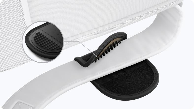 Compatible con correas de mochila de diferentes tamaños y grosores. Además, cuenta con una almohadilla de silicona con tratamiento antideslizante para un ajuste seguro y cómodo.
