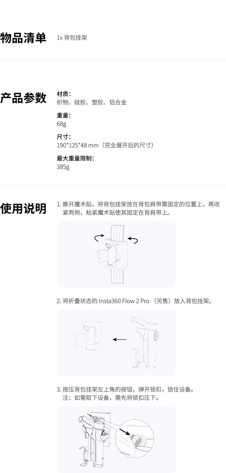 Percha para mochila Shadow Stone Insta360 Flow 2 Pro, portátil, de liberación rápida, empaque rápido, estable, antideslizante, nuevo producto