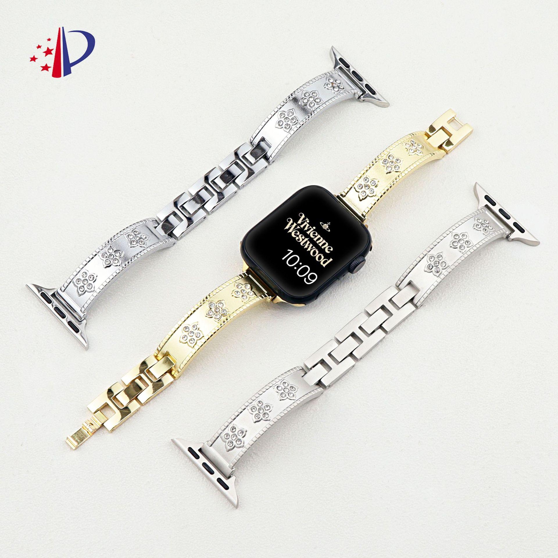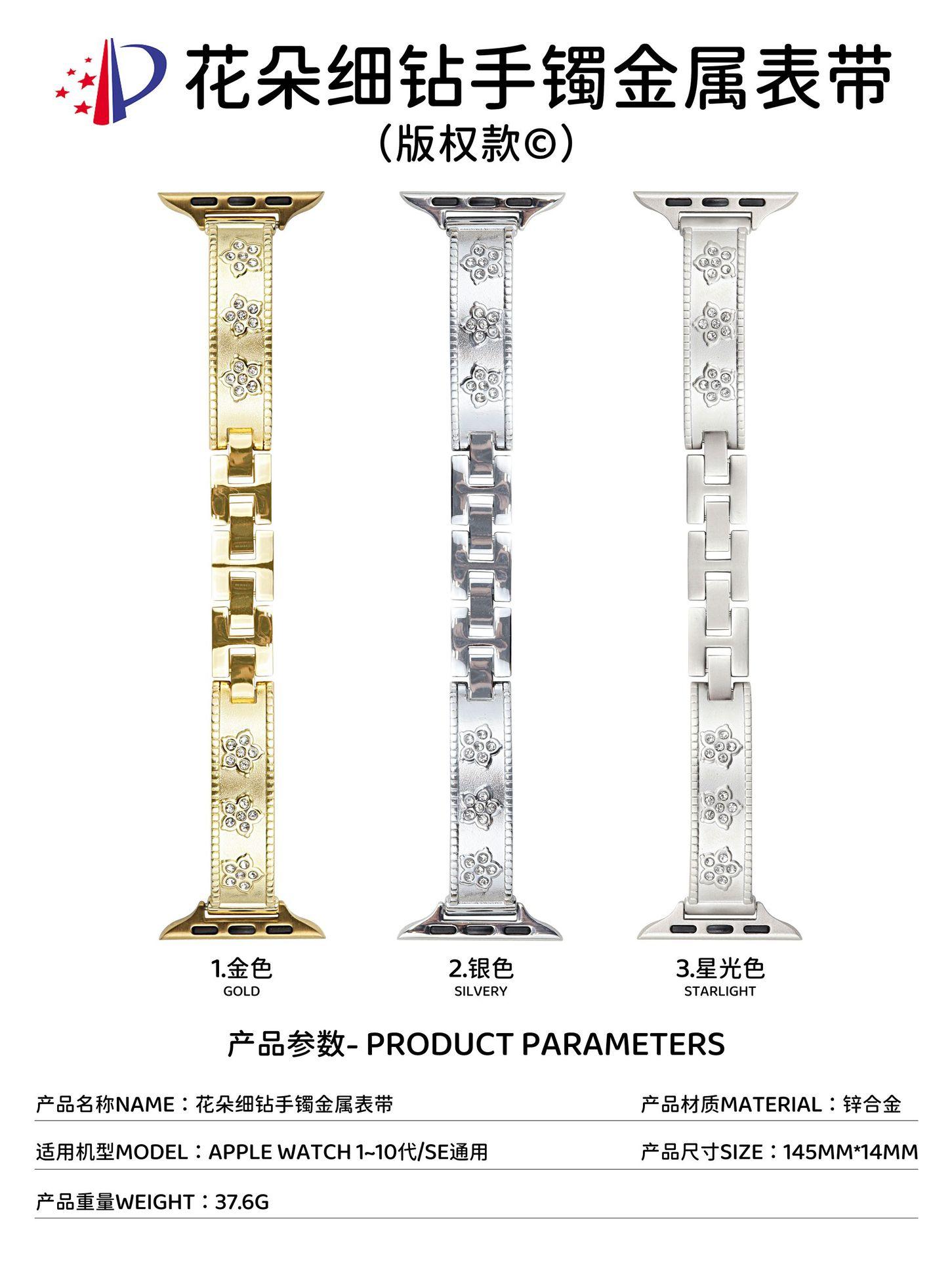 Correa de Metal con Diamantes Finos en Forma de Flor Adecuada para Apple iWatch 11 Generación 10/987Ultr