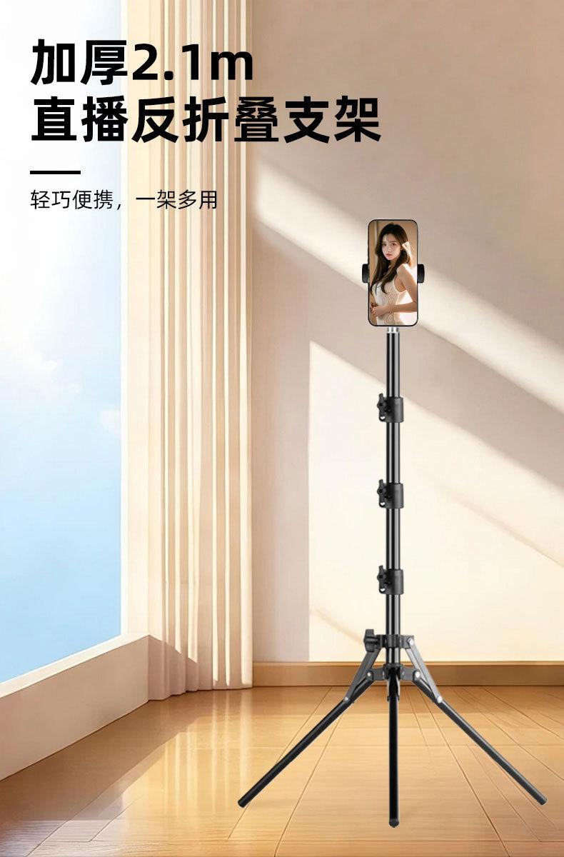 Soporte de Luz de Relleno para Transmisión en Vivo para Teléfono Móvil Fotografía Trípode de Piso Telescópico Libre de 2.1m Engrosado Plegable Inverso