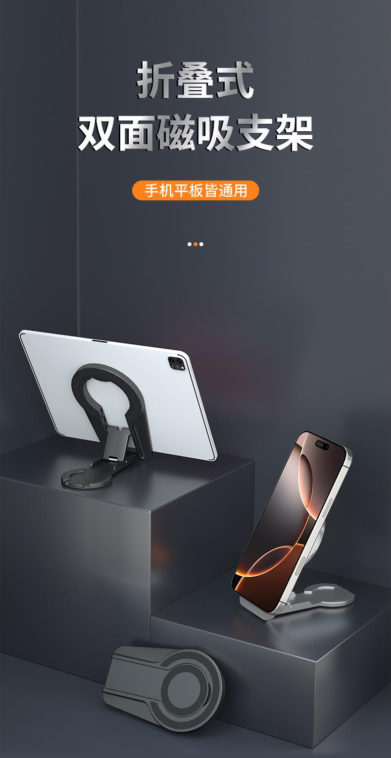 Soporte Magnético de Doble Cara para Teléfono Móvil Transfronterizo, Soporte de Escritorio Giratorio Plegable para Tablet, Ajuste de Tres Velocidades, Soporte de Adsorción para Teléfono Móvil