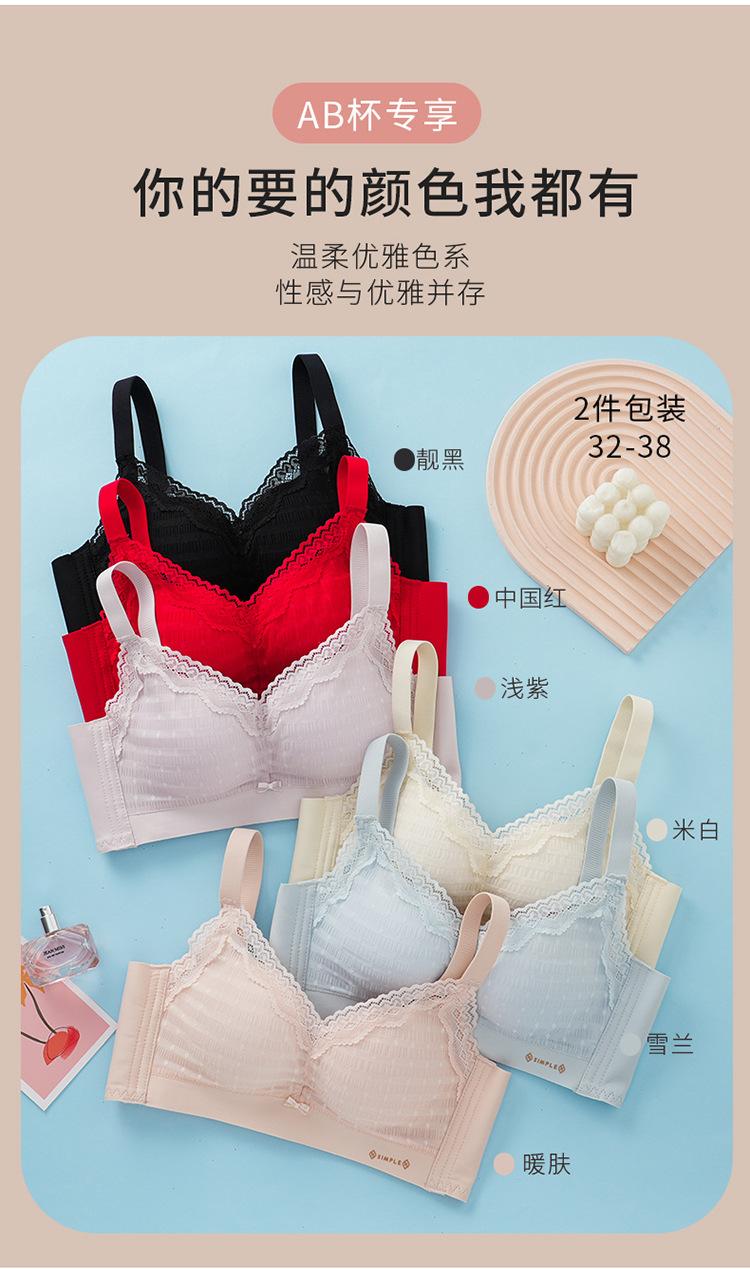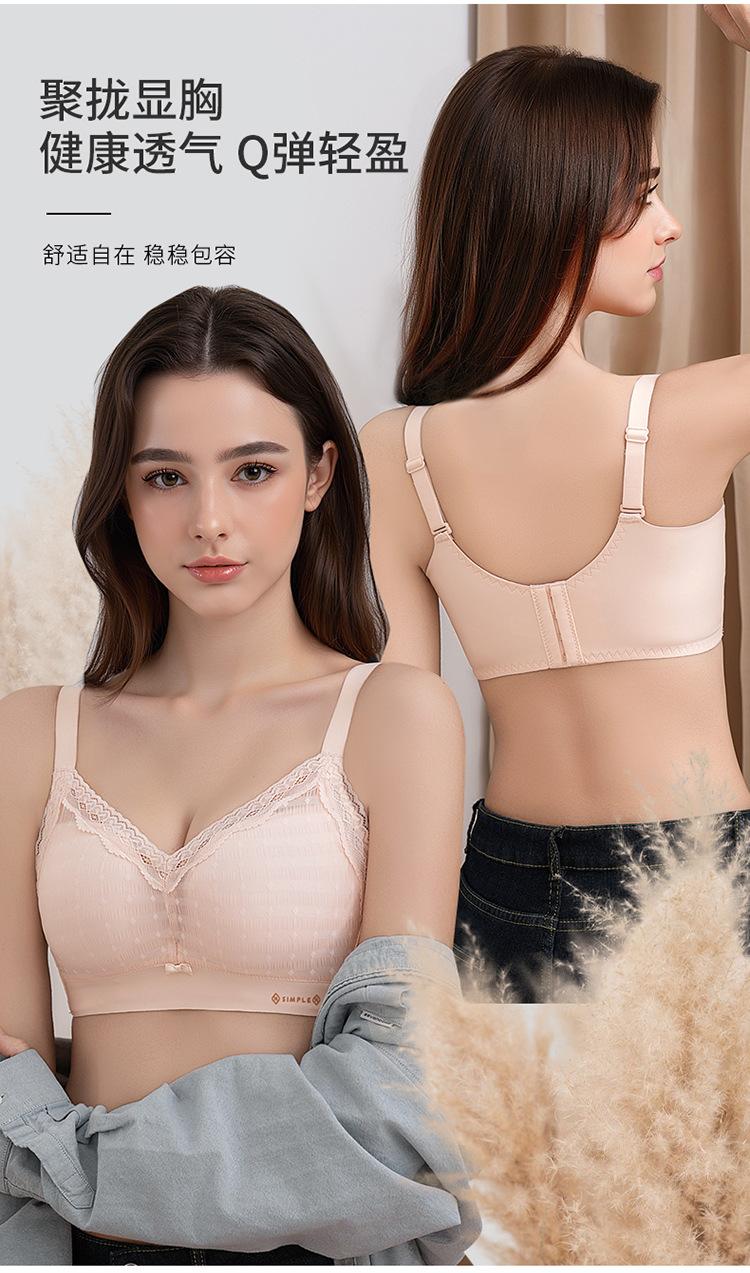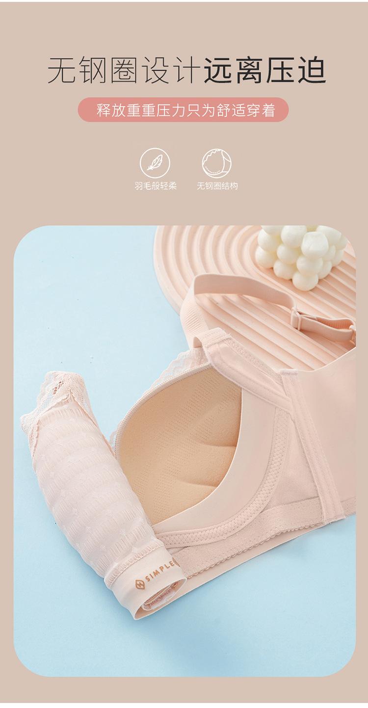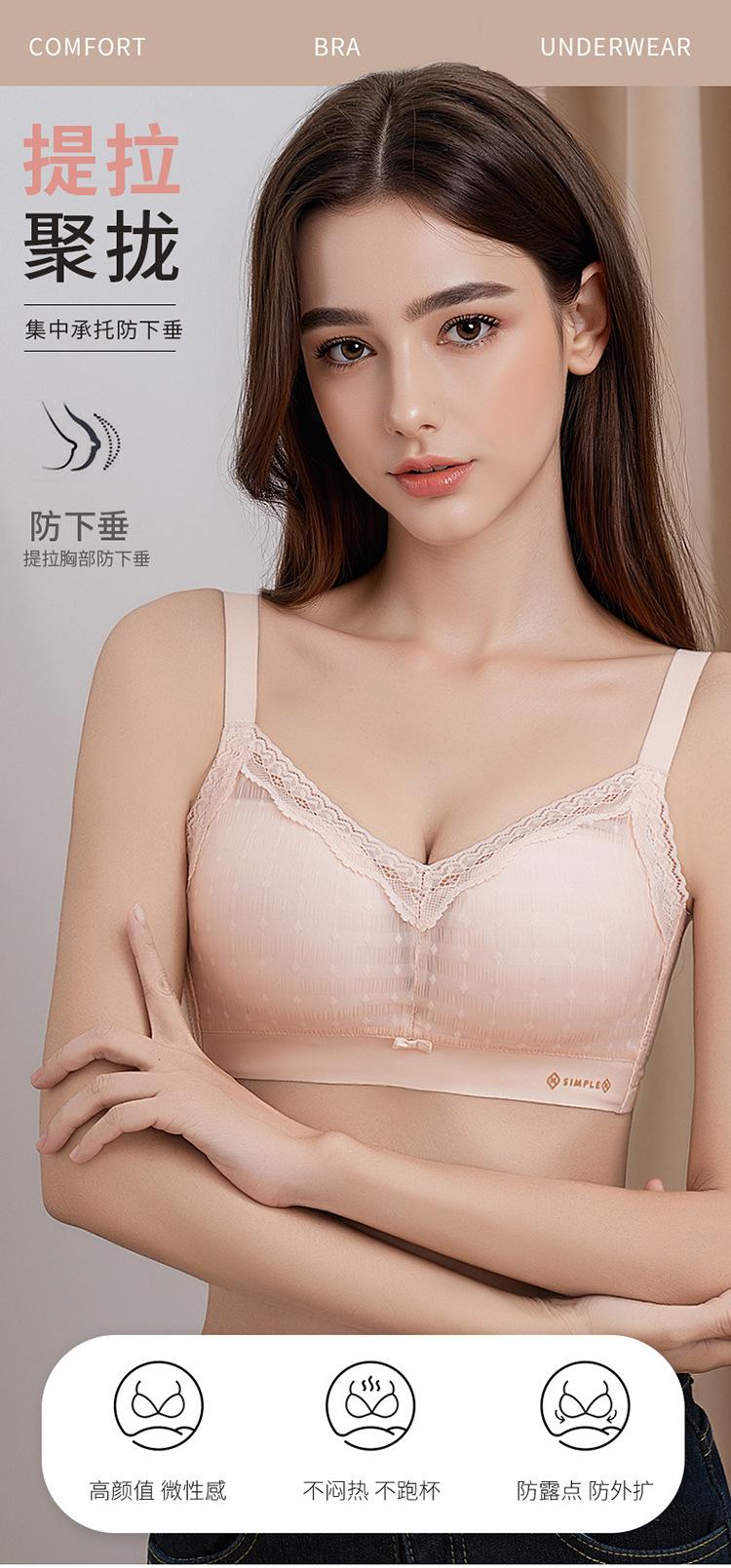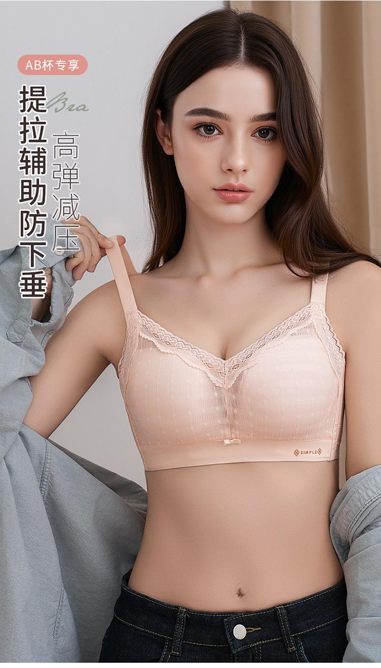 Ropa interior de algodón de leche para mujer, pecho pequeño, push-up, ajustable, recogido, anti-flacidez, sujetador de encaje para mujer