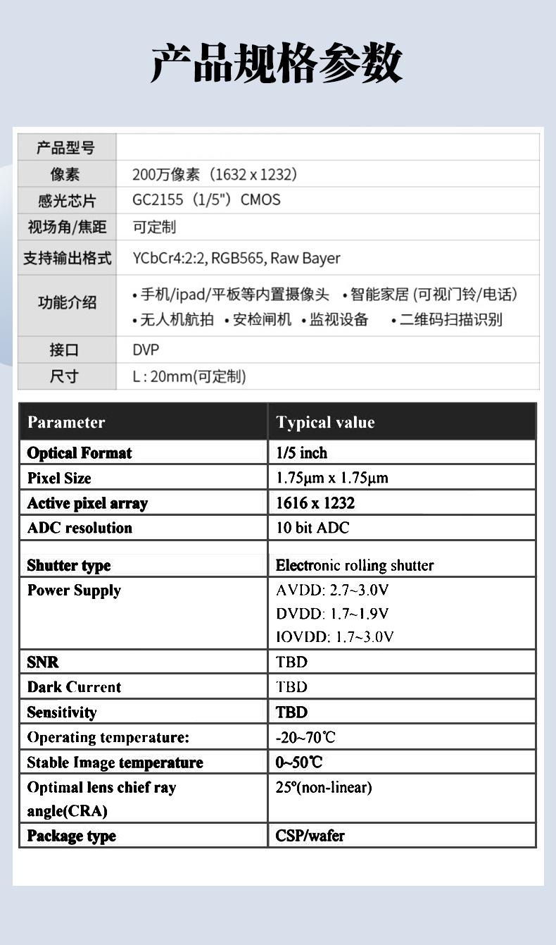 Módulo de cámara plana DVP con reconocimiento facial gran angular YUV de 2 millones de píxeles y compatibilidad con ISP GC2155