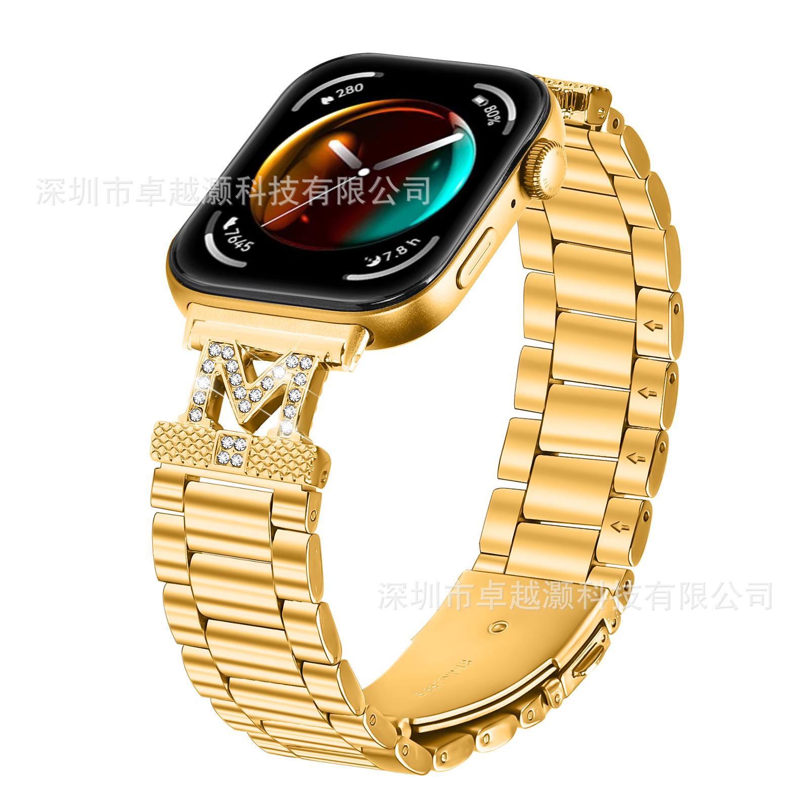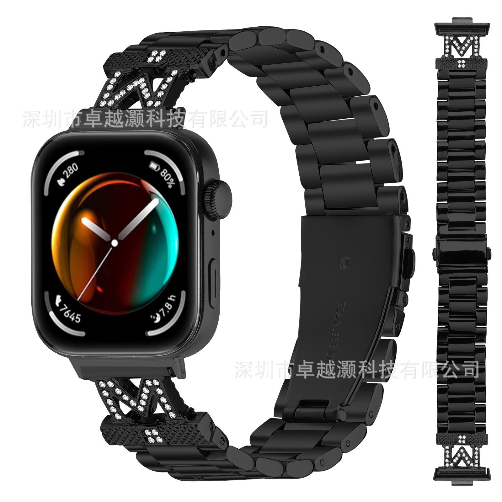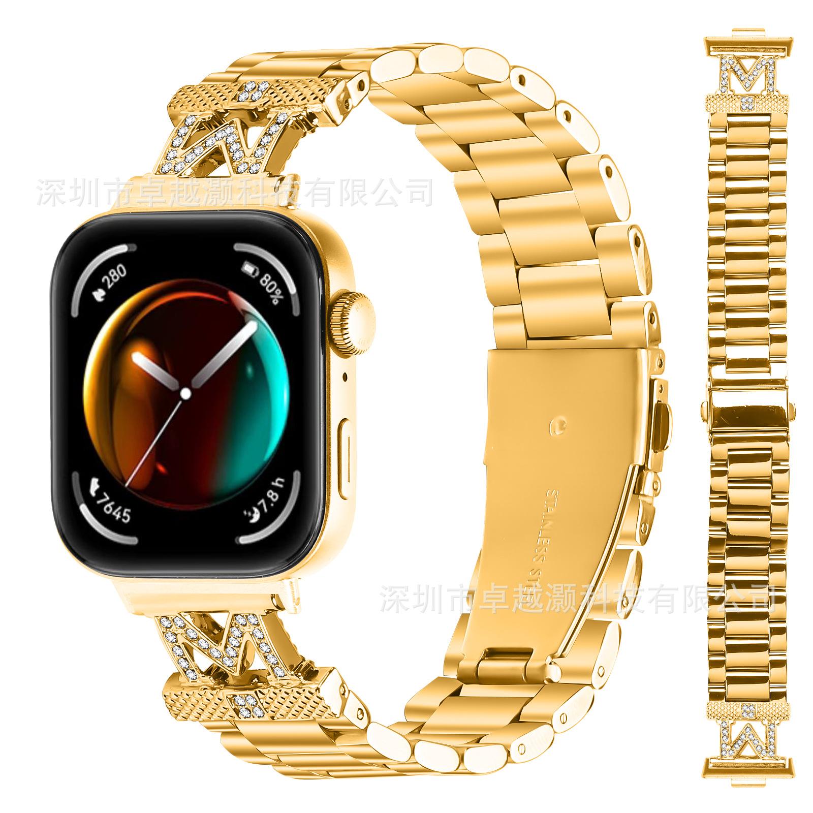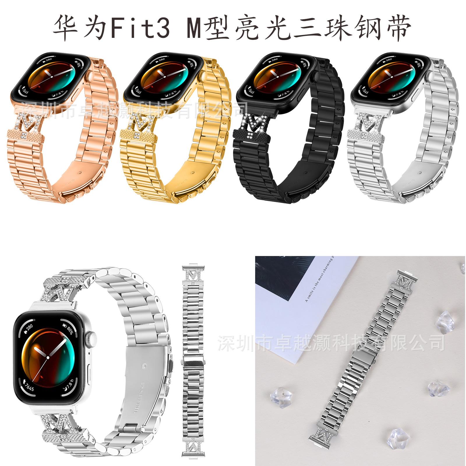 Adecuado para Huawei Fit3/4Pro Correa de Reloj de Acero Inoxidable Tipo M Brillante de Tres Cuentas Correa para Reloj Inteligente Huawei