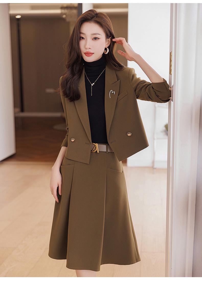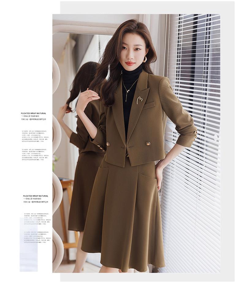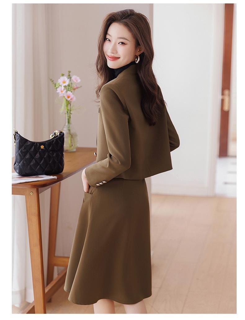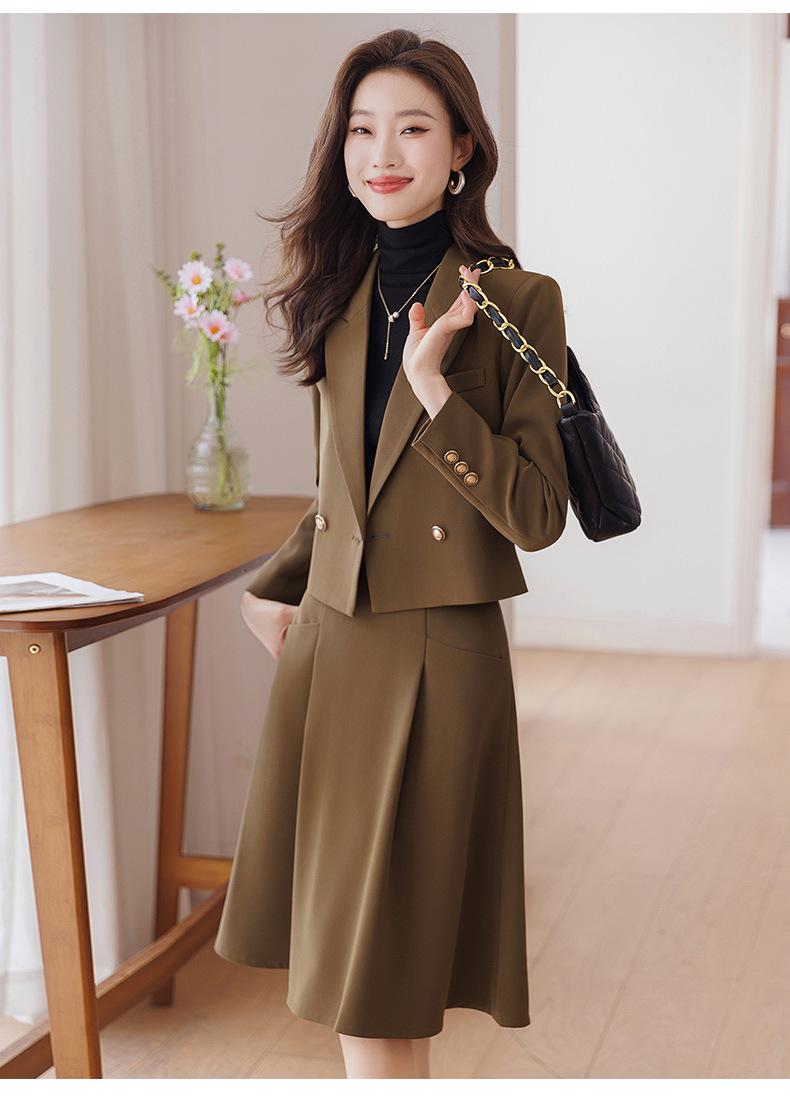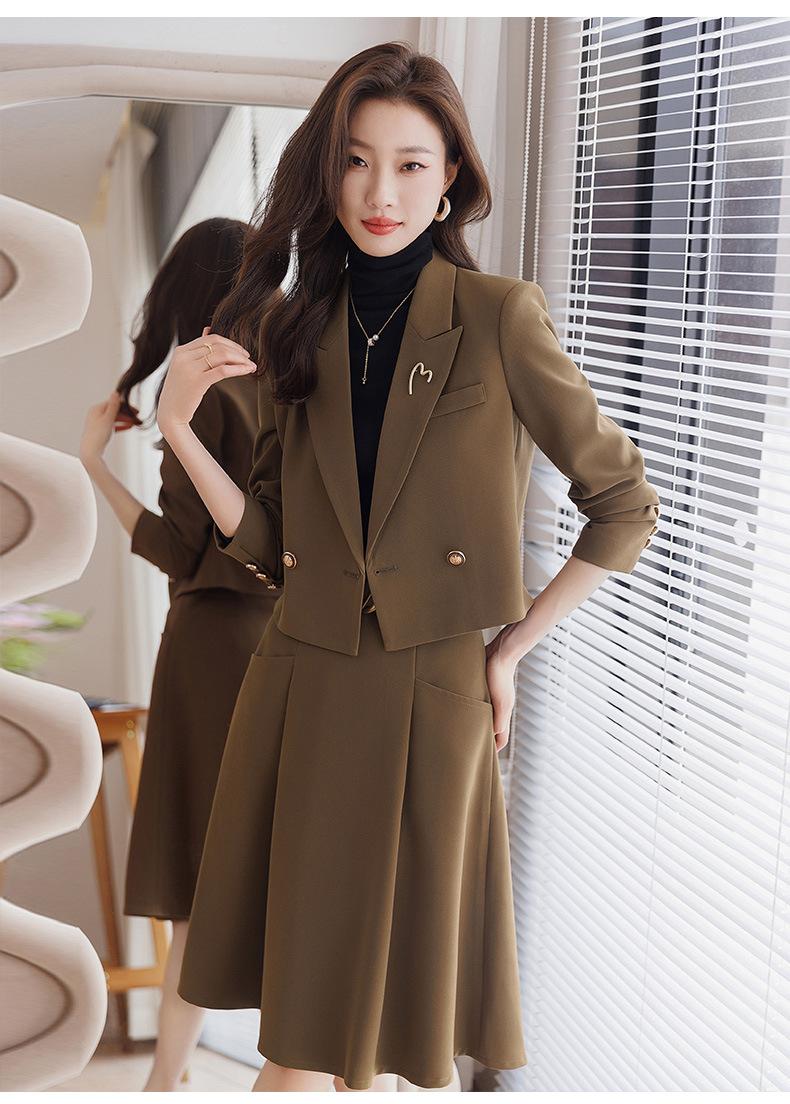 Chaqueta de traje corta marrón para mujer Otoño Nuevo Estilo Pequeño temperamento de moda estilo diosa falda de traje de alta calidad