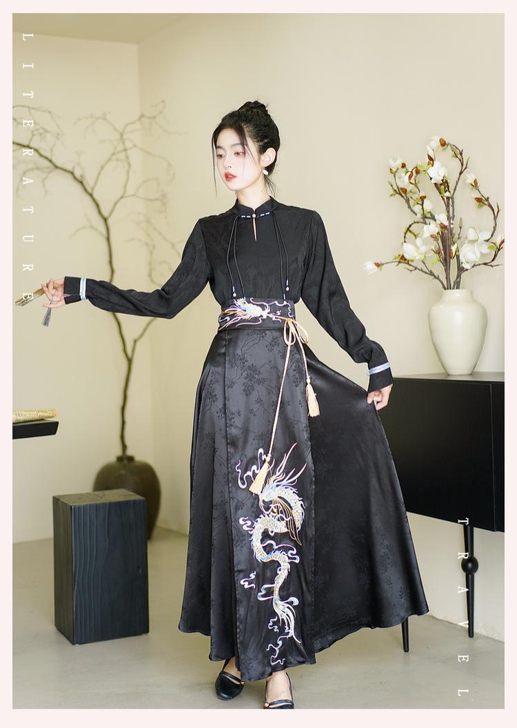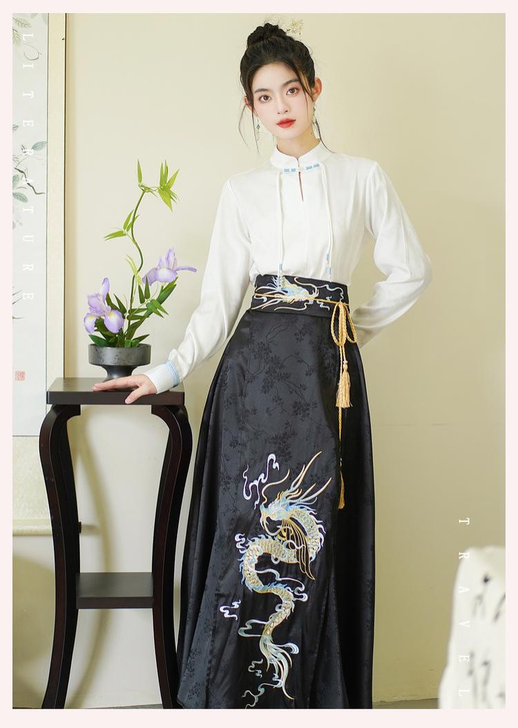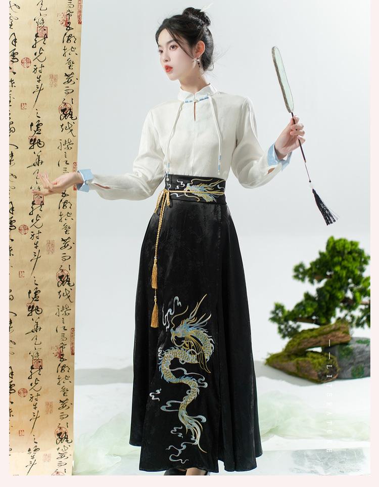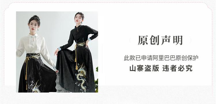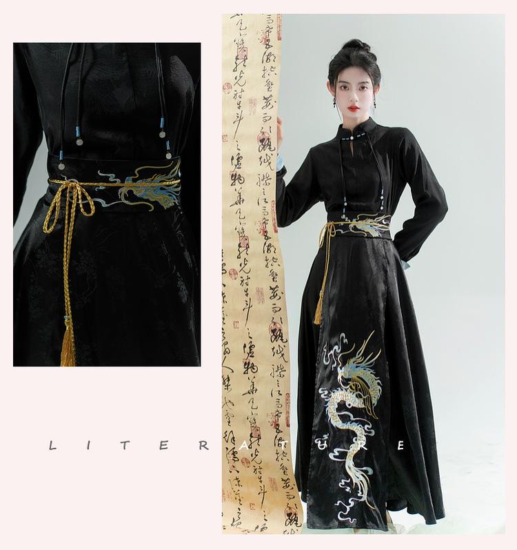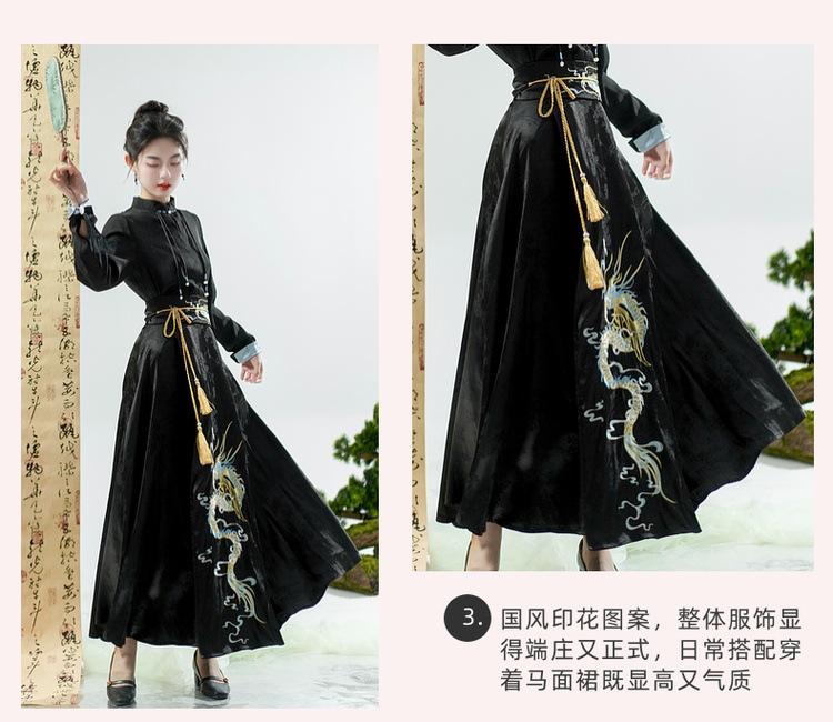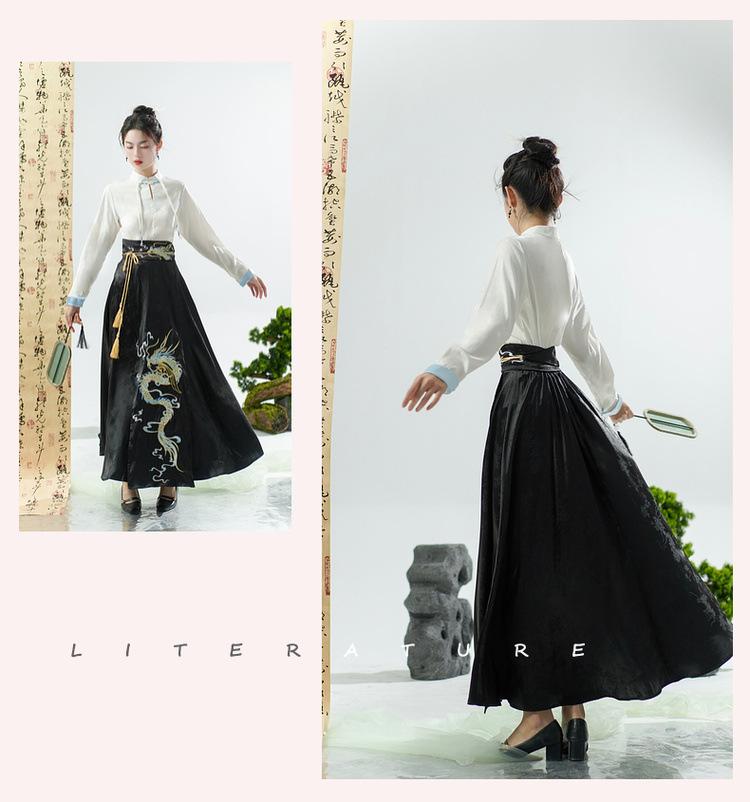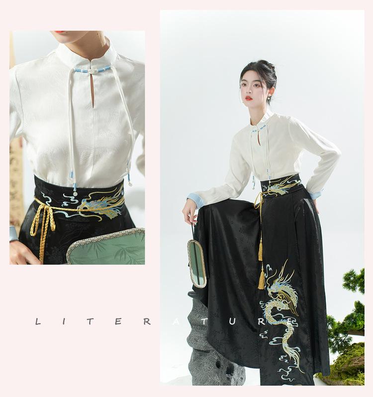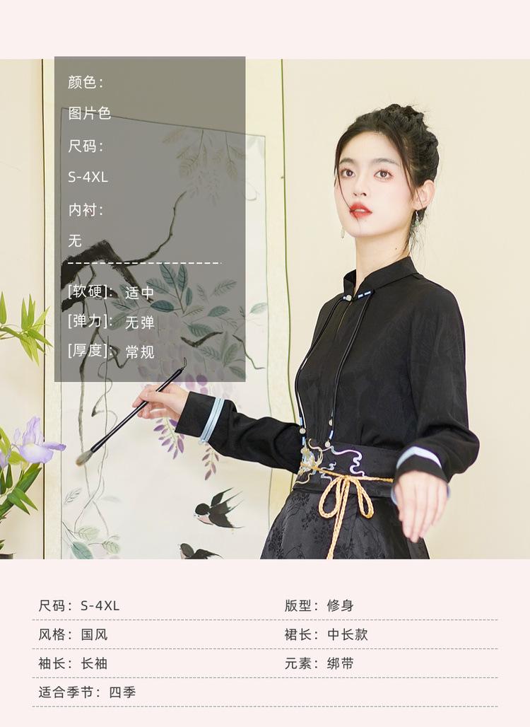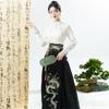 Nuevo Traje de Estilo Nacional Ming para Mujer 2025 Otoño Nuevo Top Bordado con Cintura Elástica Falda Cara de Caballo y Cinturón
