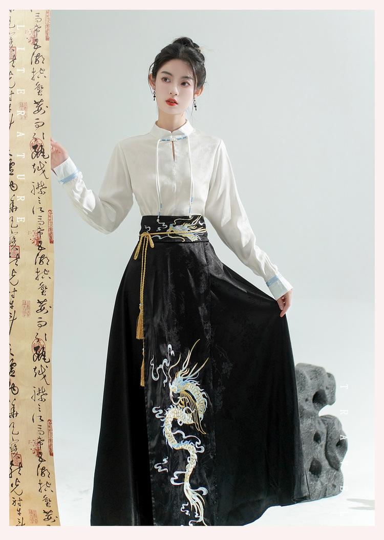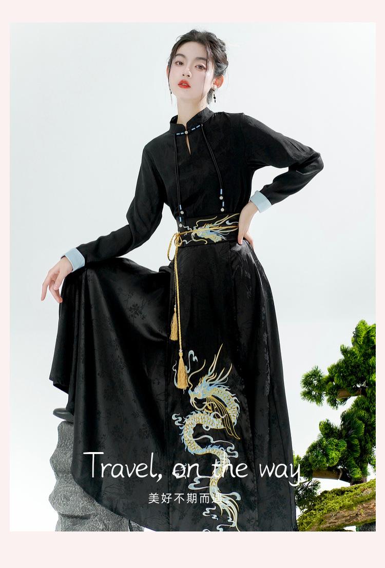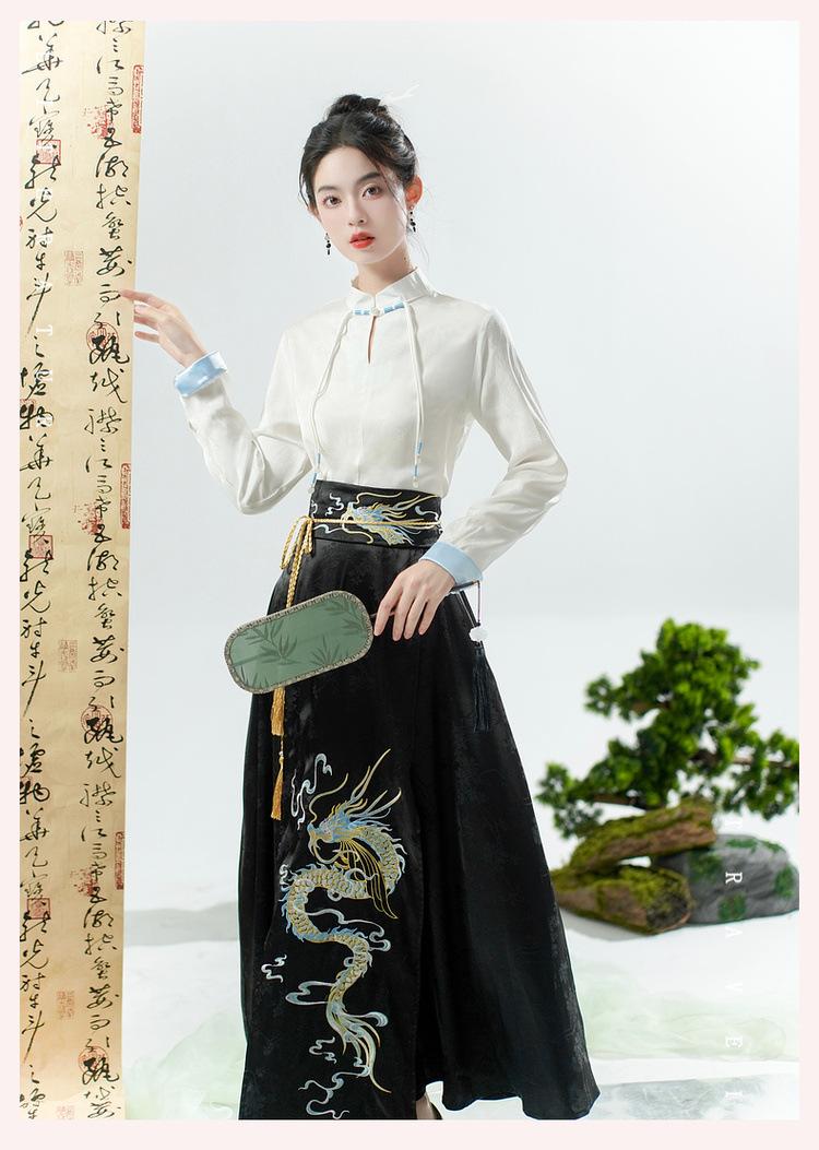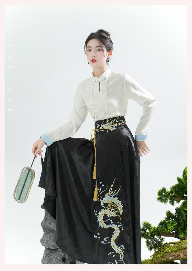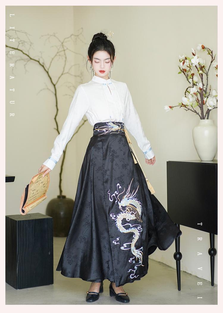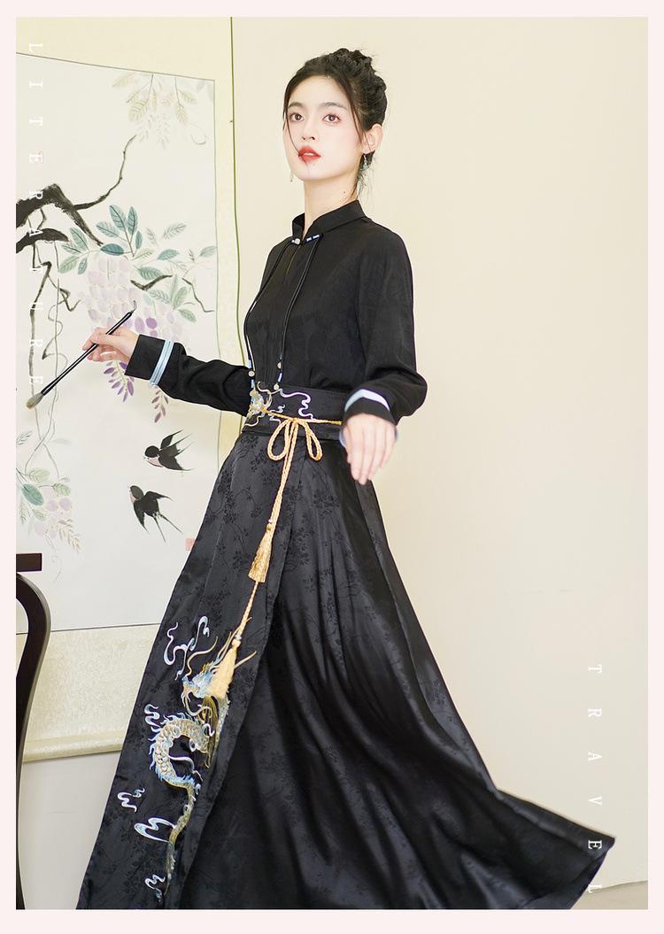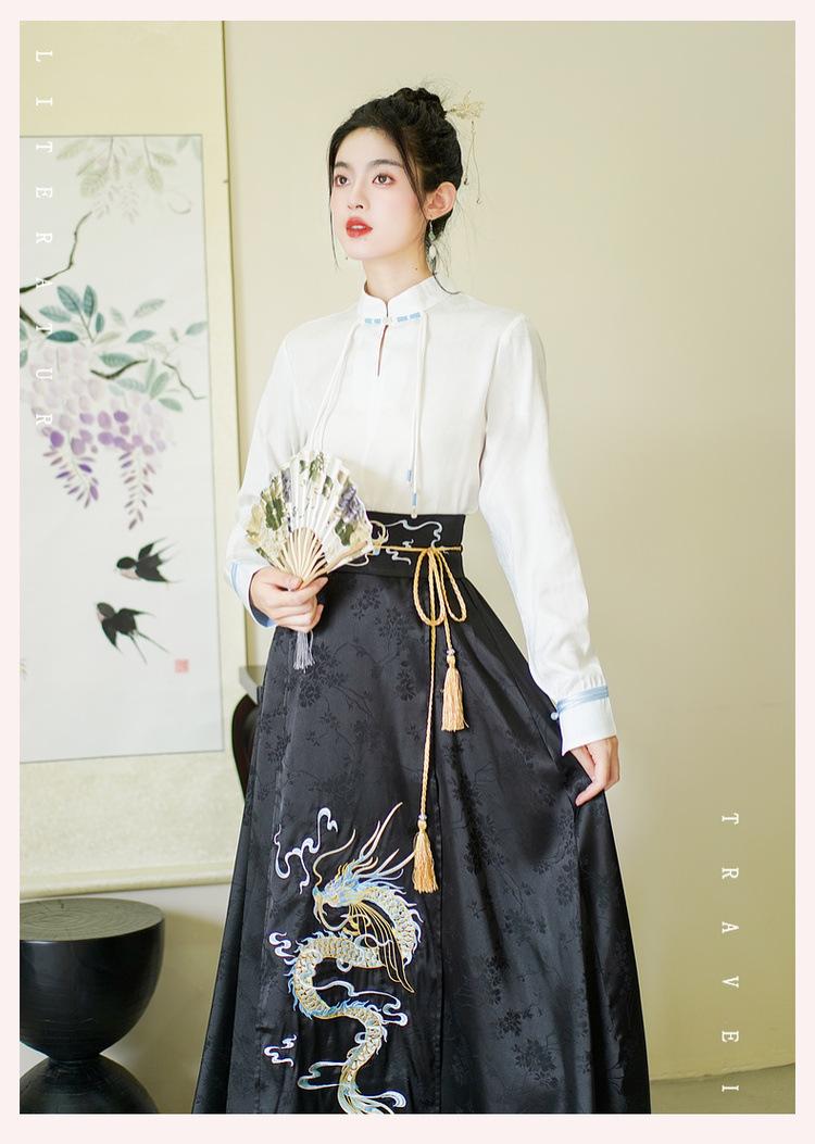 Nuevo Traje de Estilo Nacional Ming para Mujer 2025 Otoño Nuevo Top Bordado con Cintura Elástica Falda Cara de Caballo y Cinturón