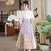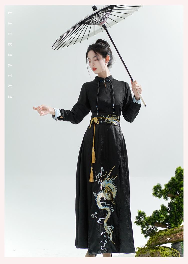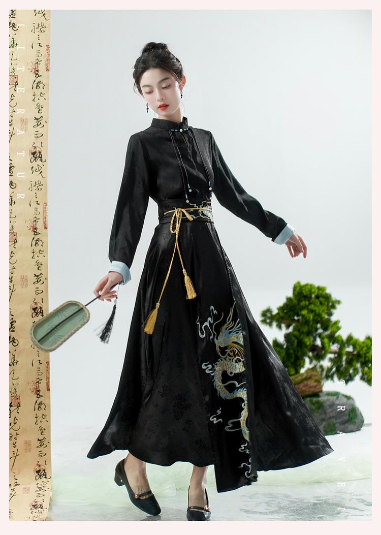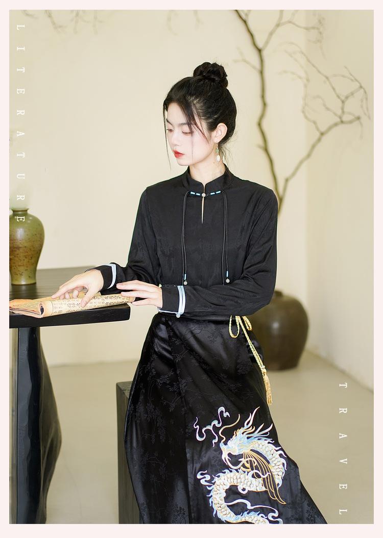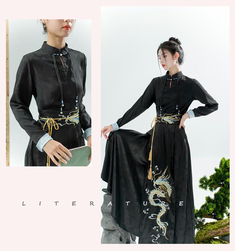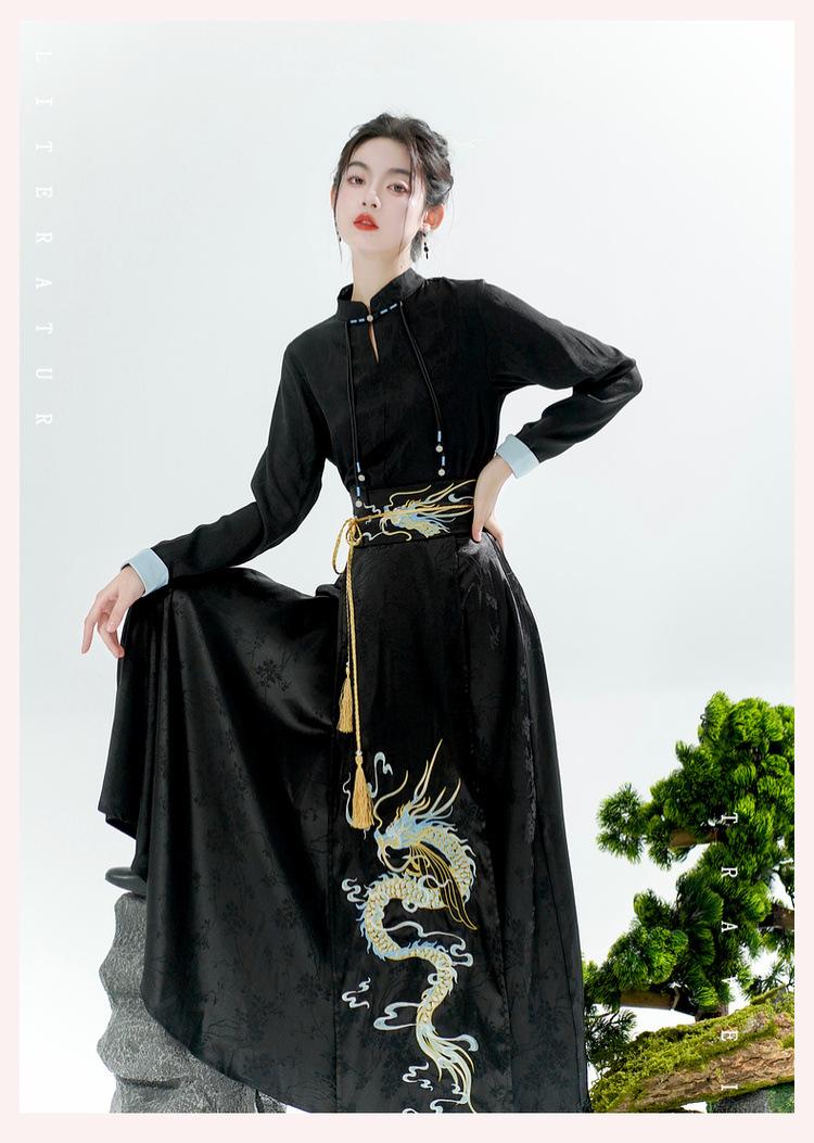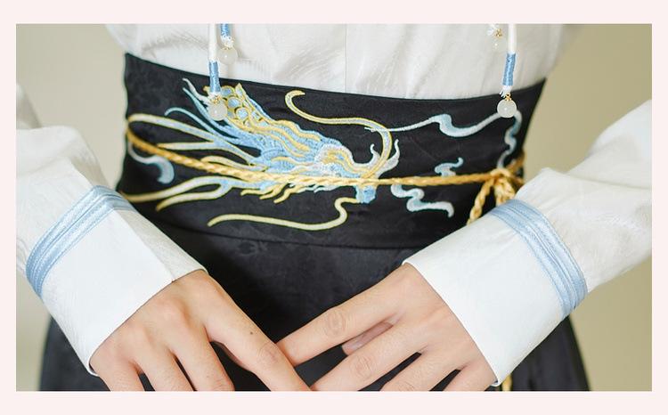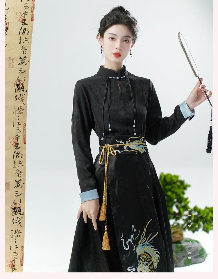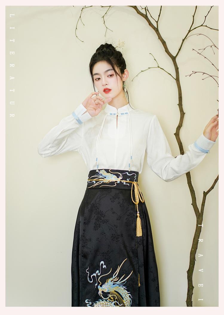 Nuevo Traje de Estilo Nacional Ming para Mujer 2025 Otoño Nuevo Top Bordado con Cintura Elástica Falda Cara de Caballo y Cinturón