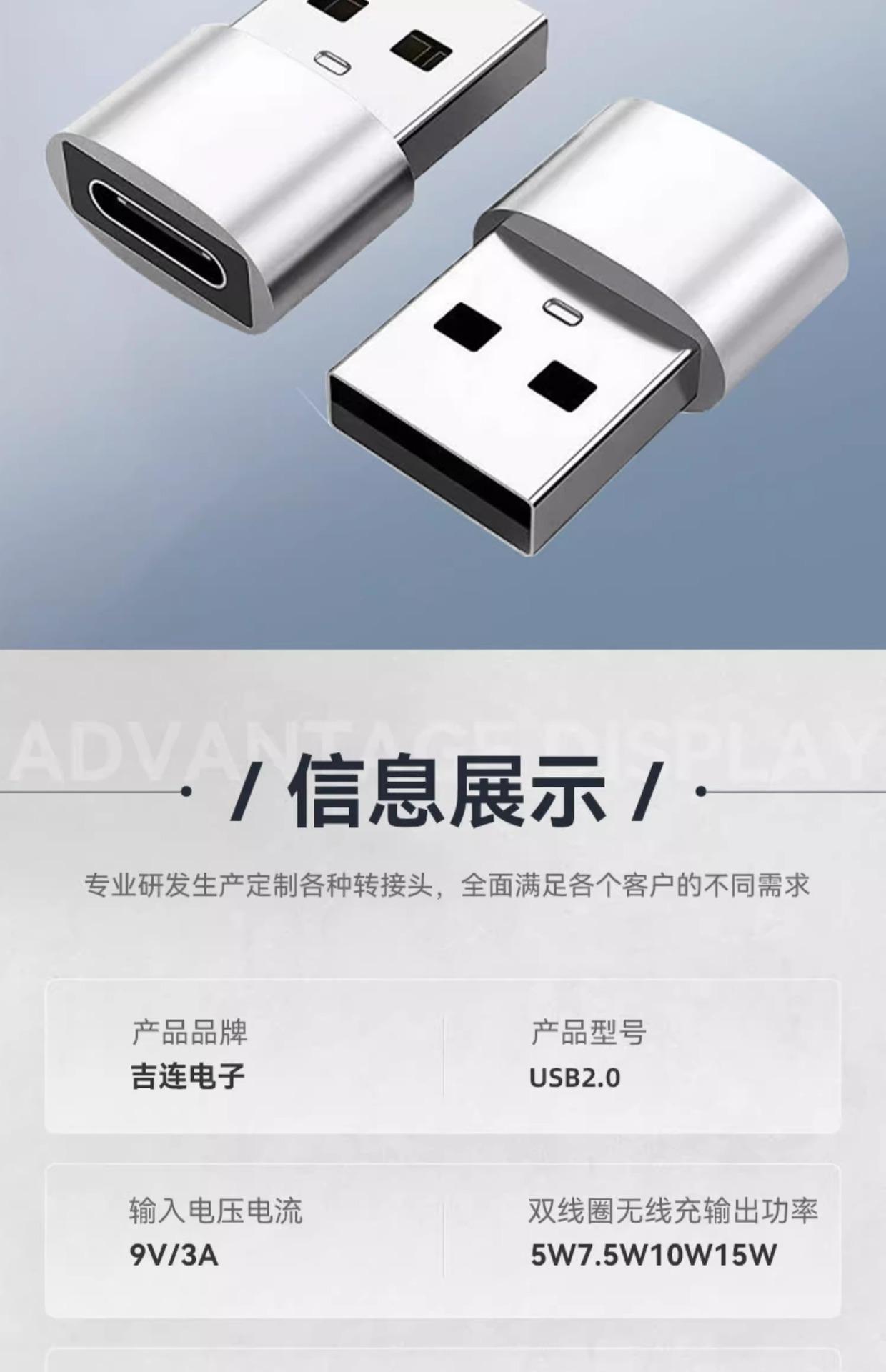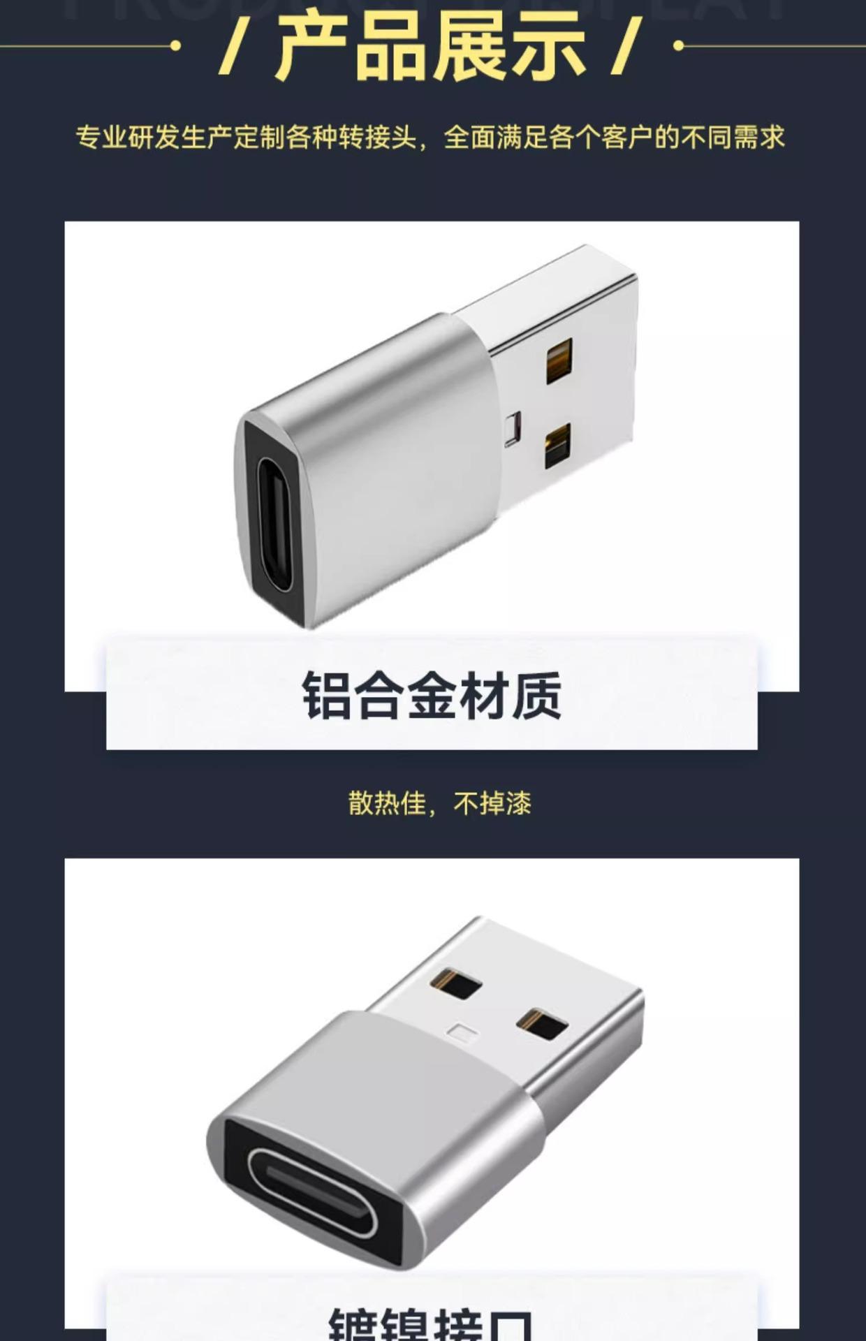 El adaptador USB a tipo C es adecuado para el convertidor de carga para teléfono móvil Apple 13, cable de datos para power bank 12 adaptador