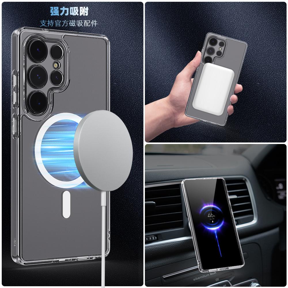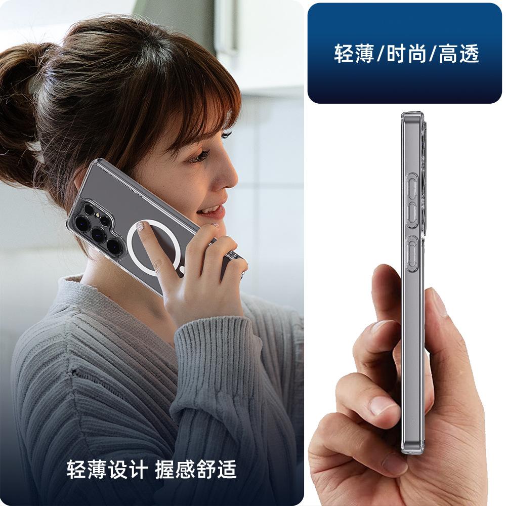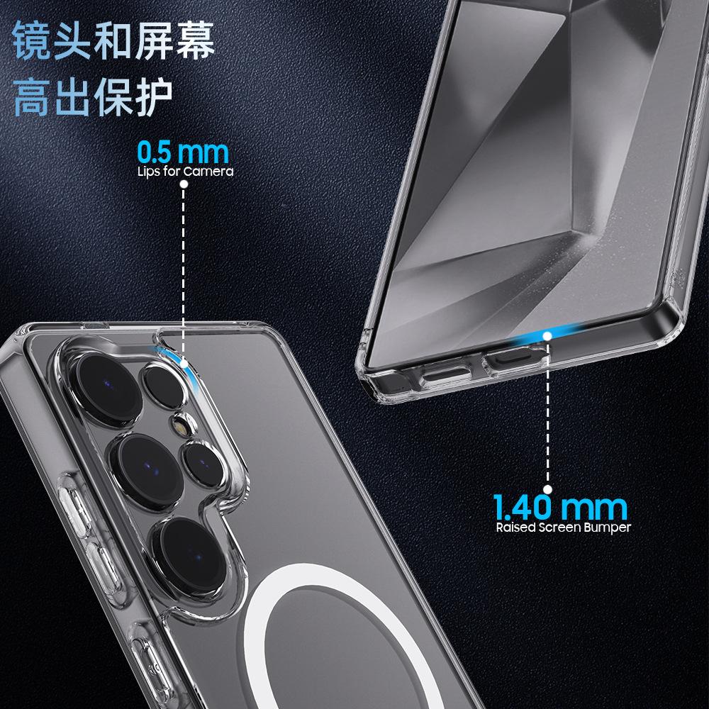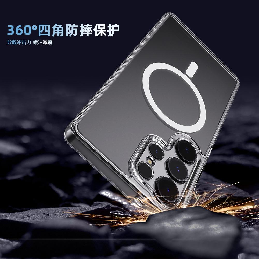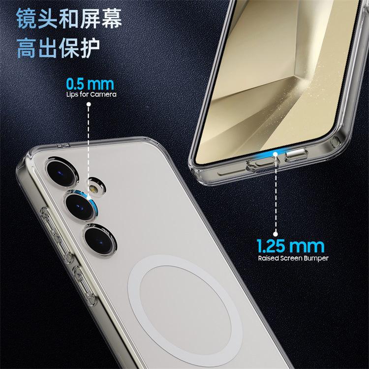 Adecuado para Samsung S25 Carcasa Magnética para Teléfono Móvil Transparente 2.0 Agujero Fino S24Ultra Cubierta Protectora Anti-Caídas Dos-En-Uno