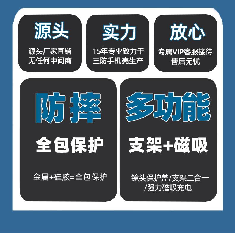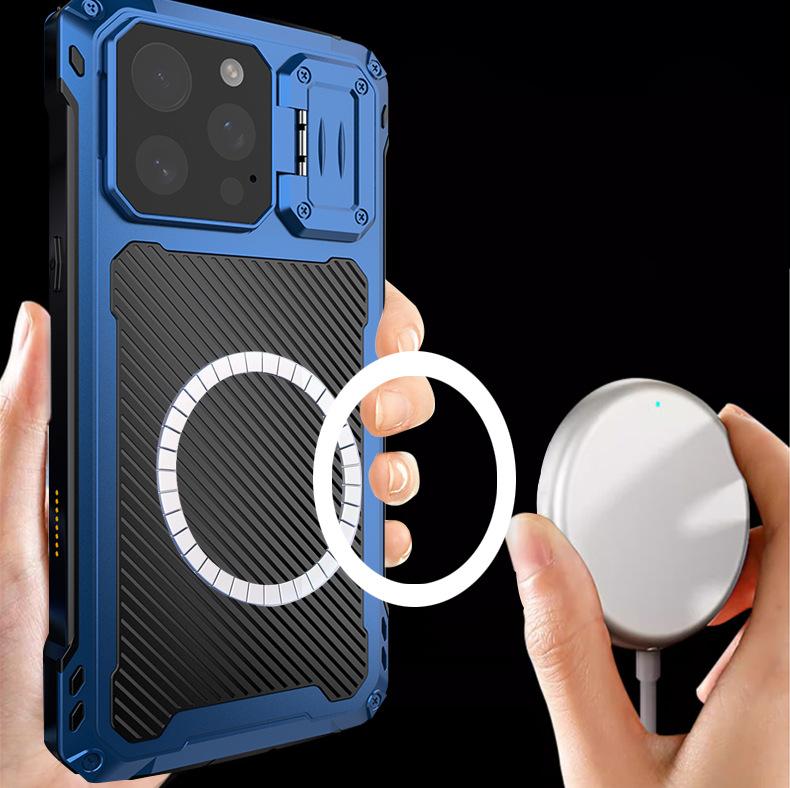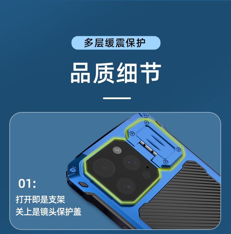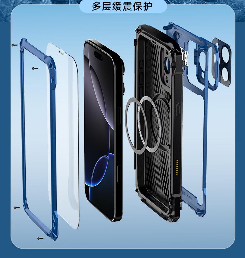 Una funda protectora de aleación para Apple.Viene con soporte, carga magnética, protección de lente, y también introdujo productos protectores de pantalla de vidrio templado. Este producto es impermeable, a prueba de caídas y a prueba de polvo, protegiendo siempre su amado teléfono