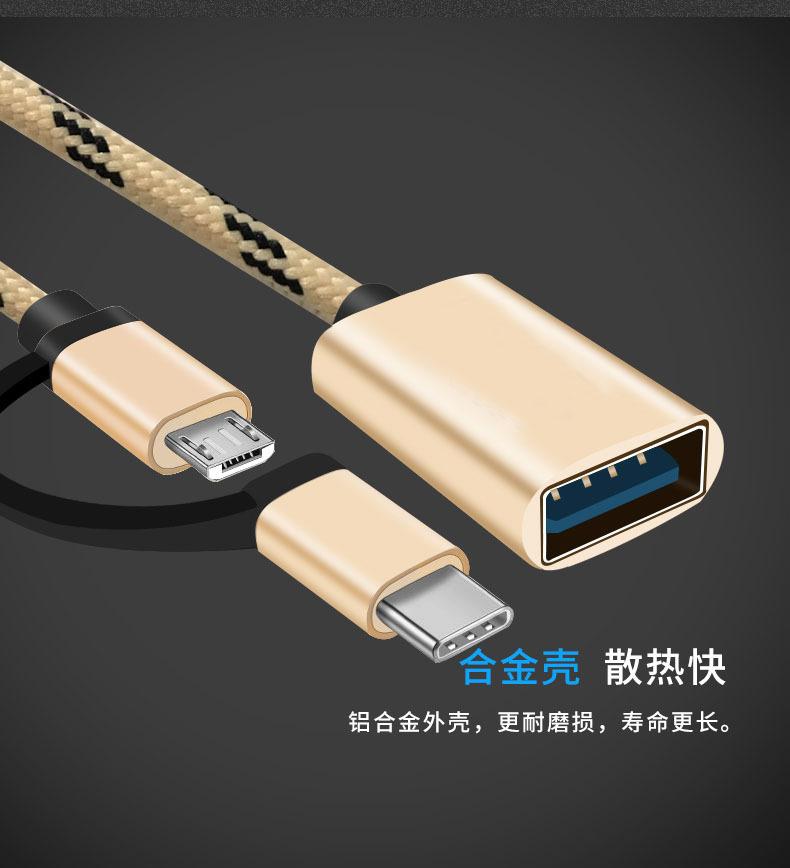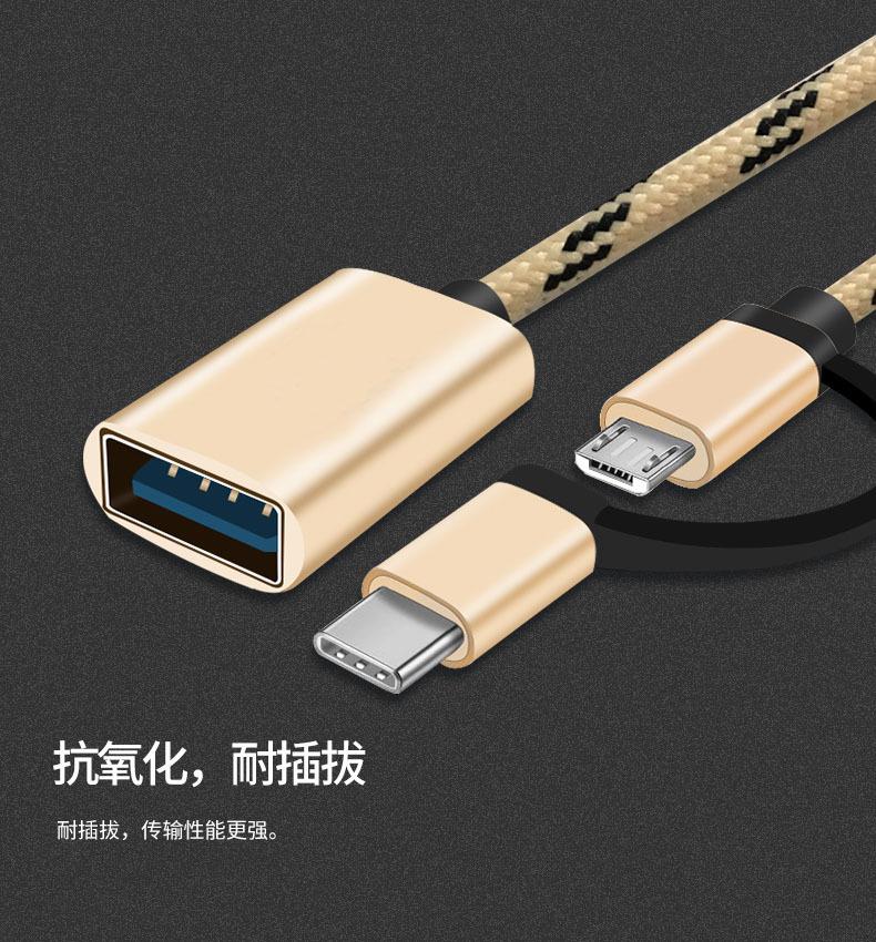Cable Adaptador Otg Dos-En-Uno Tipo C Adaptador USB Adaptador para Computadora Cable de Red de Tela Trenzada Convertidor para Teléfono Móvil