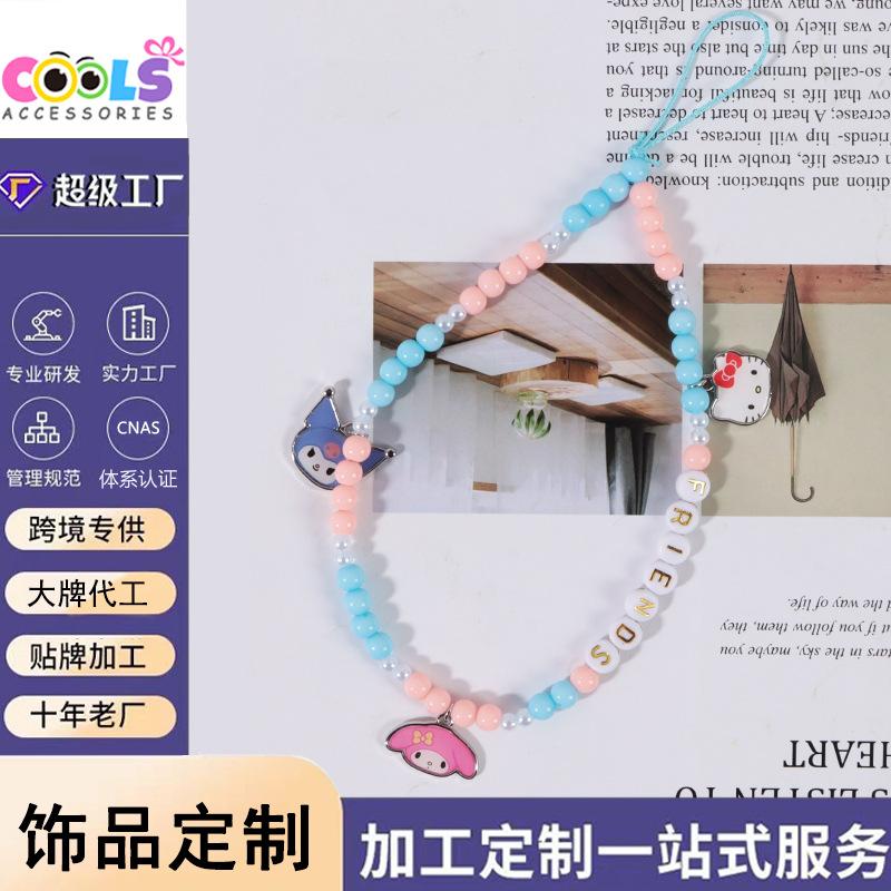 Cordón para teléfono móvil con diseño de oso de dibujos animados, cadena corta de cuentas de colores frescos para mujer, accesorios para funda de teléfono móvil, decoración de bolsos