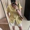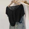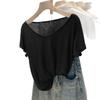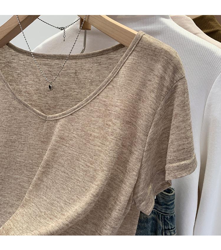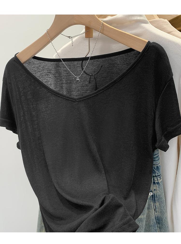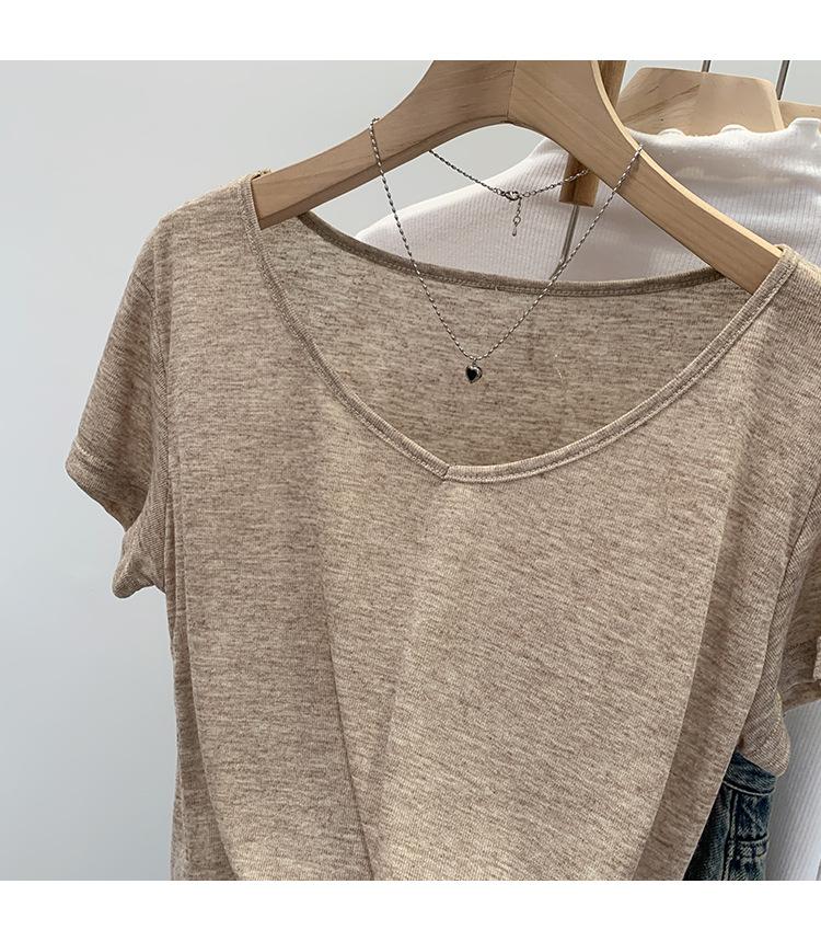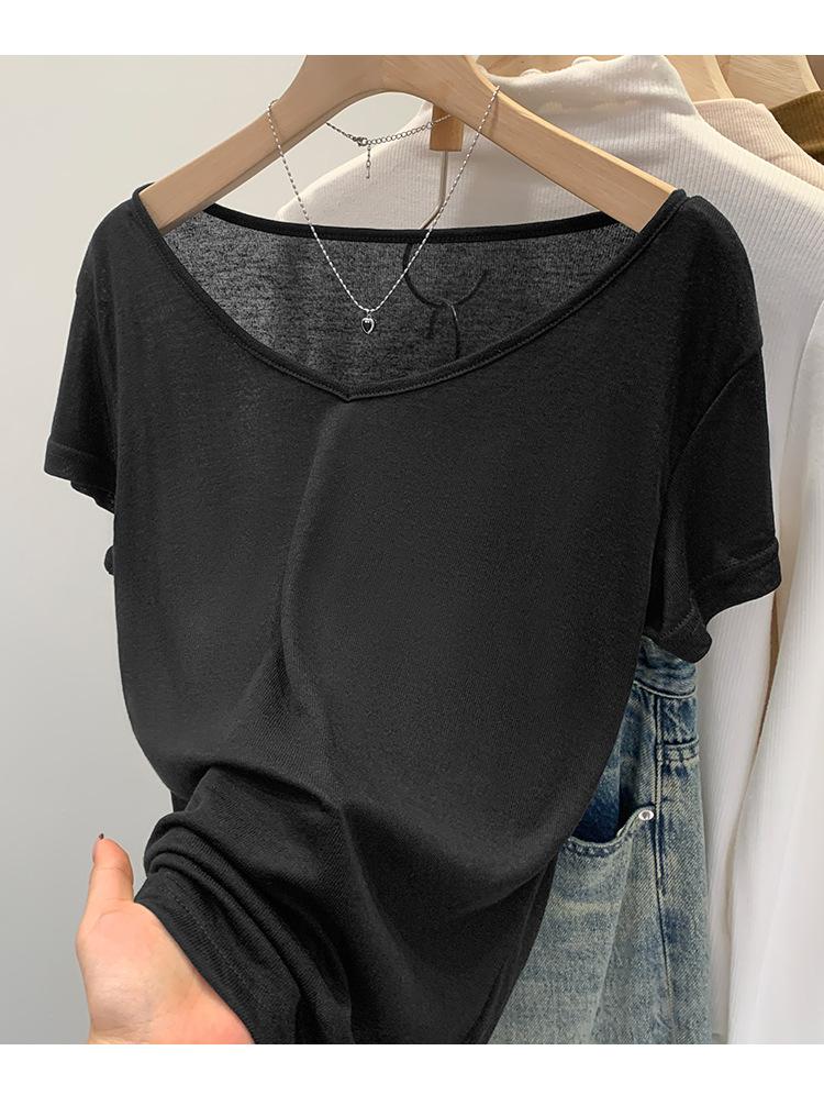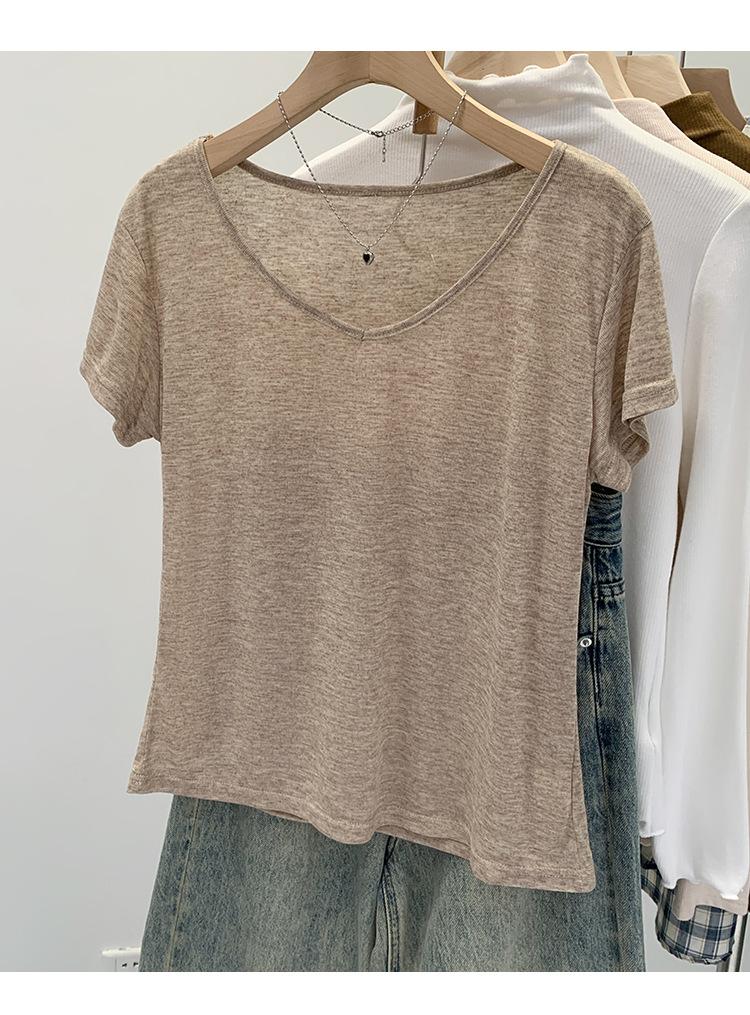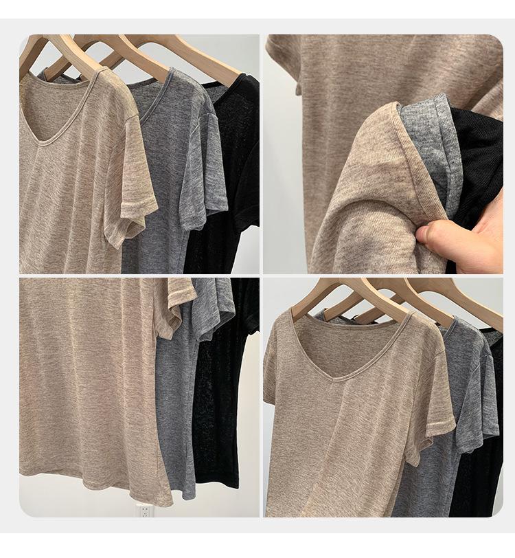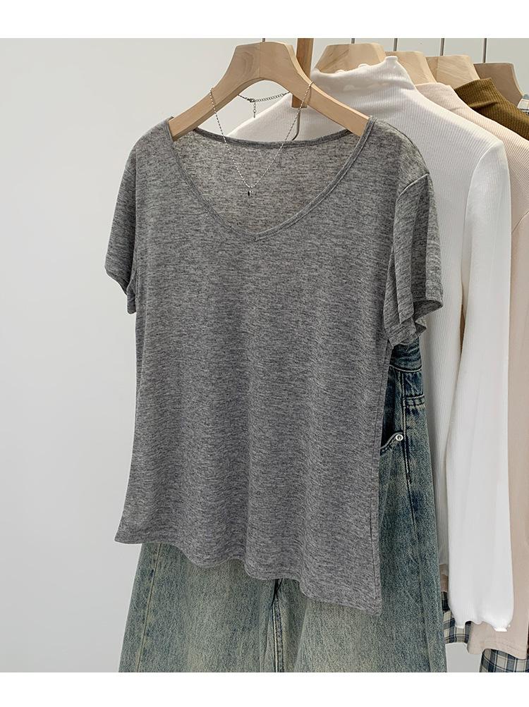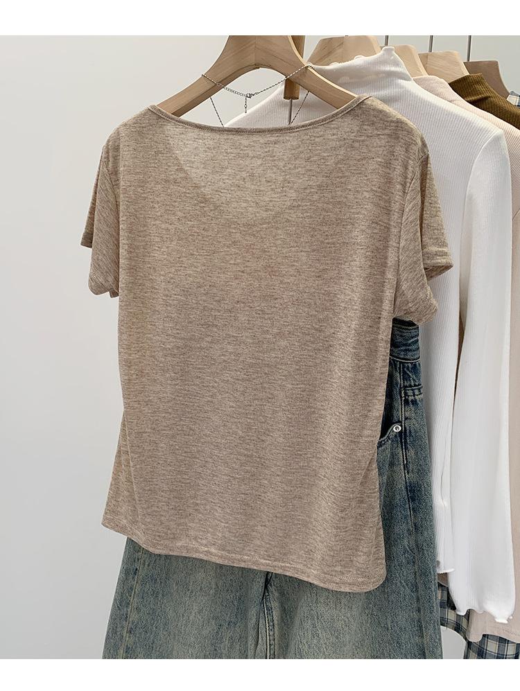 Camiseta holgada de manga corta con cuello en V y diseño adelgazante para mujer, estilo coreano, estilo Pure Desire, para verano de 2025.