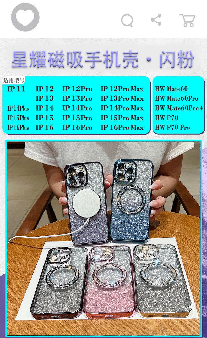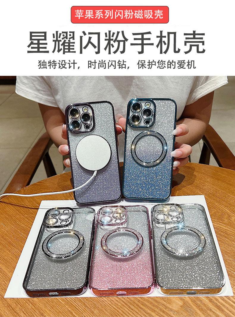 Adecuado para Funda de Teléfono Móvil Apple 16Pm Magnética Todo Incluido Apple 15Iphone13Pro Funda de Teléfono Móvil 14 Polvo de Brillo de Estrella