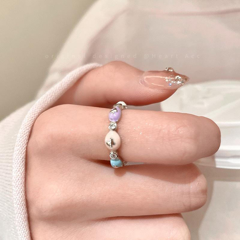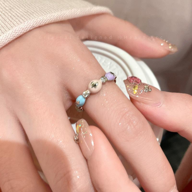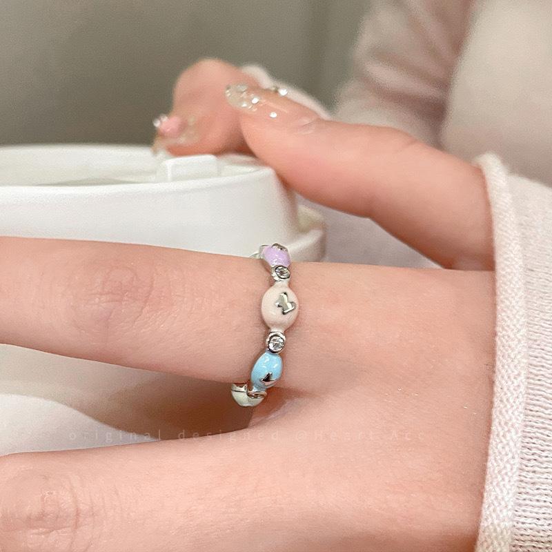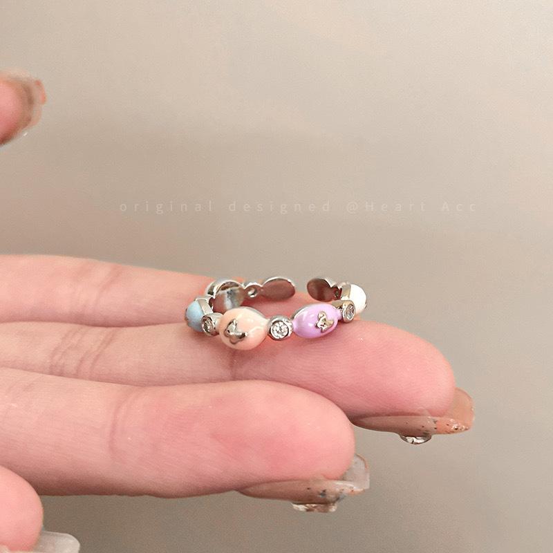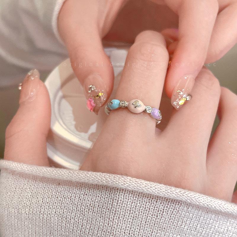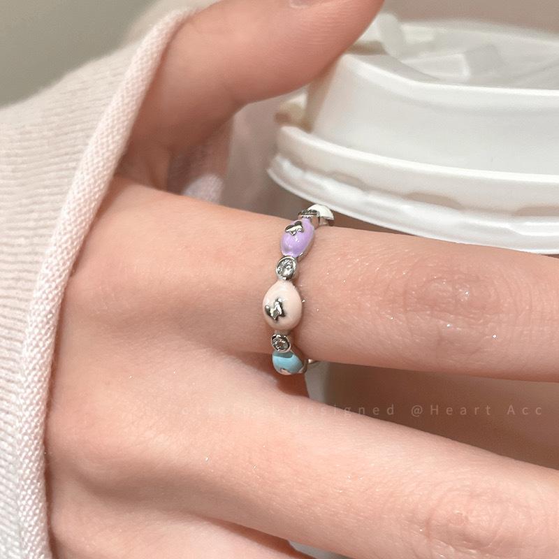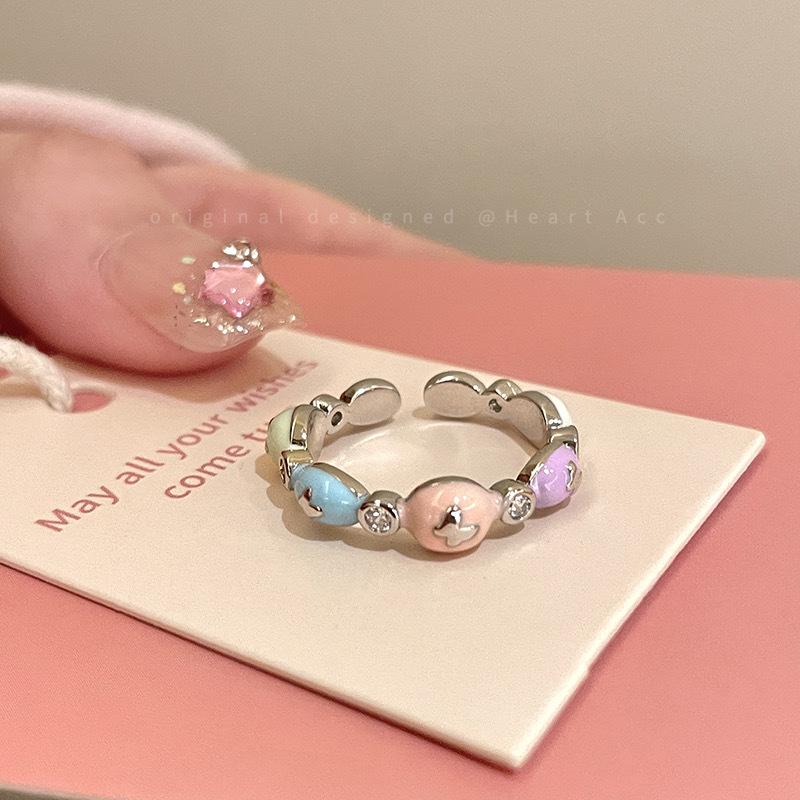 Anillo Abierto de Lazo con Esmalte de Goteo Colorido para Mujer, Moda, Temperamento Suave, Anillo para Dedo Dulce y Único, Anillo con Sensación de Alta Gama