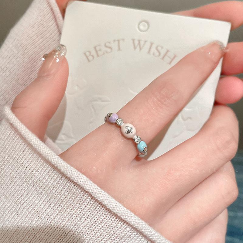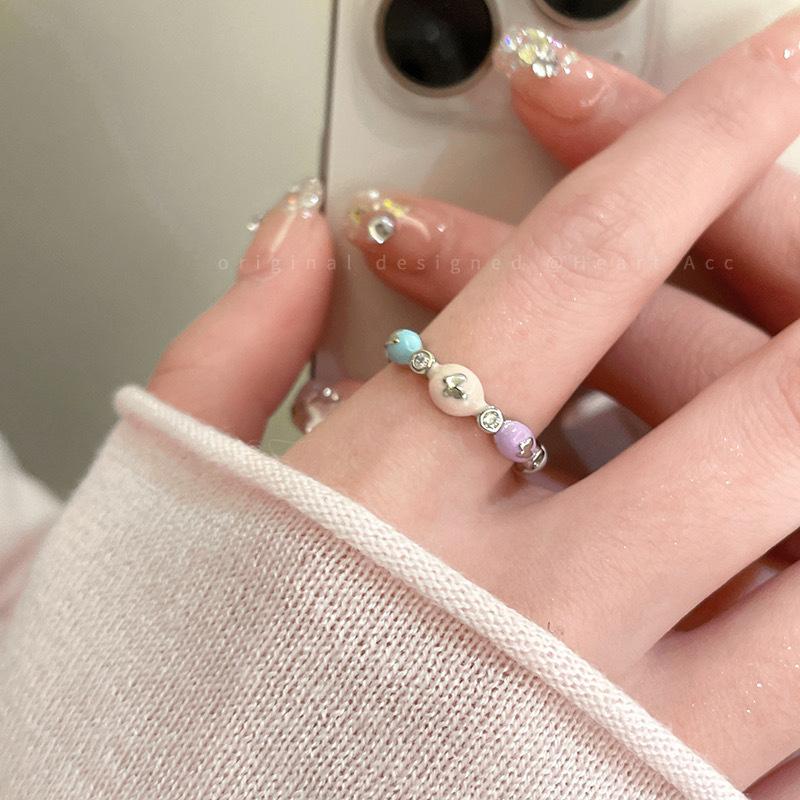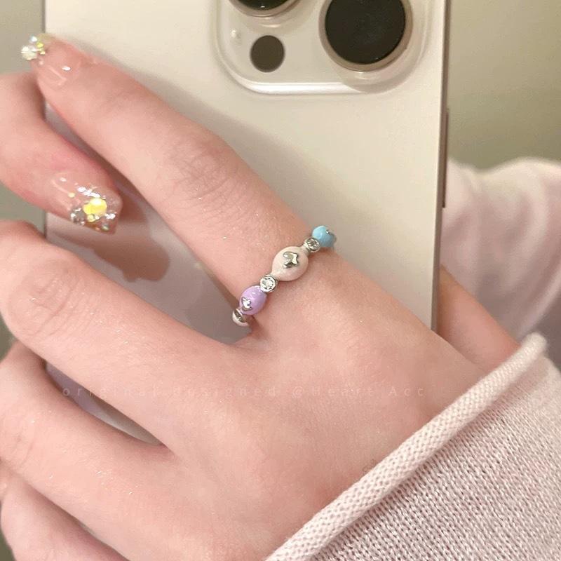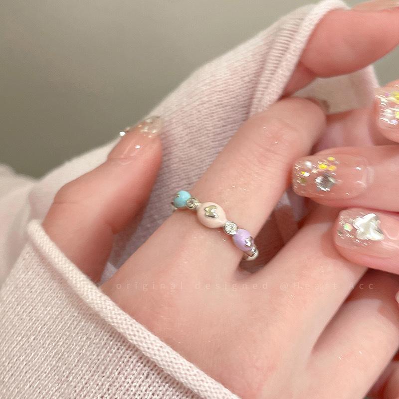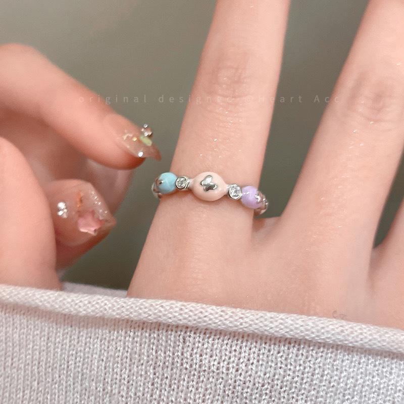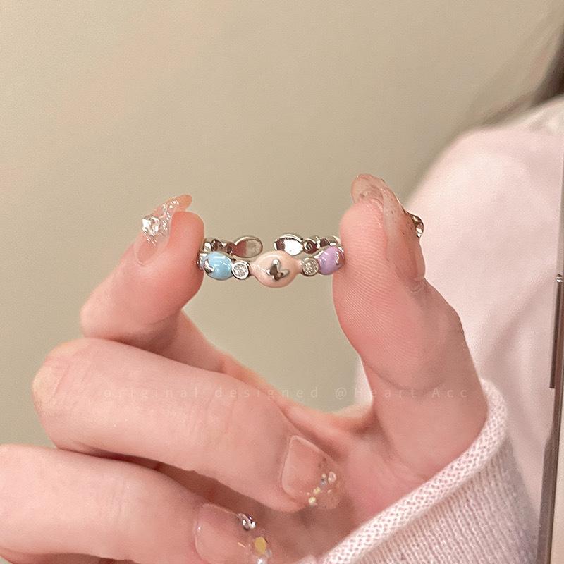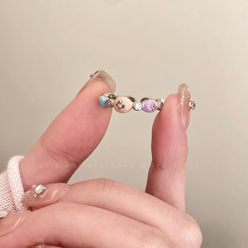 Anillo Abierto de Lazo con Esmalte de Goteo Colorido para Mujer, Moda, Temperamento Suave, Anillo para Dedo Dulce y Único, Anillo con Sensación de Alta Gama