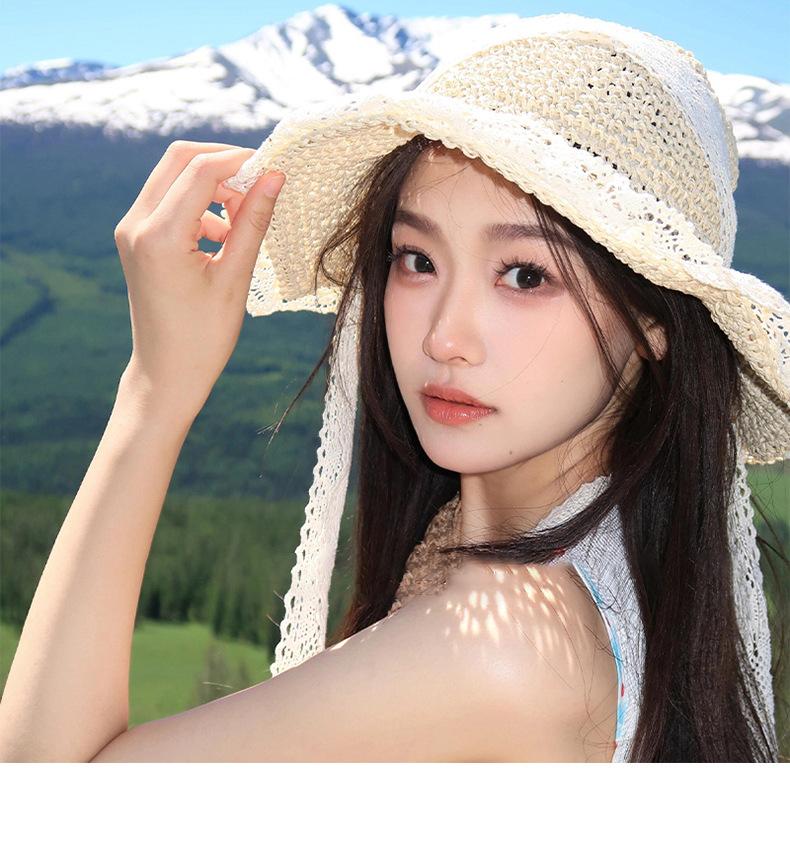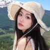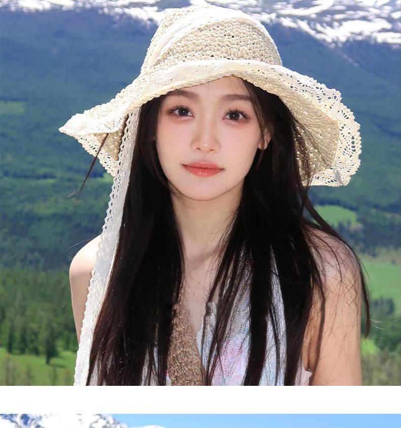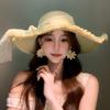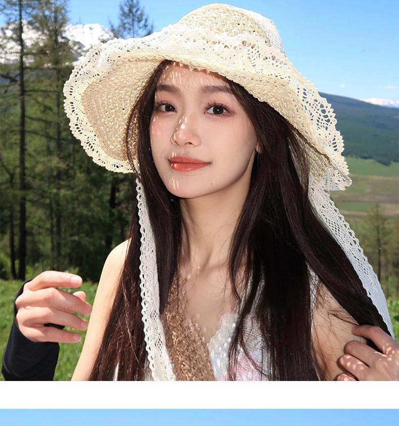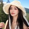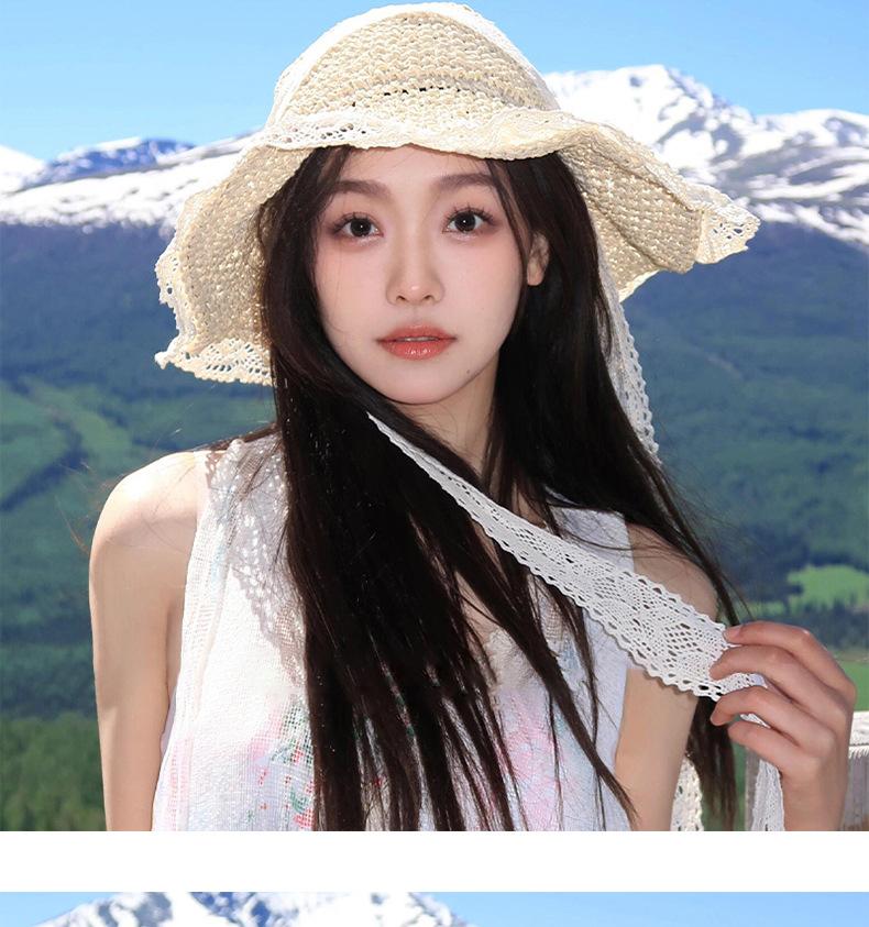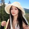 Sombrero de Paja de Ala Ancha con Lazos de Encaje Estilo Ins para Verano para Mujer 2025 Nuevo Sombrero de Protección Solar para Vacaciones en la Playa