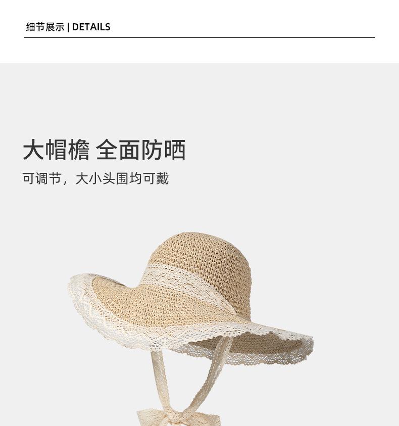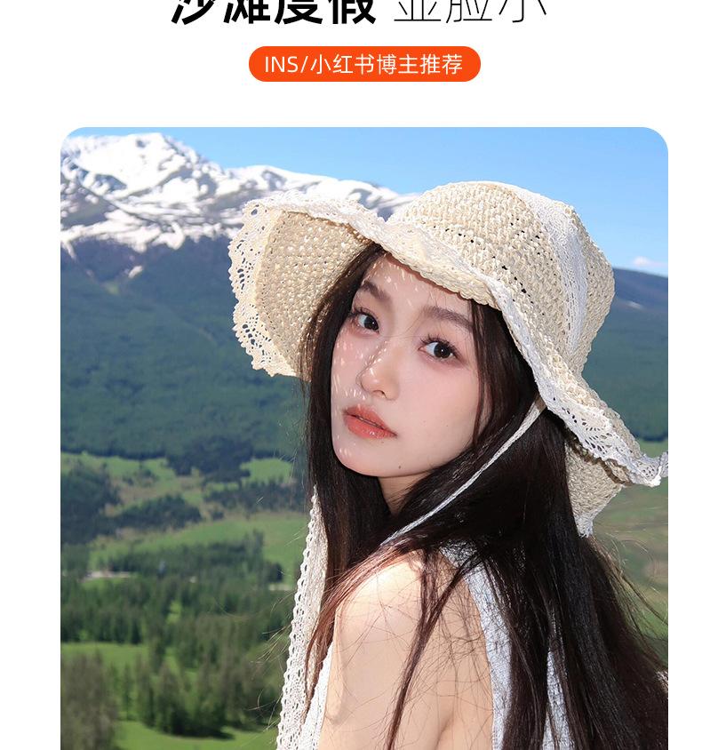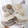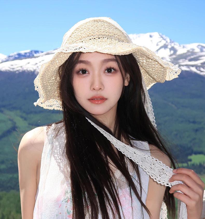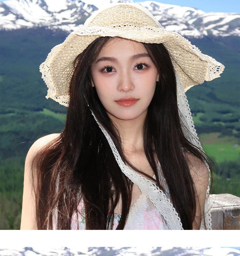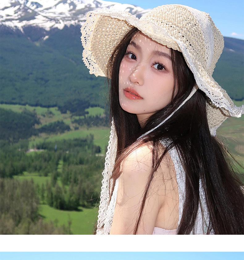 Sombrero de Paja de Ala Ancha con Lazos de Encaje Estilo Ins para Verano para Mujer 2025 Nuevo Sombrero de Protección Solar para Vacaciones en la Playa