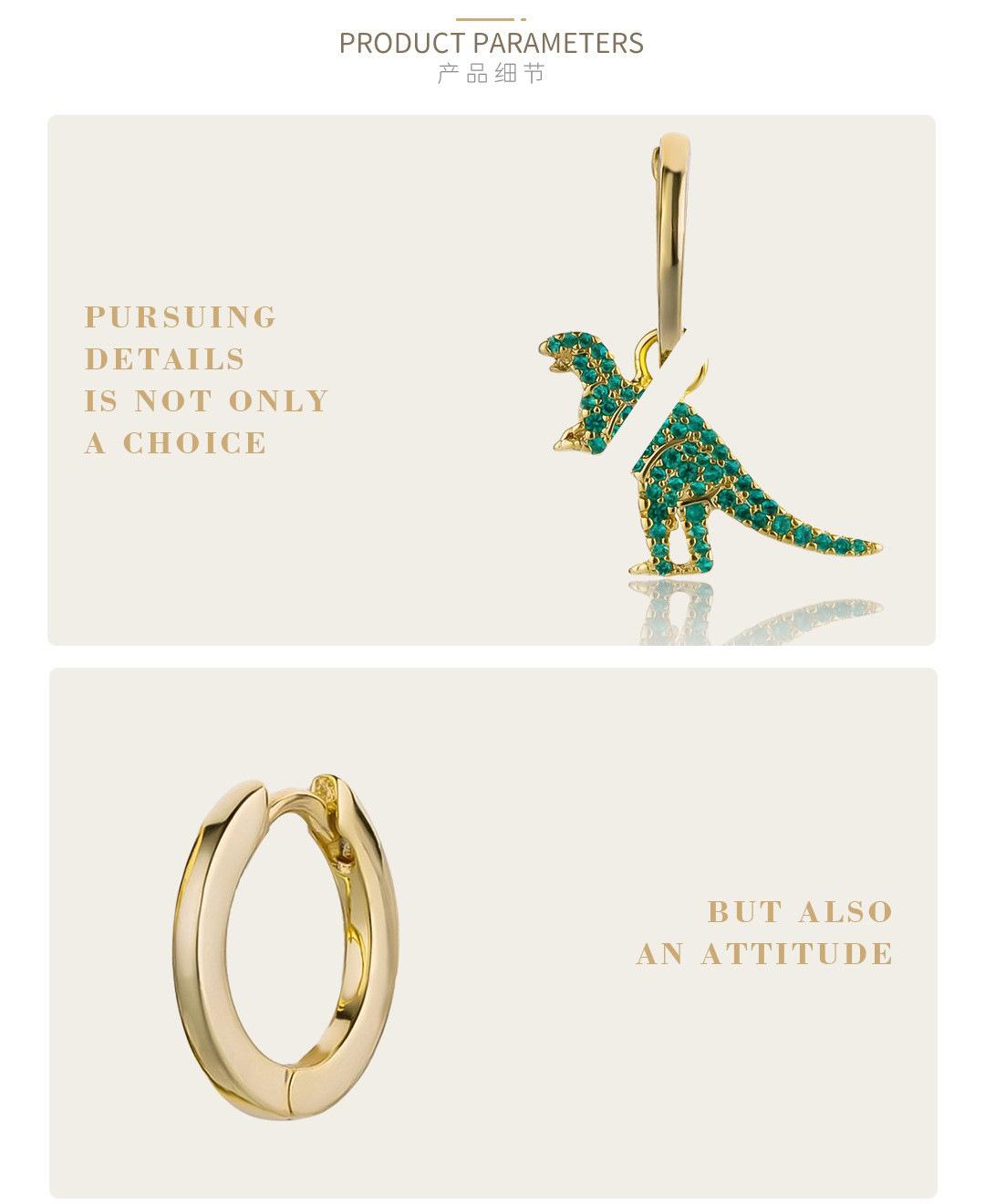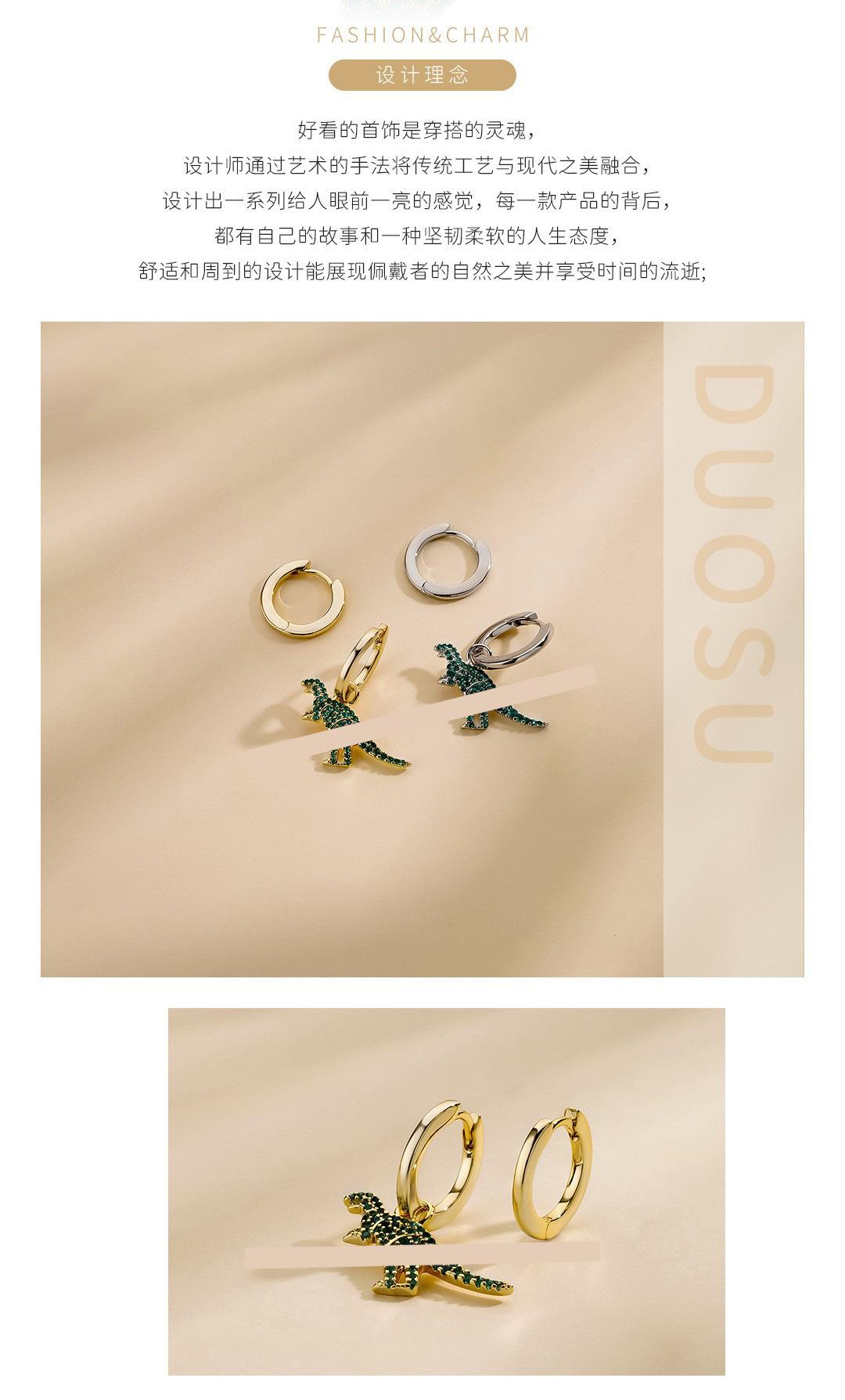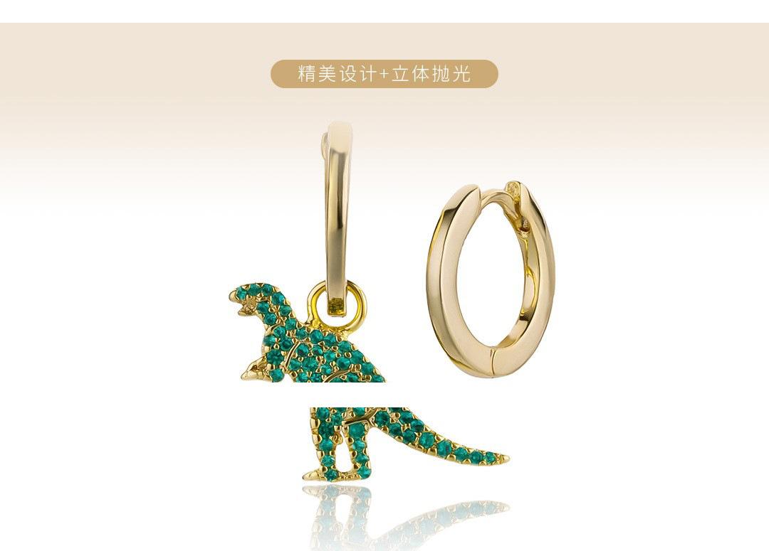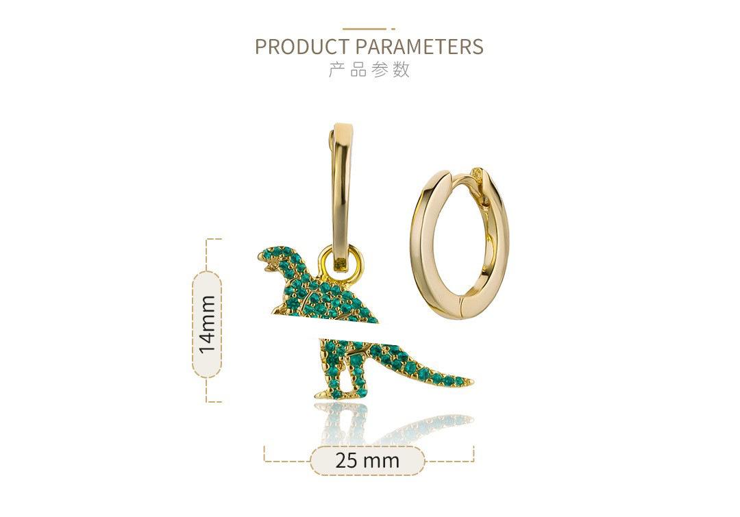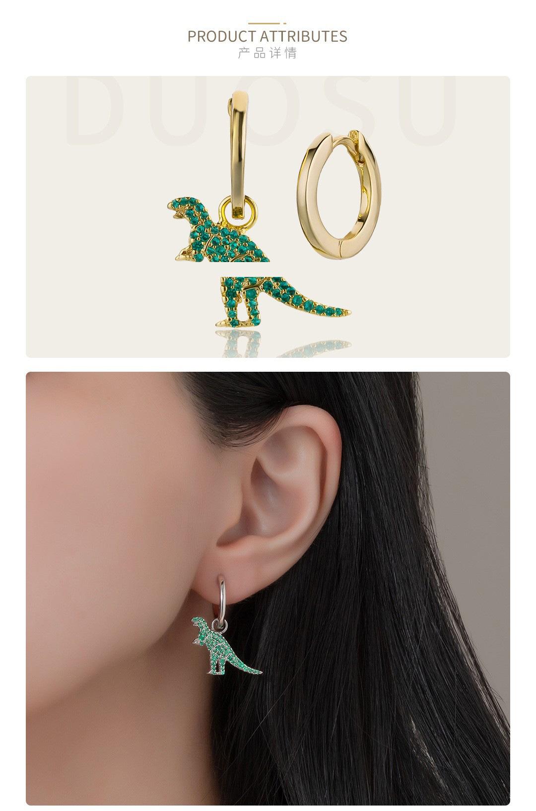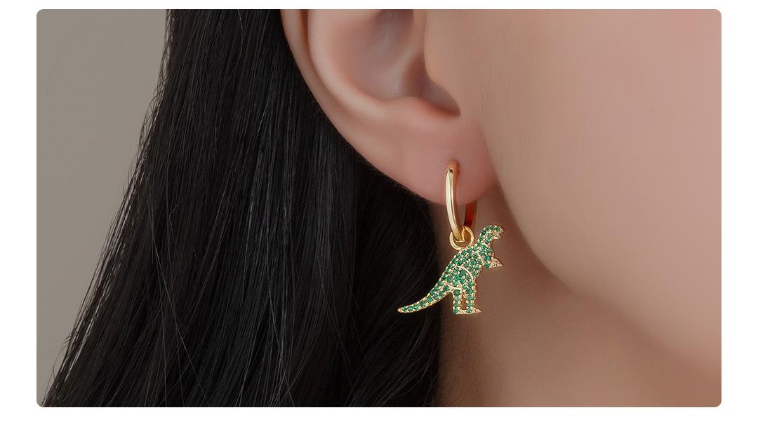 Pendientes de dinosaurio pequeño AB con incrustaciones de diamantes, estilo japonés y coreano, muy lindos y encantadores, pendientes de celebridades de Internet.