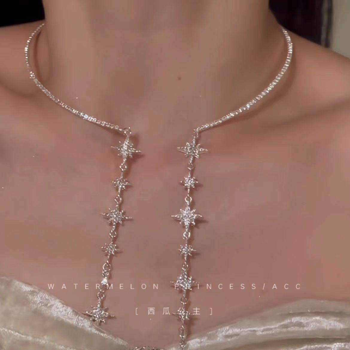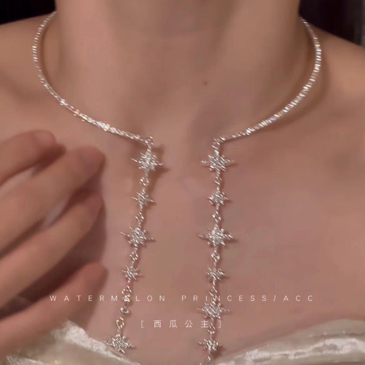 Gargantilla con borlas de diamantes Super Fairy Flash, elegante, de lujo, de alta gama, para mujer, para cenas y vestidos.