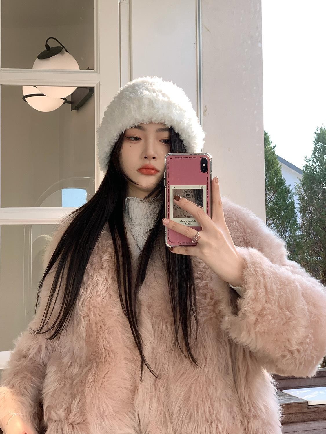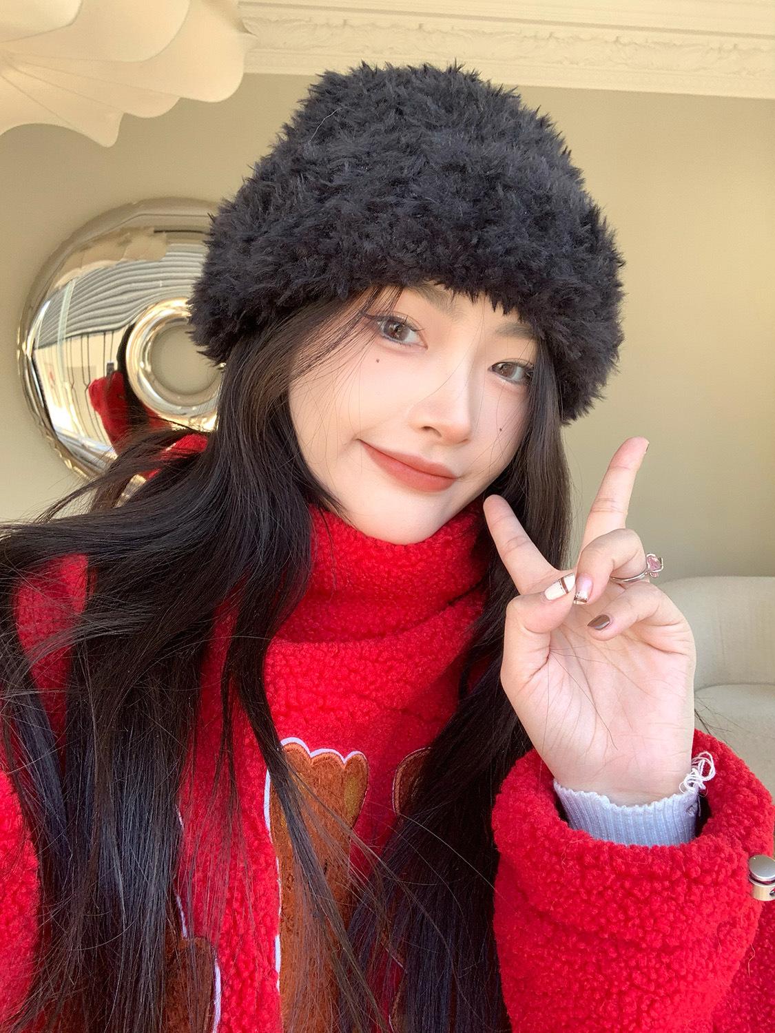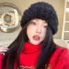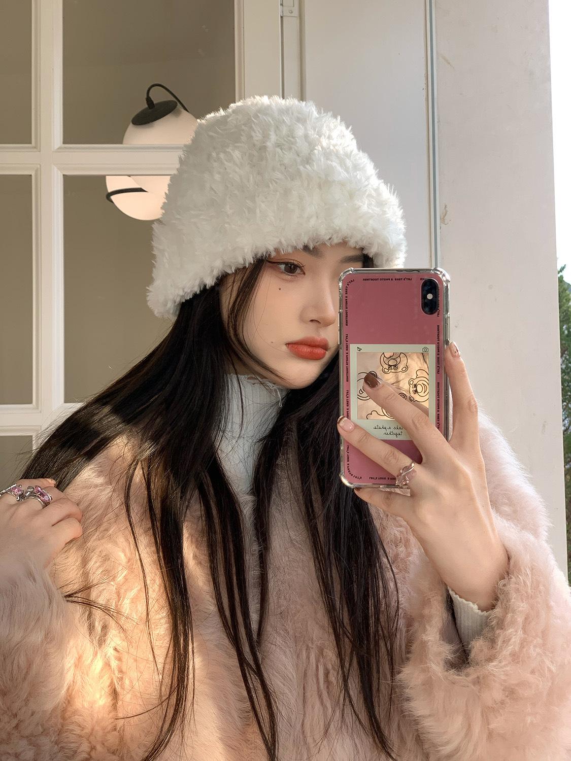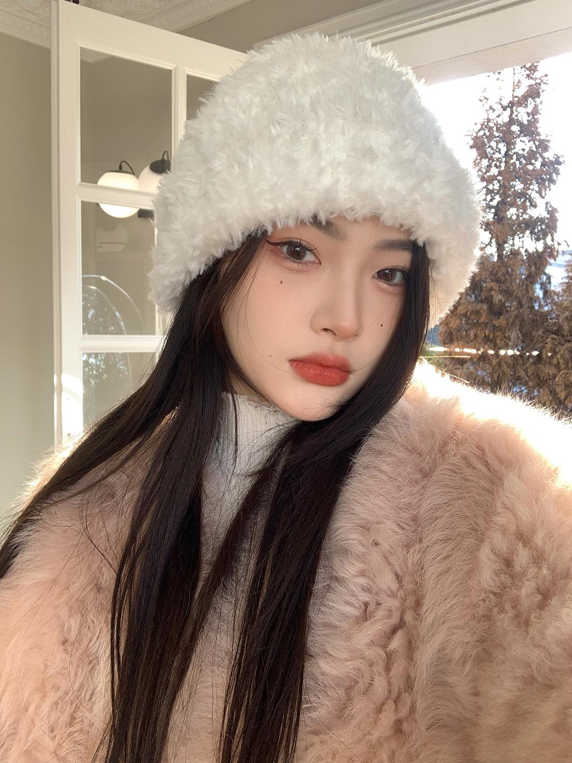 Gorro de felpa blanco de piel artificial para mujer, bonito gorro de punto de lana para invierno, cálido y con orejeras para el frío.