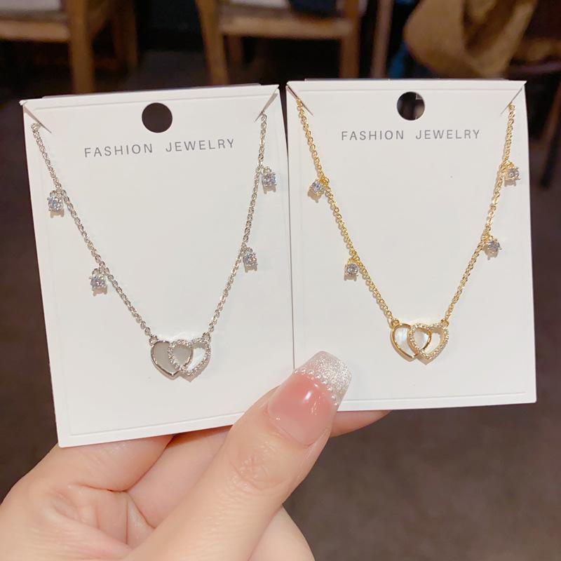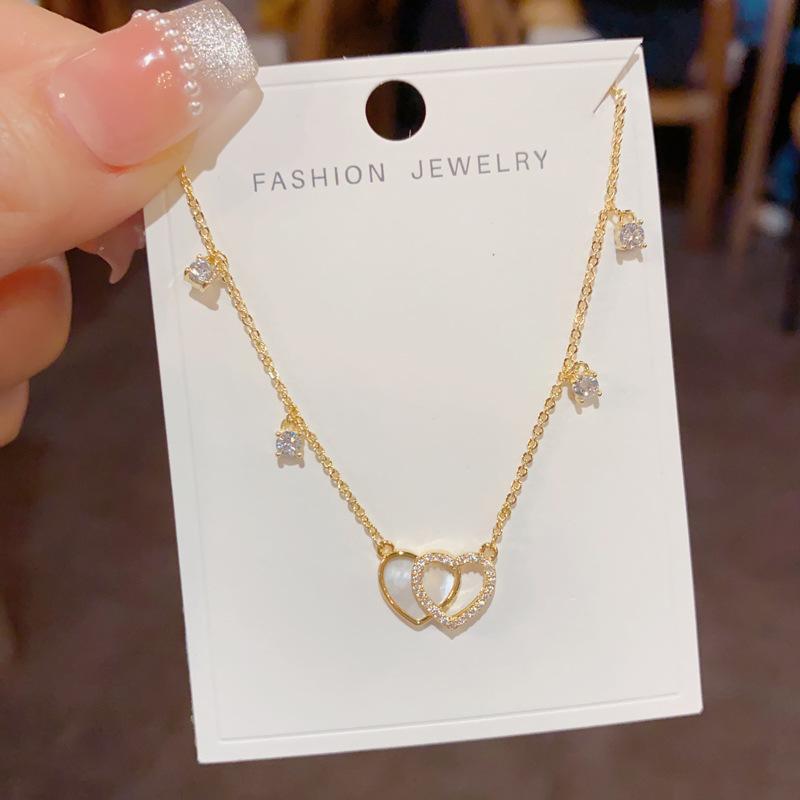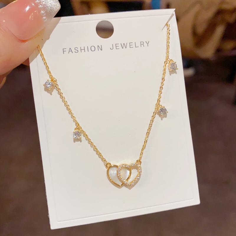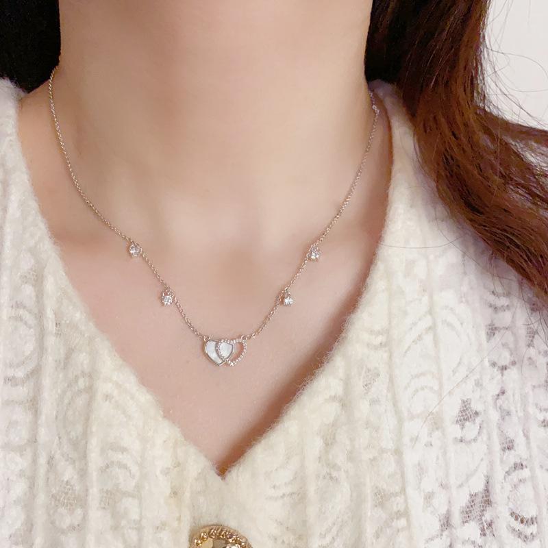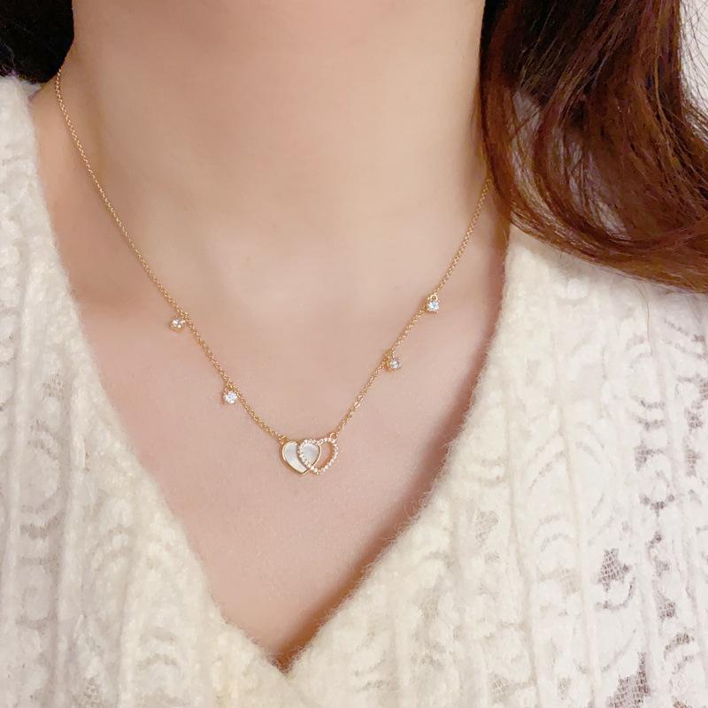 Collar con colgante de doble amor, elegante y a la moda, con diseño de nicho y cadena de clavícula para mujer, de primavera