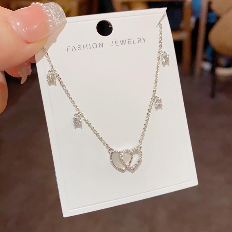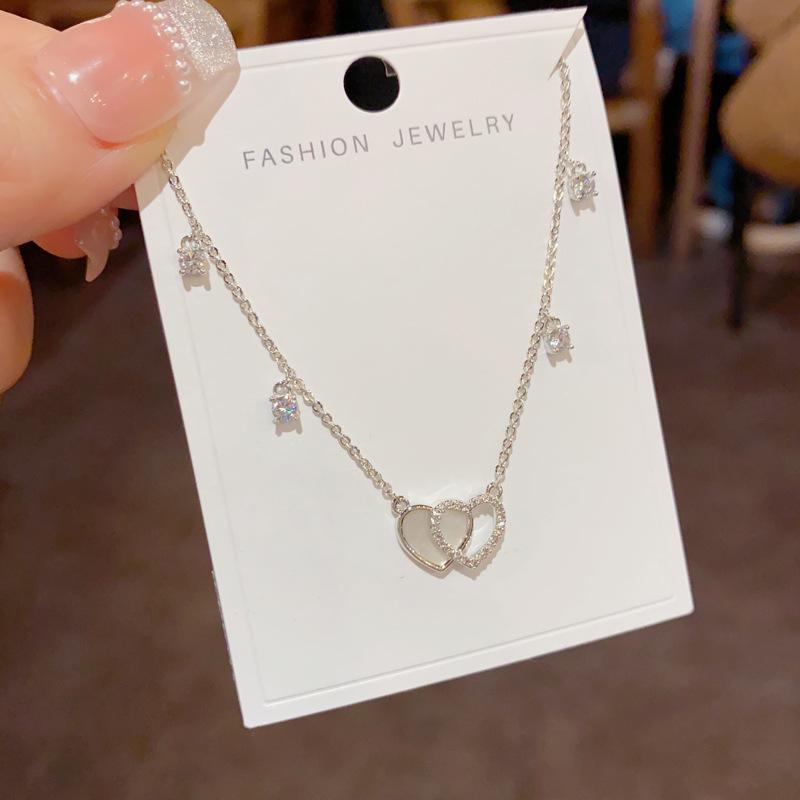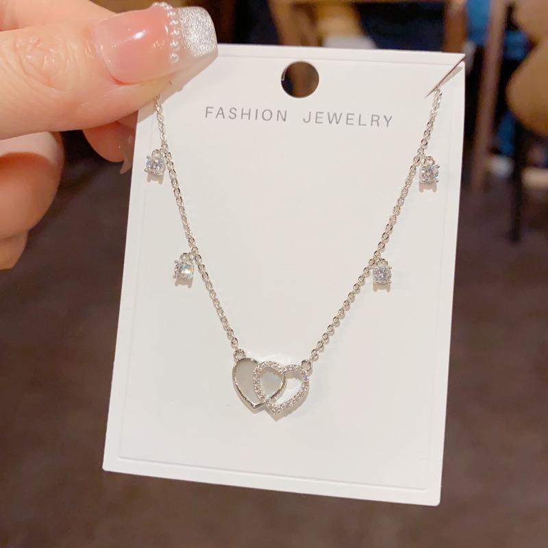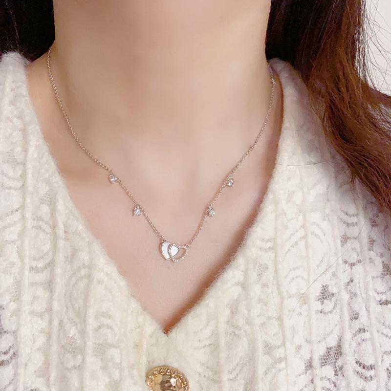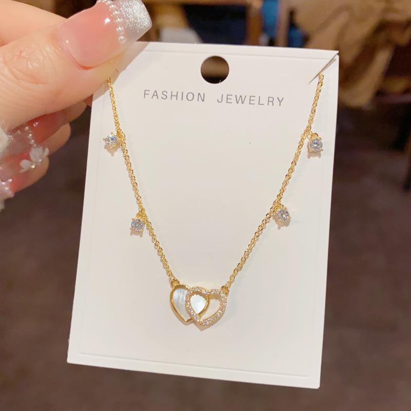 Collar con colgante de doble amor, elegante y a la moda, con diseño de nicho y cadena de clavícula para mujer, de primavera