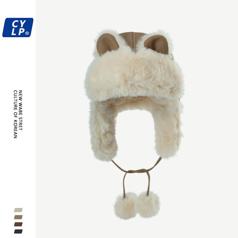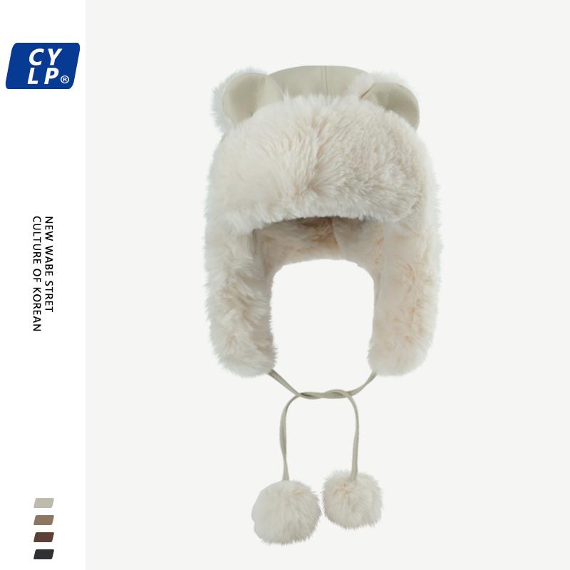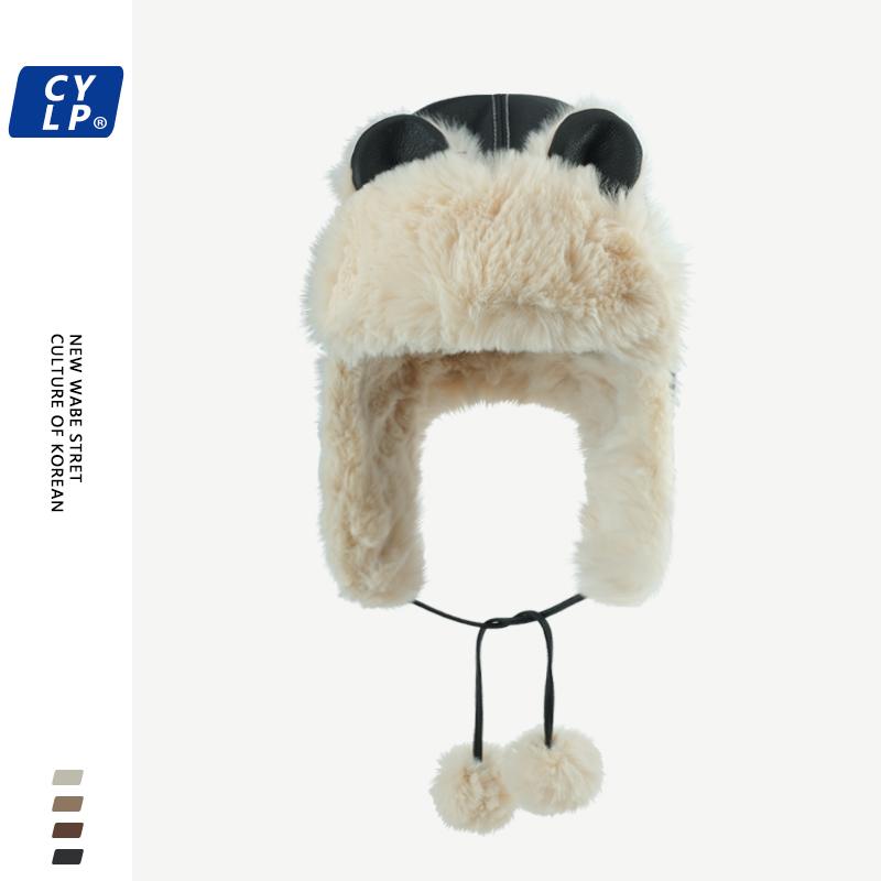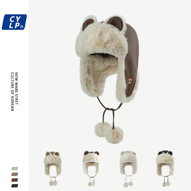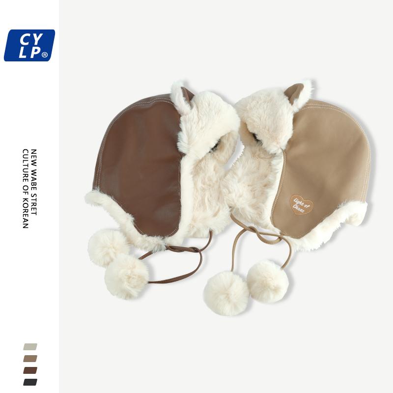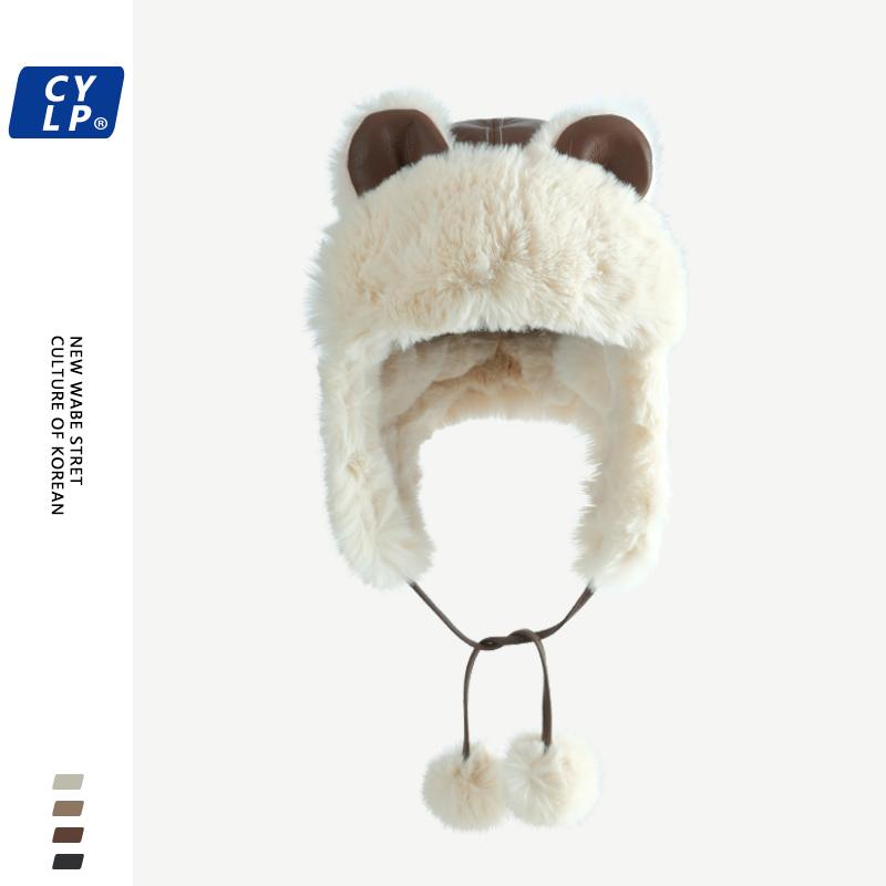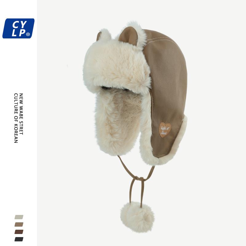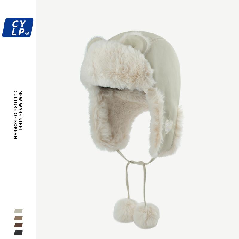 Sombrero Lei Feng de Invierno para Mujer con Orejas de Conejo Dulces y Lindas, de Algodón, Cálido y a Prueba de Frío, Coreano, con Bordado de Carta de Amor, Sombrero con Protección para las Orejas
