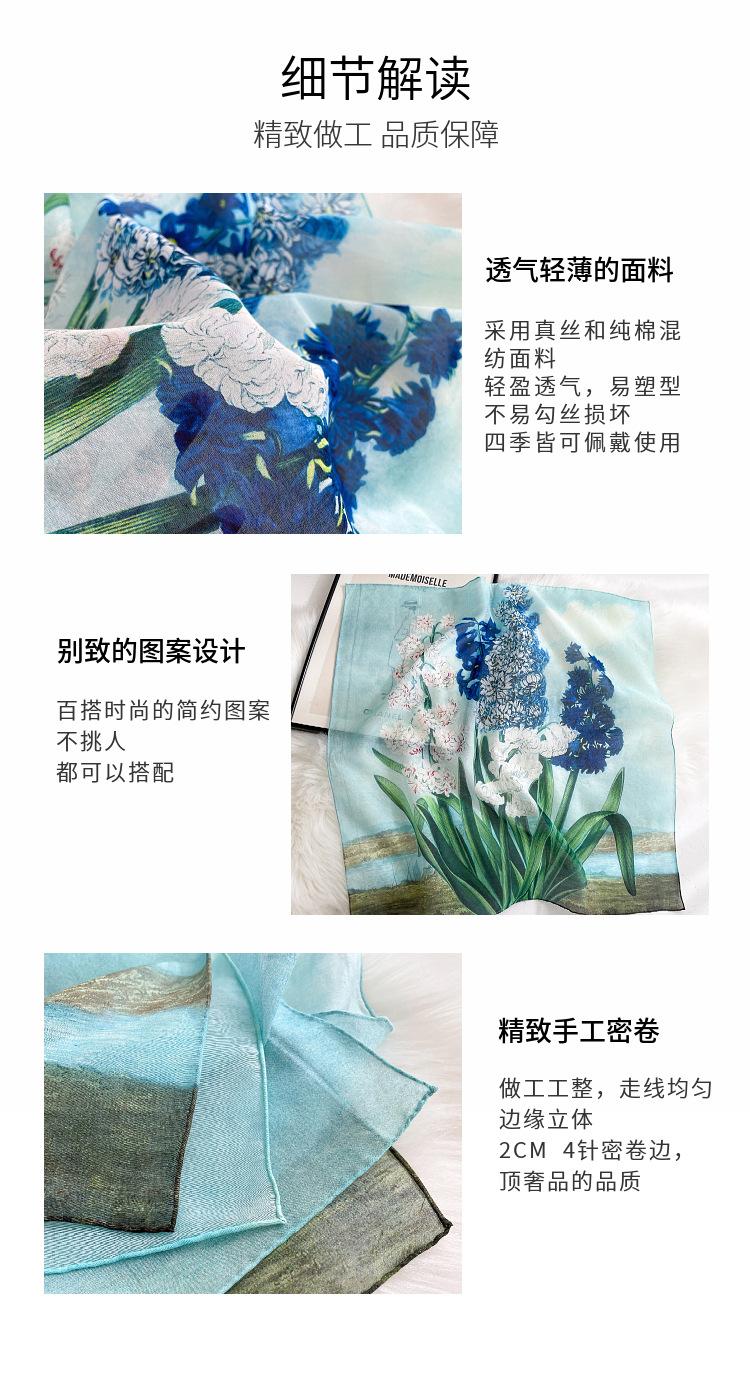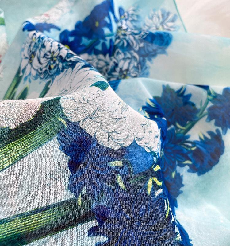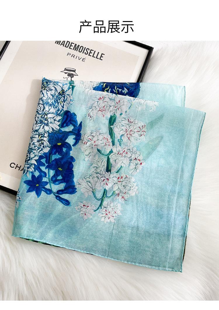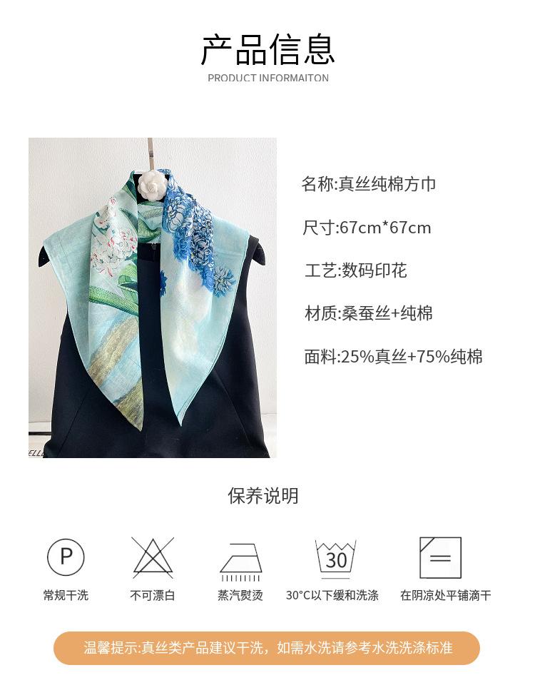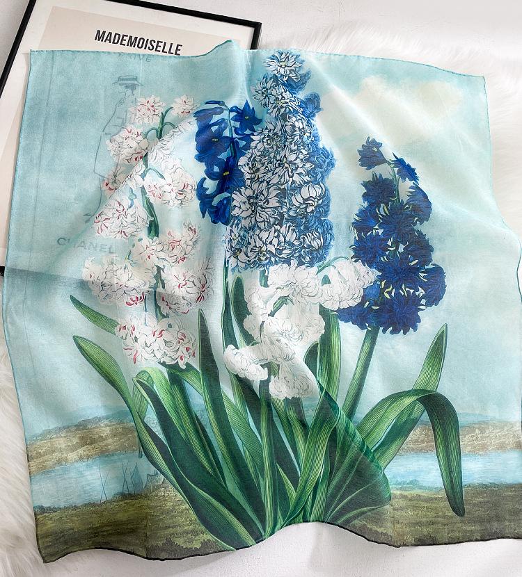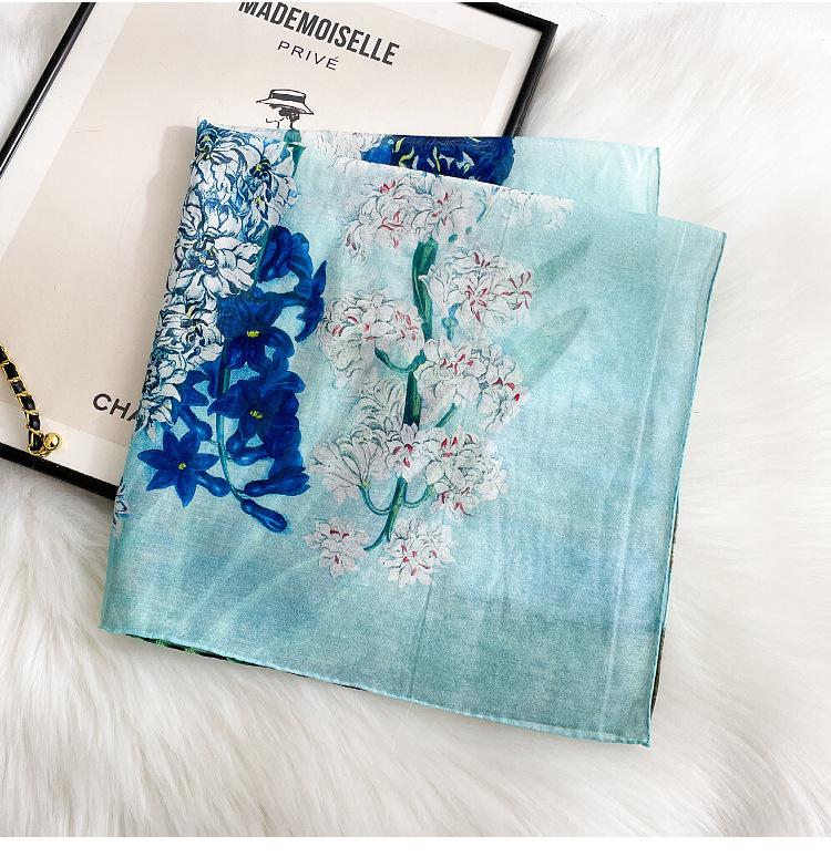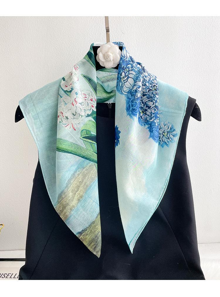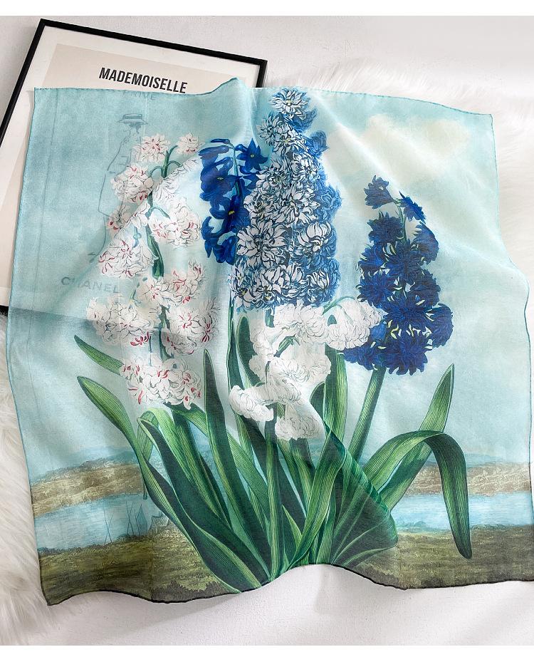 Elegante Bufanda de Seda para Mujer Bufanda Cuadrada Seda de Morera Seda Real Chal Estampado Floral Primavera Bufanda Delgada de Seda Algodón