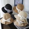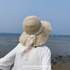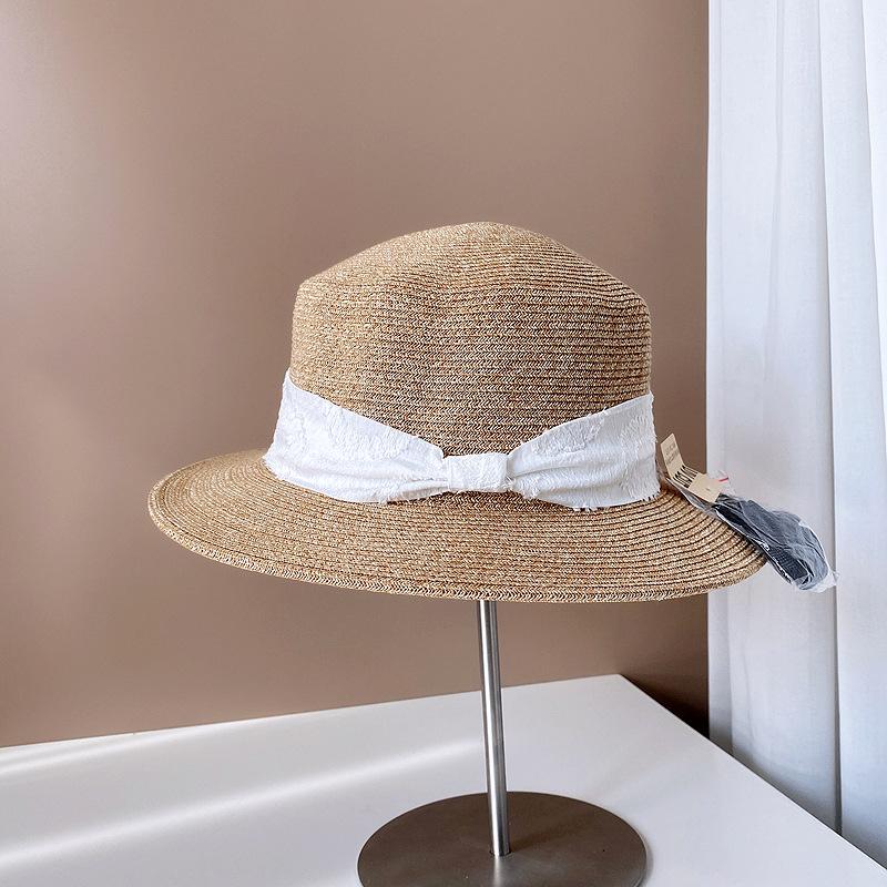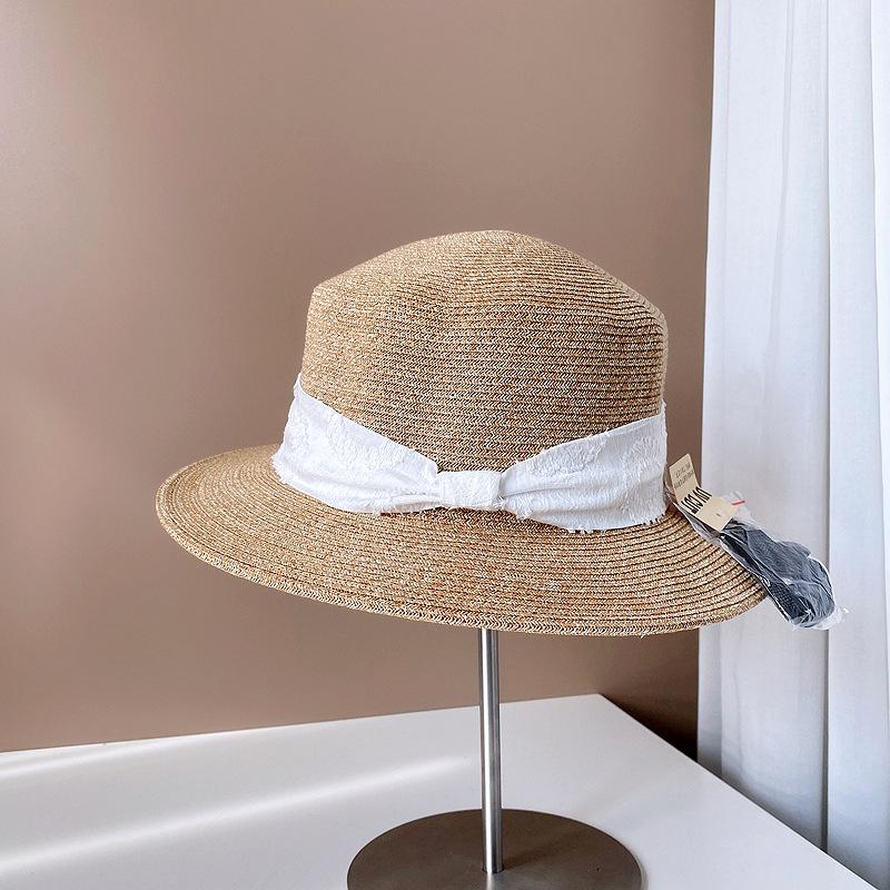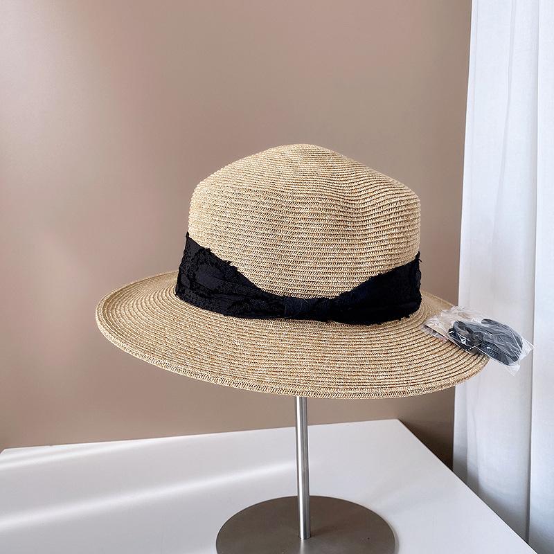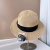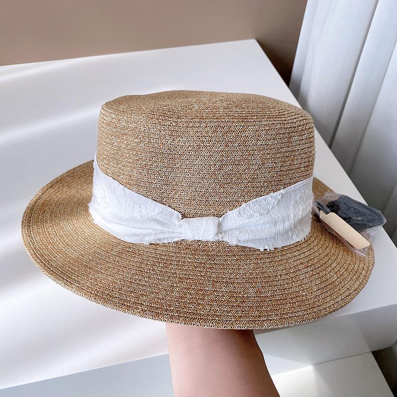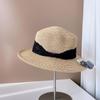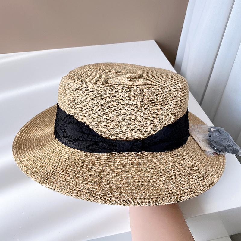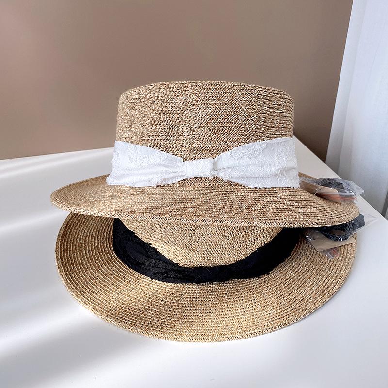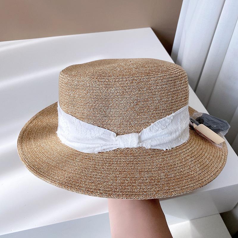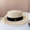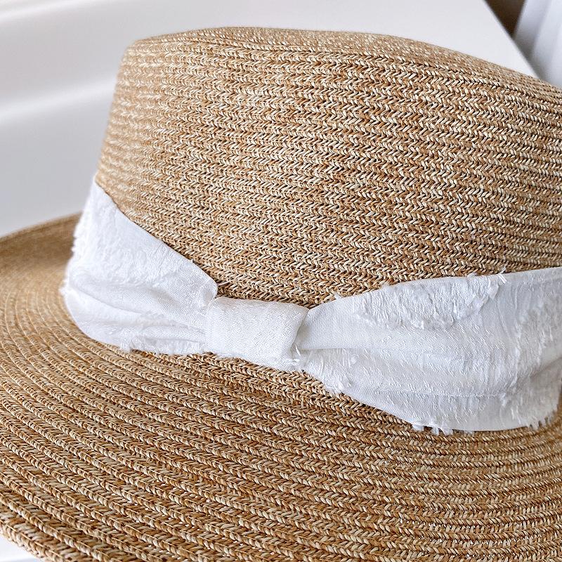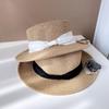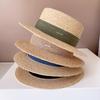 Sombrero de Copa Plano con Lazo de Cinta de Molienda Estilo Japonés para Mujer, Moderno, Combinable, Sombrero de Paja con Protección Solar, Sombrero de Playa para Vacaciones junto al Mar
