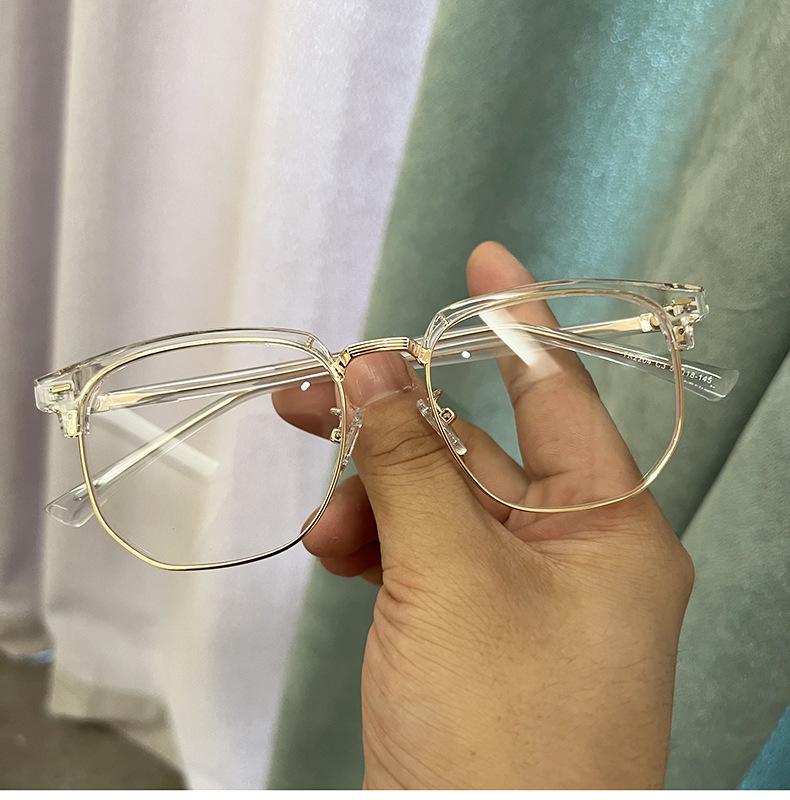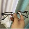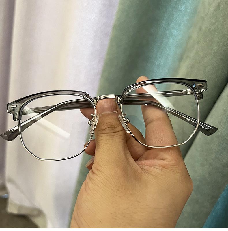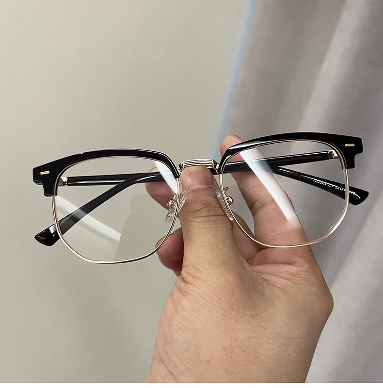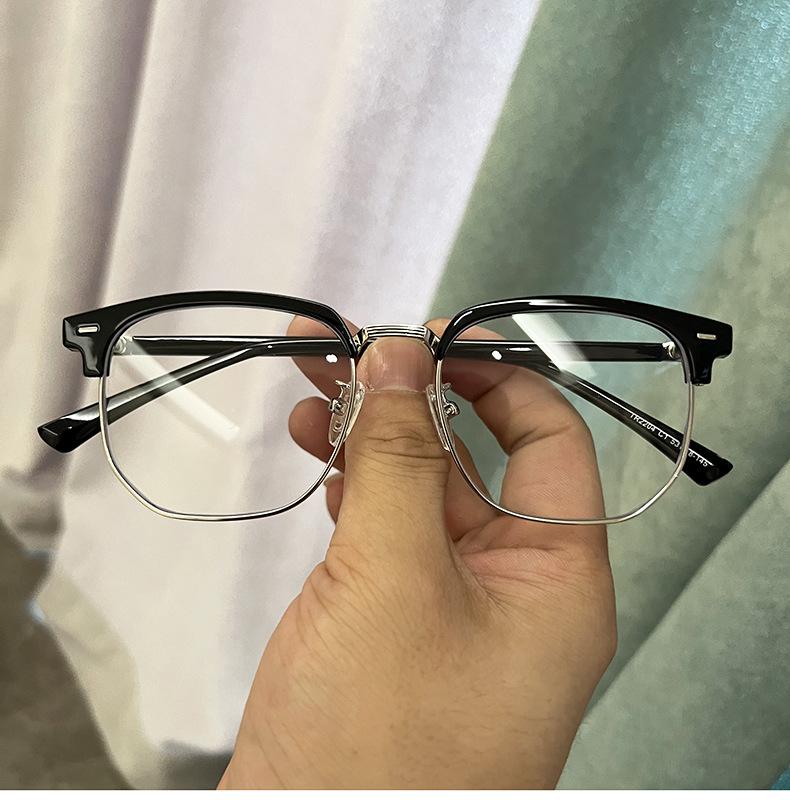 Gafas de miopía con cejas retro para hombre, de negocios, de medio marco, con espejo plano y antiluz azul, montura de gafas para mujer, talla 53