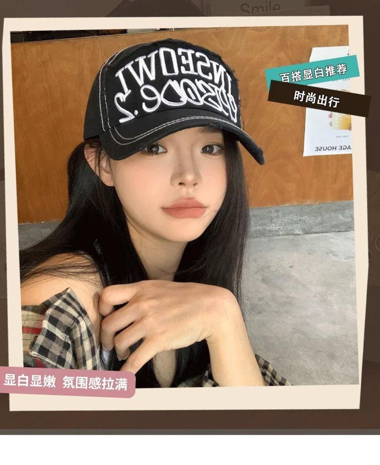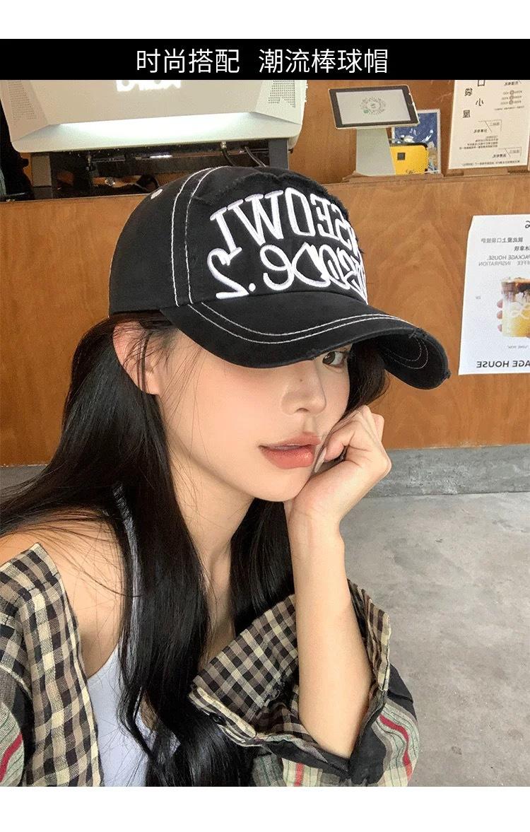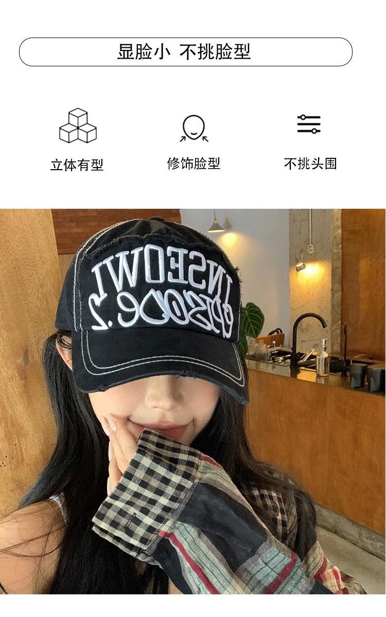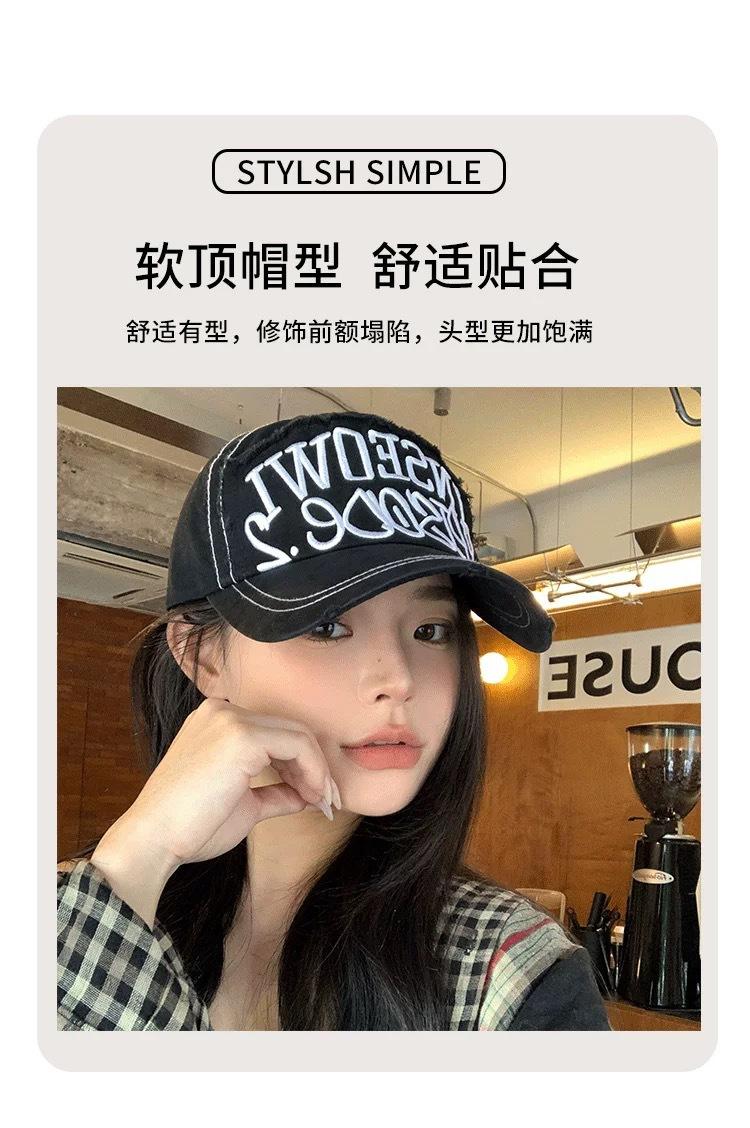 Gorra de béisbol bordada con letras negras para mujer, de ala ancha, con cara grande, estilo vintage americano, estilo gorra pequeña