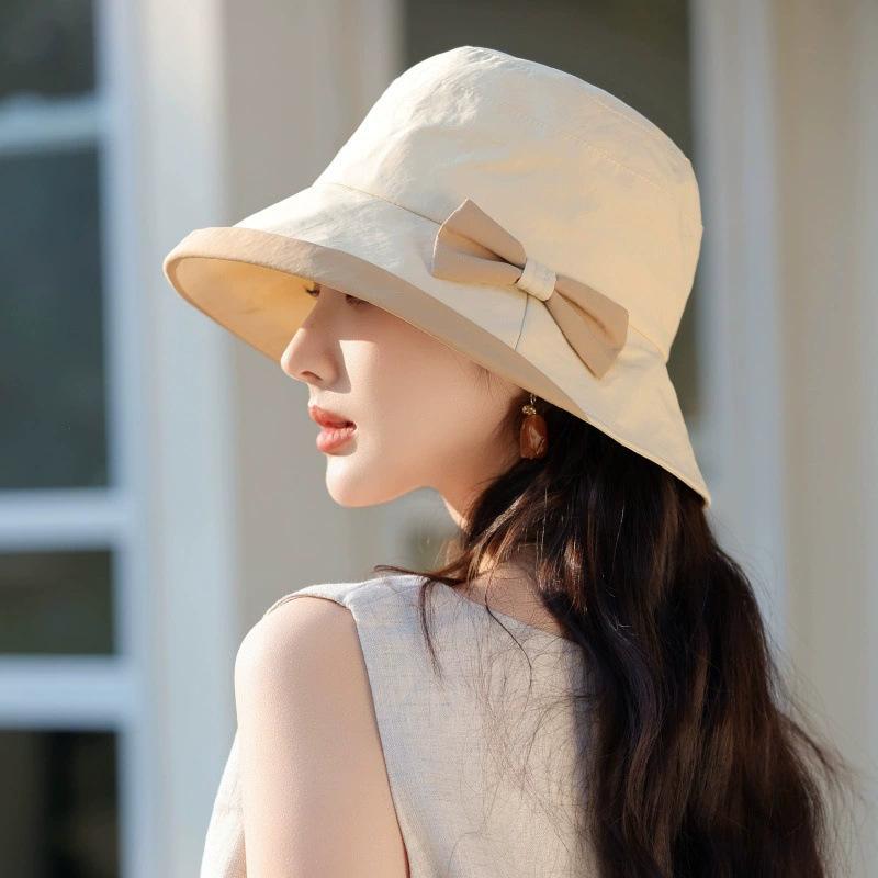 Sombrero de pescador con lazo elegante para primavera y verano, sombrero de lavabo combinable a la moda, protector solar de verano, sombrero transpirable para el sol.