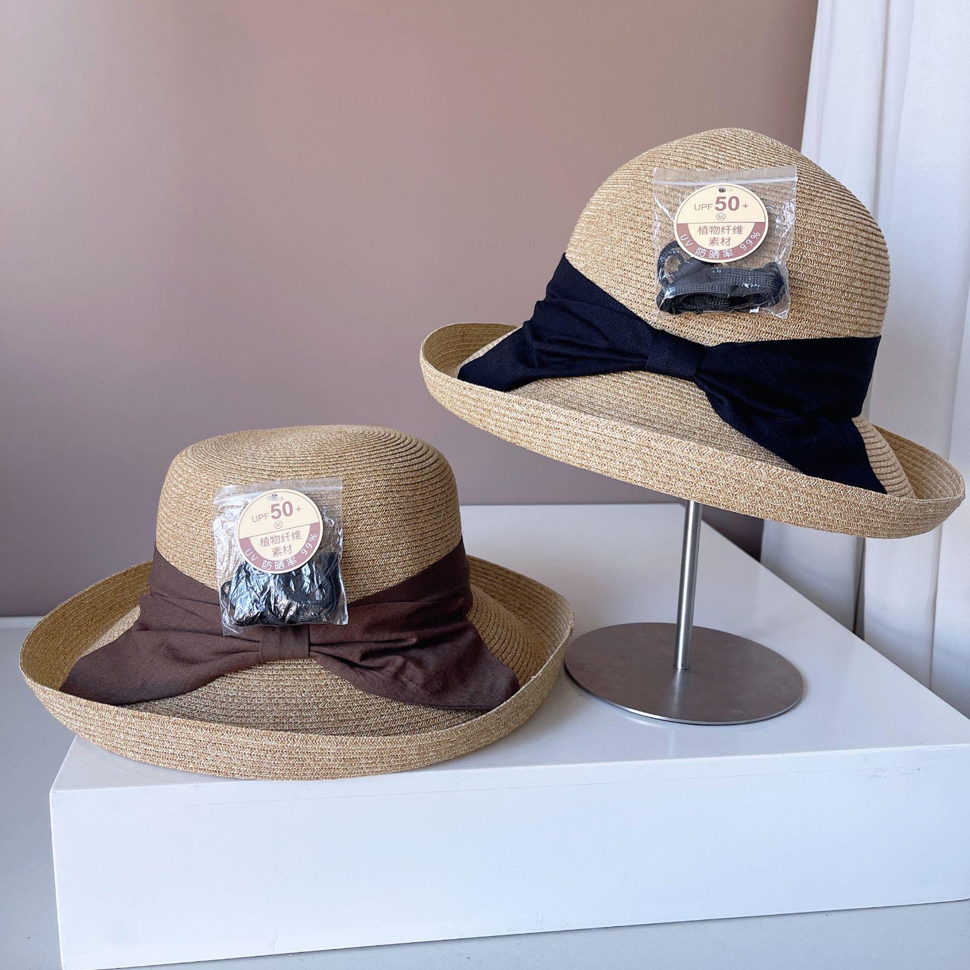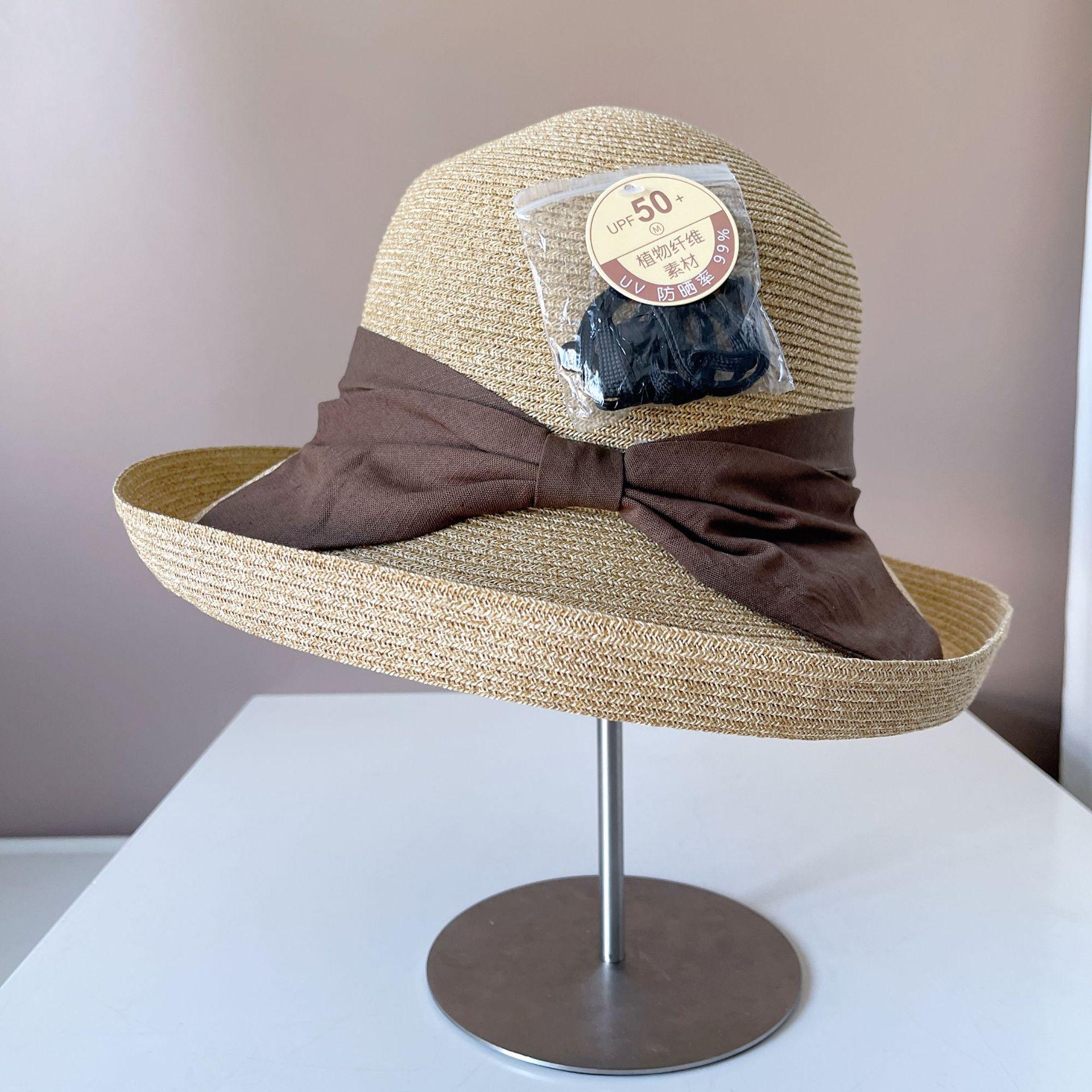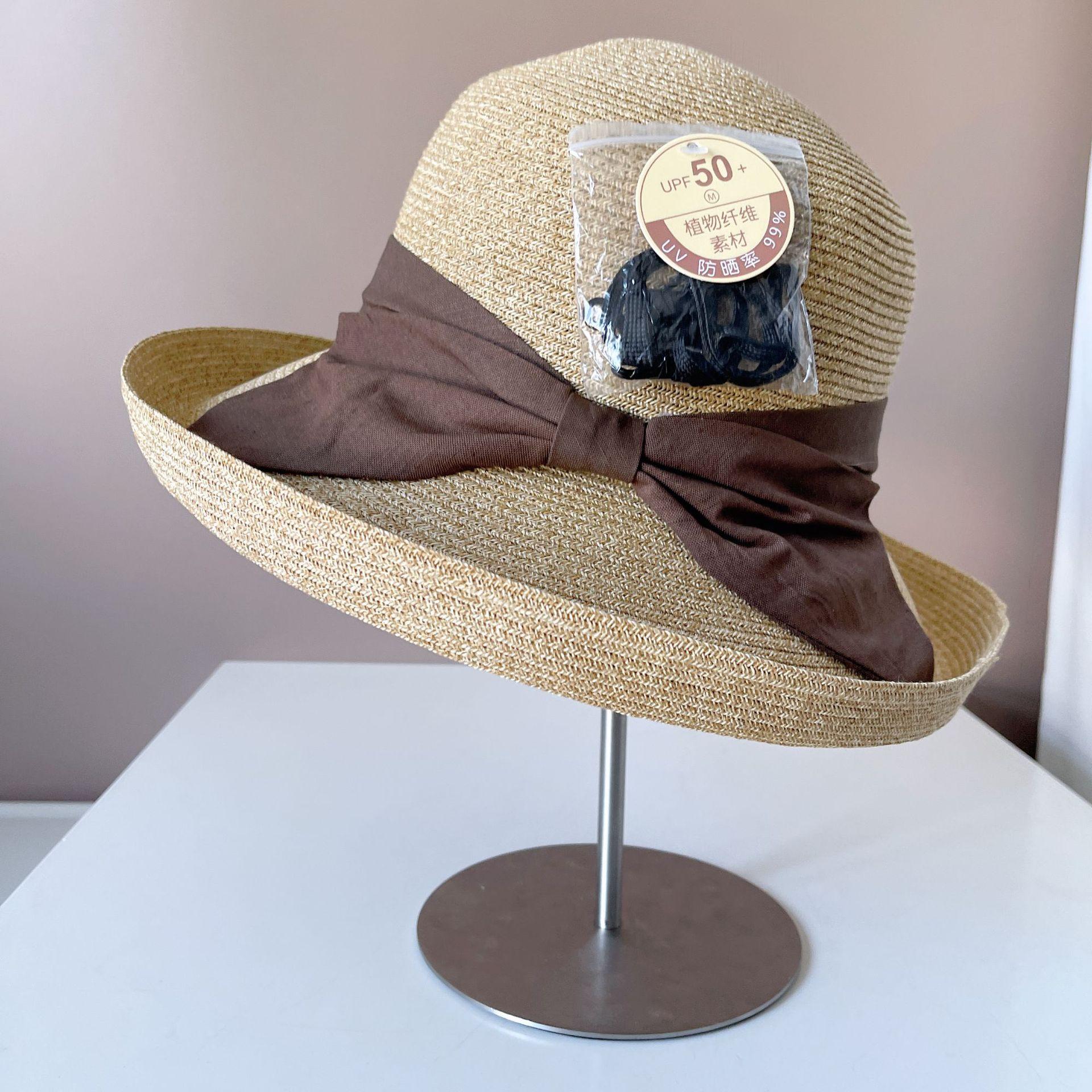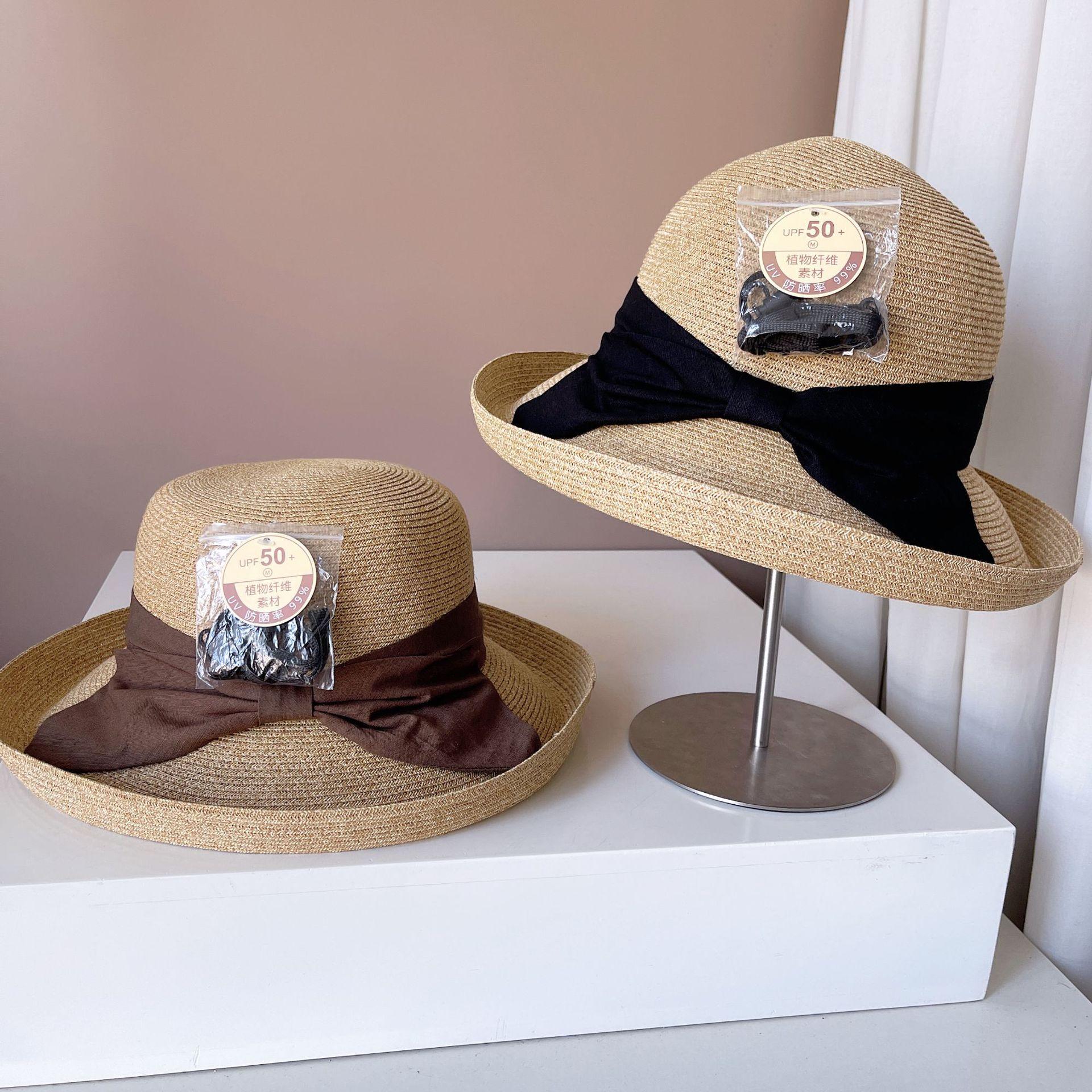 Sombrero de pescador japonés con lazo grande y vuelta, sombrero de paja con protector solar de verano para niños, sombrero de sol de borde grande, sombrero de lavabo para viajes al aire libre