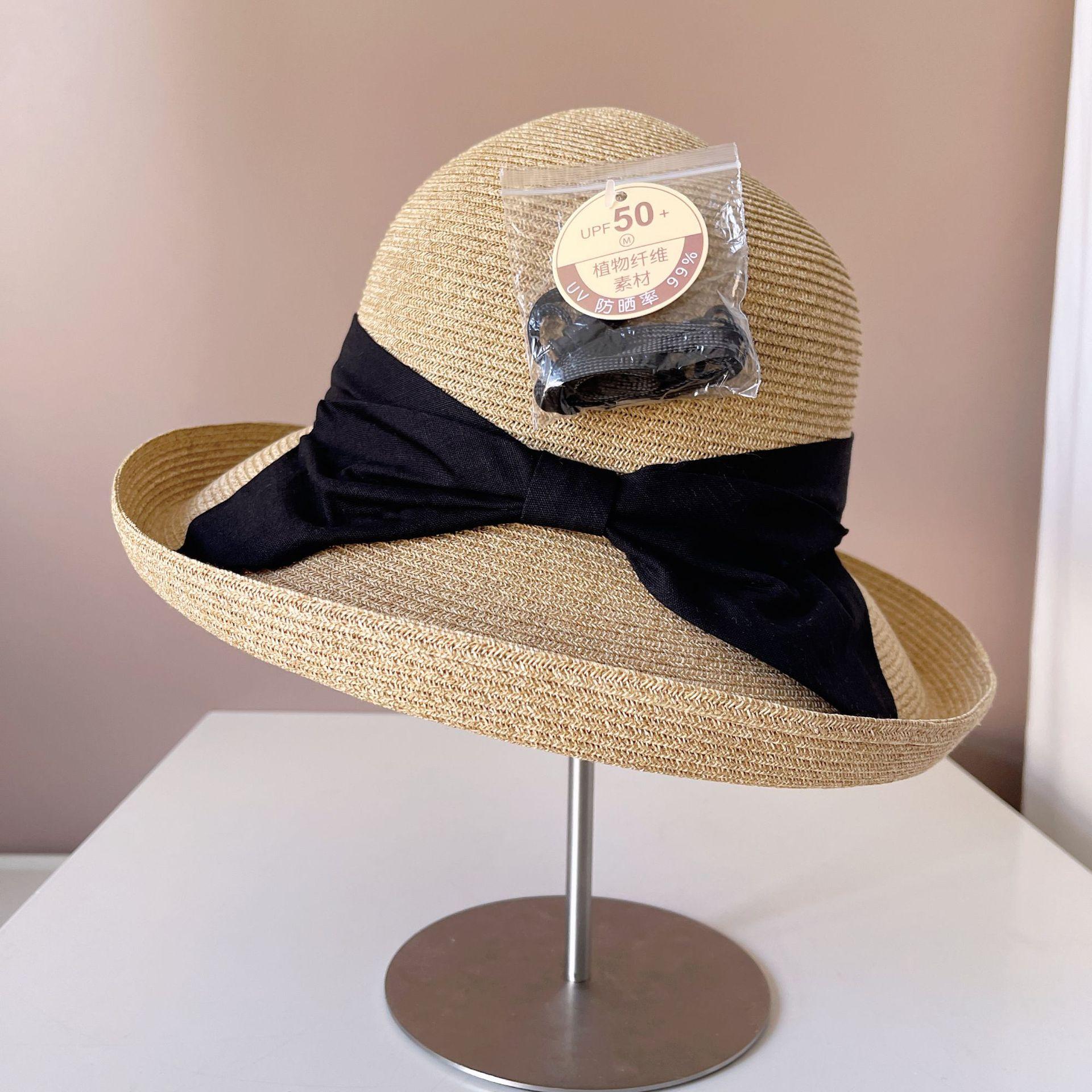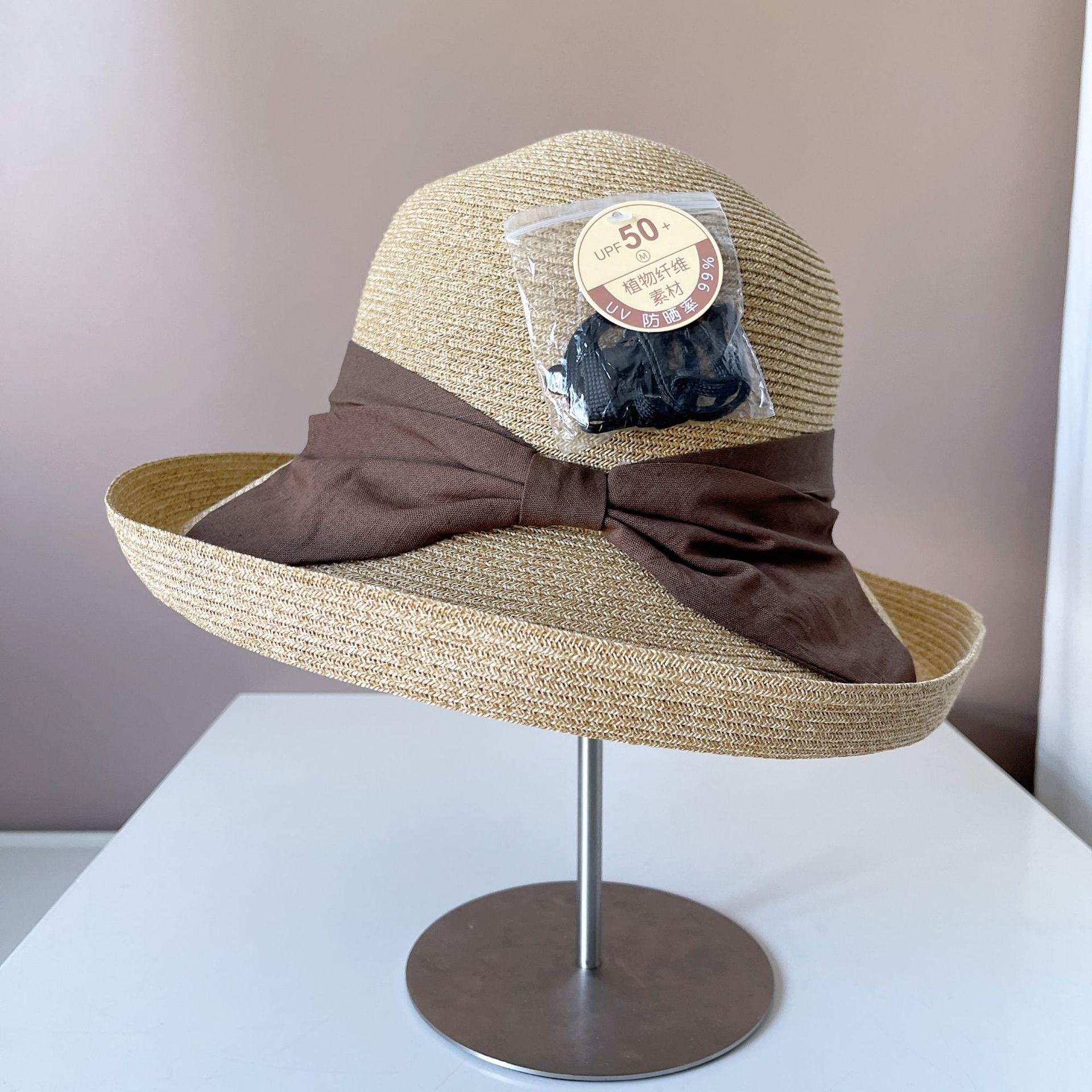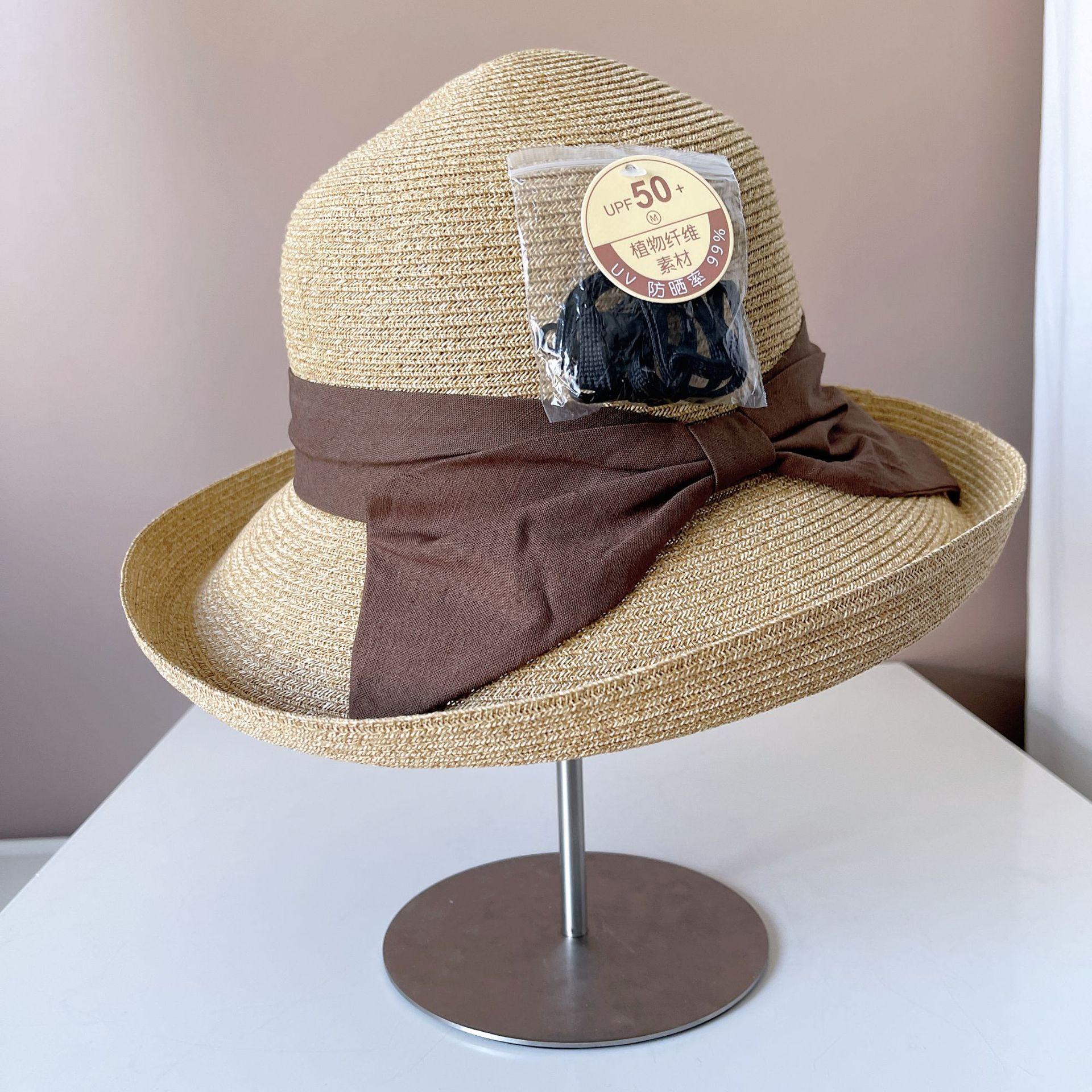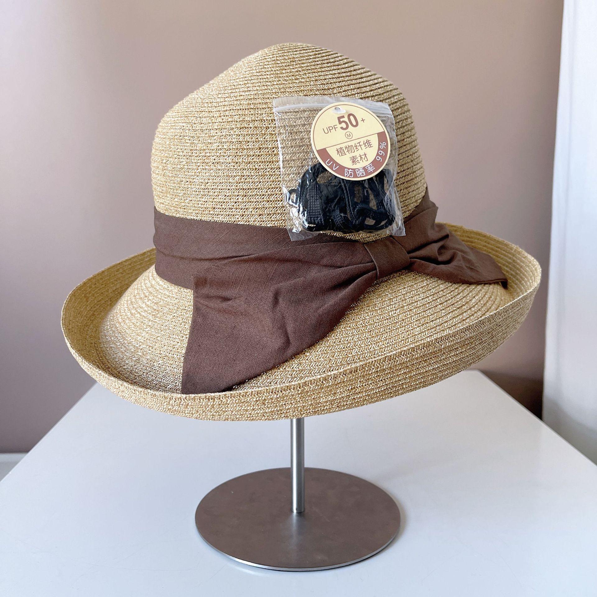 Sombrero de pescador japonés con lazo grande y vuelta, sombrero de paja con protector solar de verano para niños, sombrero de sol de borde grande, sombrero de lavabo para viajes al aire libre