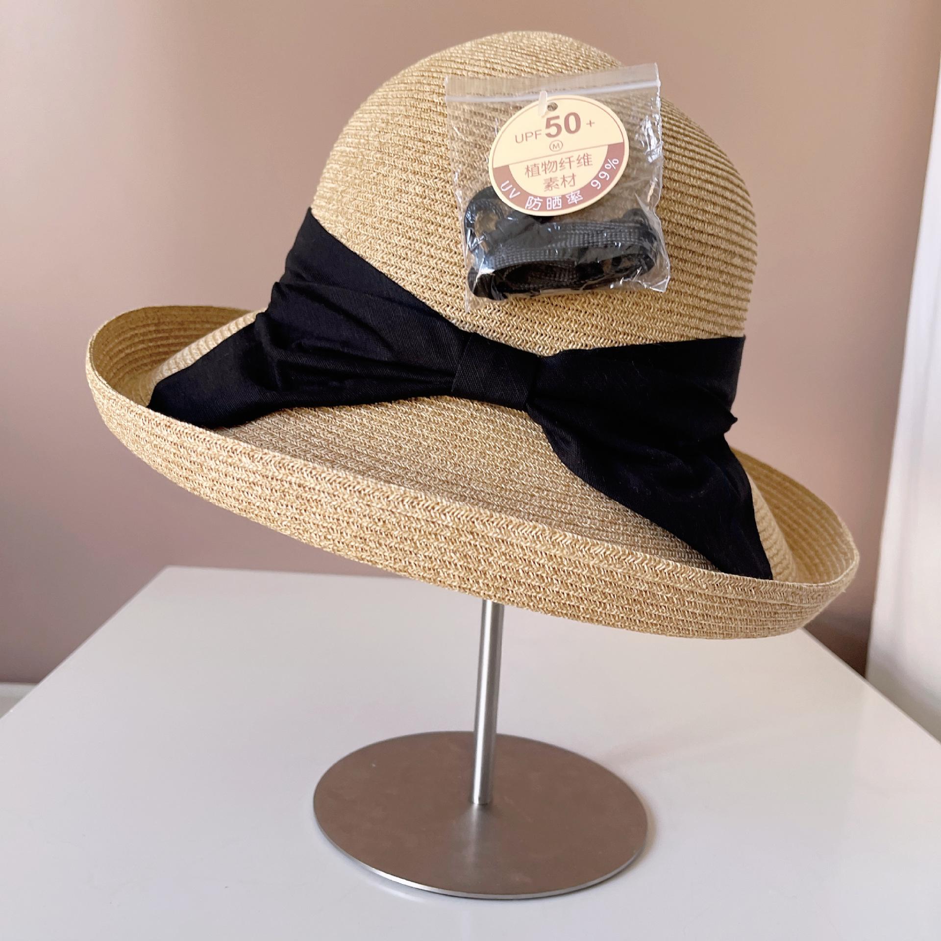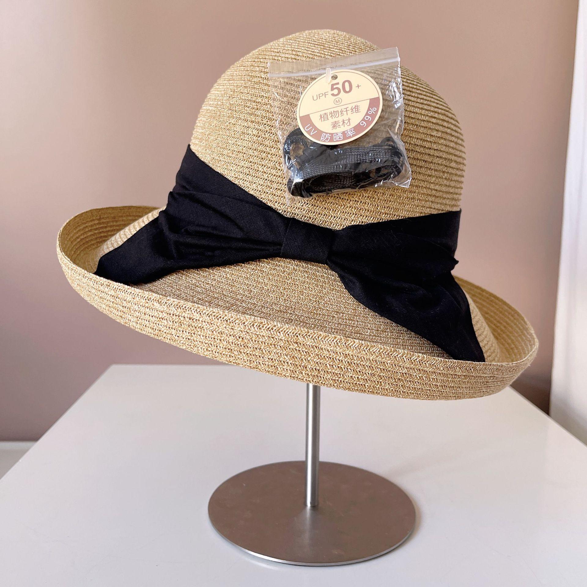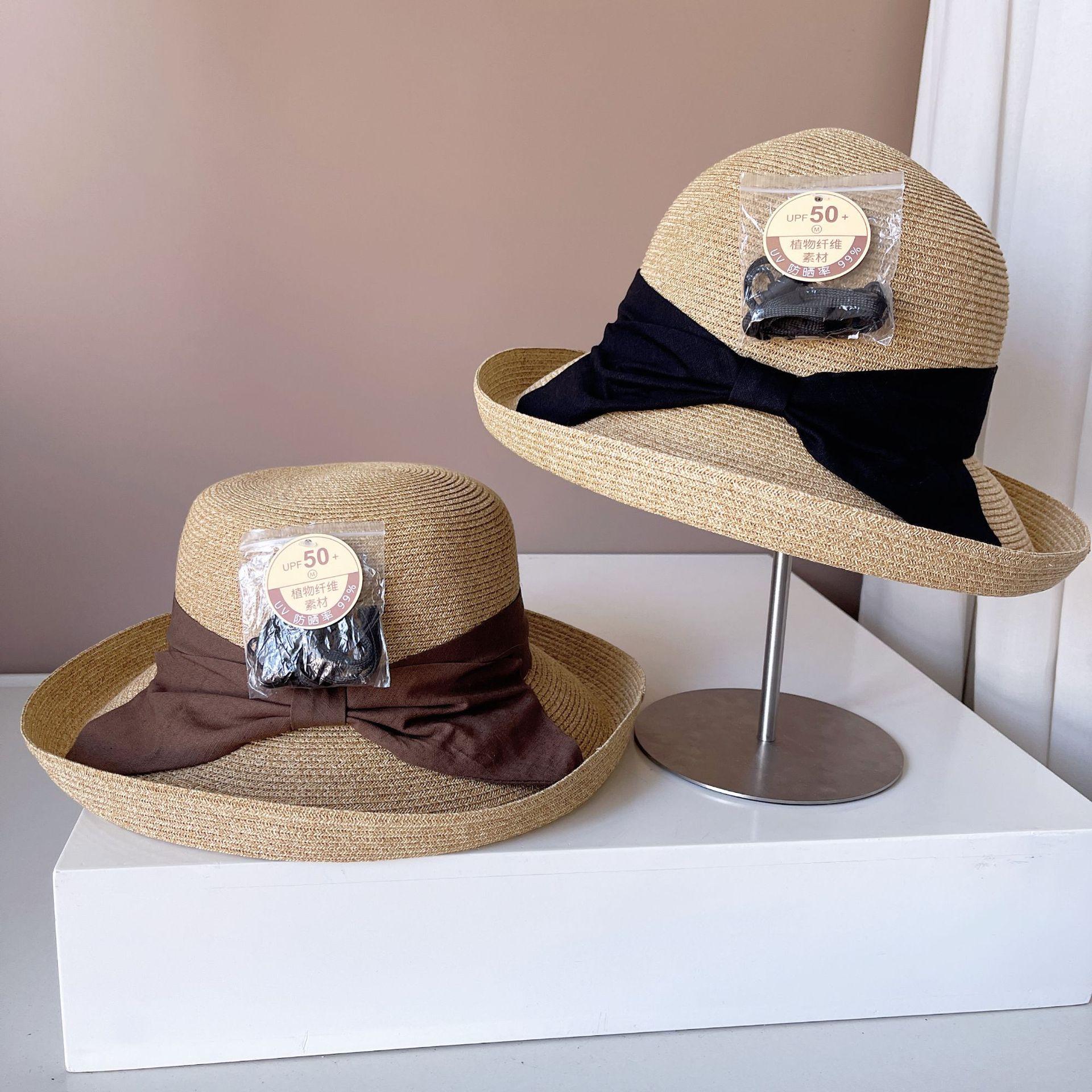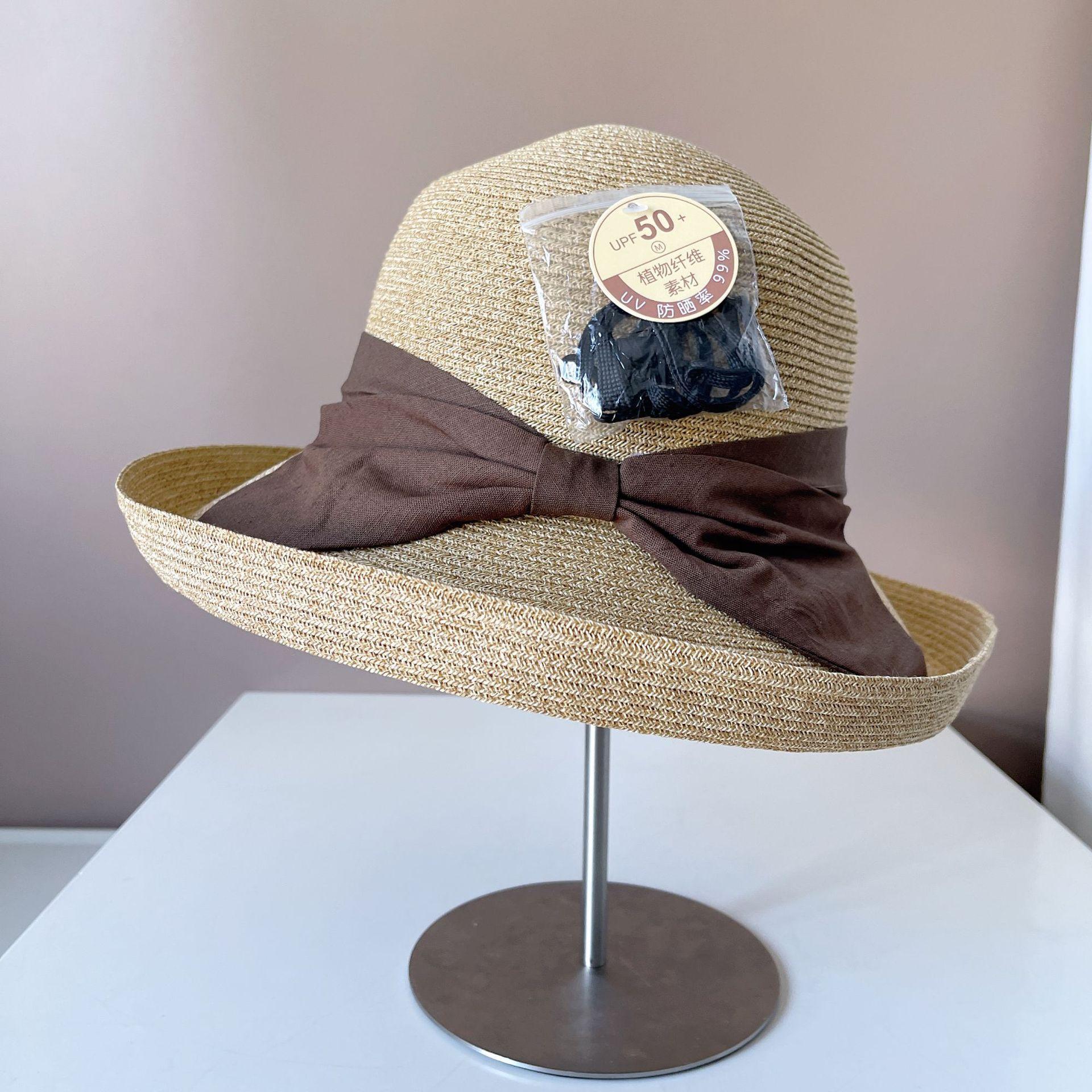 Sombrero de pescador japonés con lazo grande y vuelta, sombrero de paja con protector solar de verano para niños, sombrero de sol de borde grande, sombrero de lavabo para viajes al aire libre