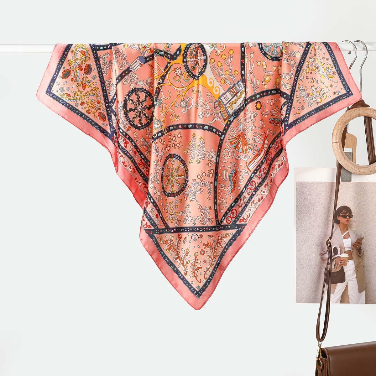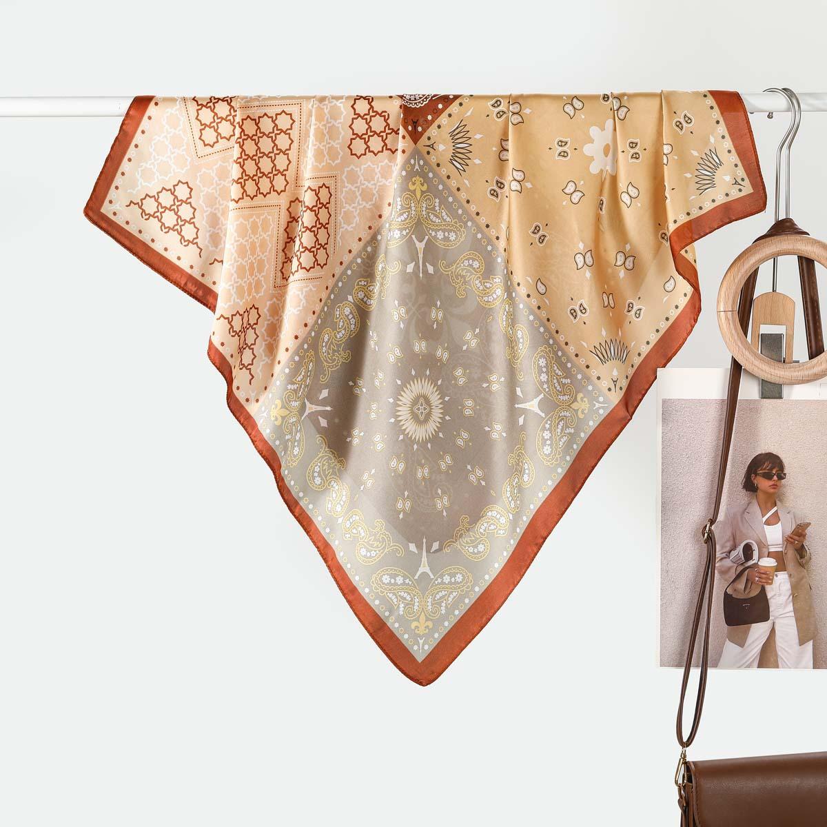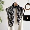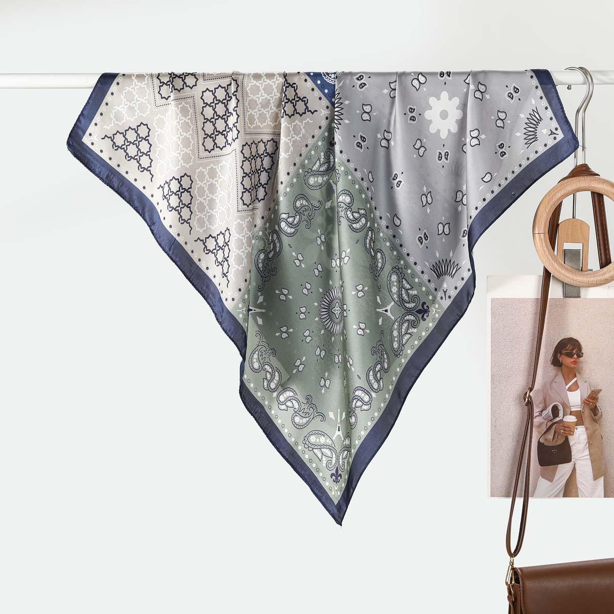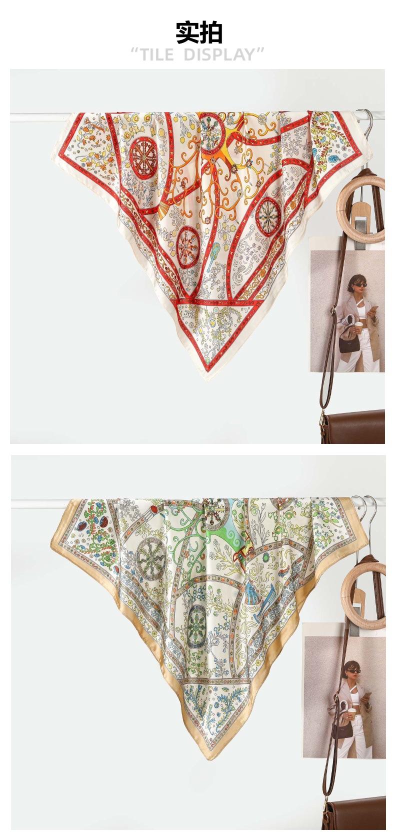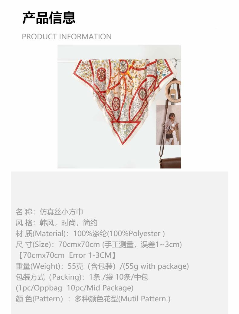 Estilo Francés 70CM Pequeño Cuadrado Seda para Mujer Rueda Geométrico Combinación de Colores Flor Pañuelo de Seda Bufanda Chal Lote