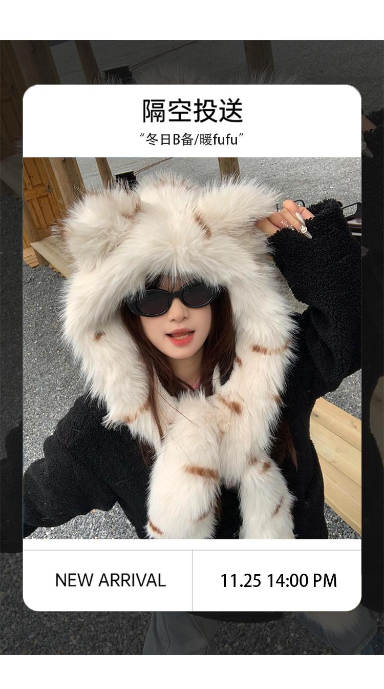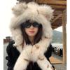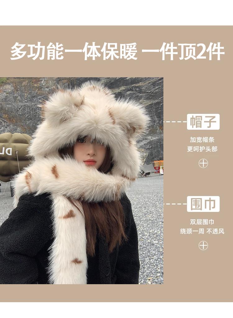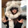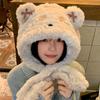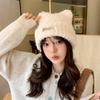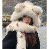 Gorro de orejas de oso para mujer, bonito y esponjoso, para otoño e invierno 2024, con protección para las orejas, grueso y cálido, Lei Feng