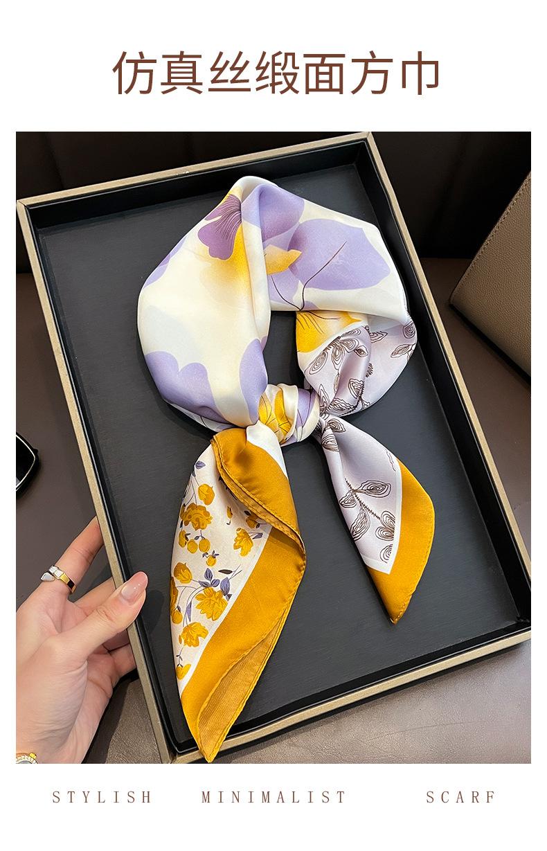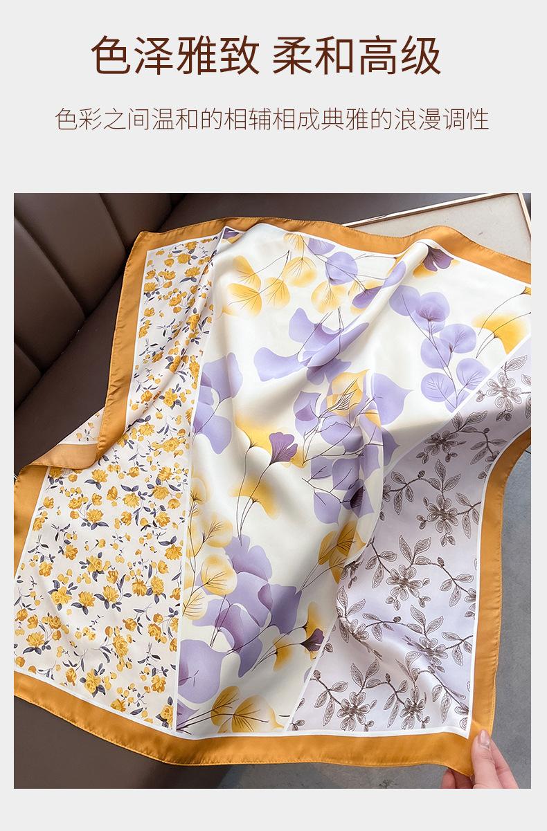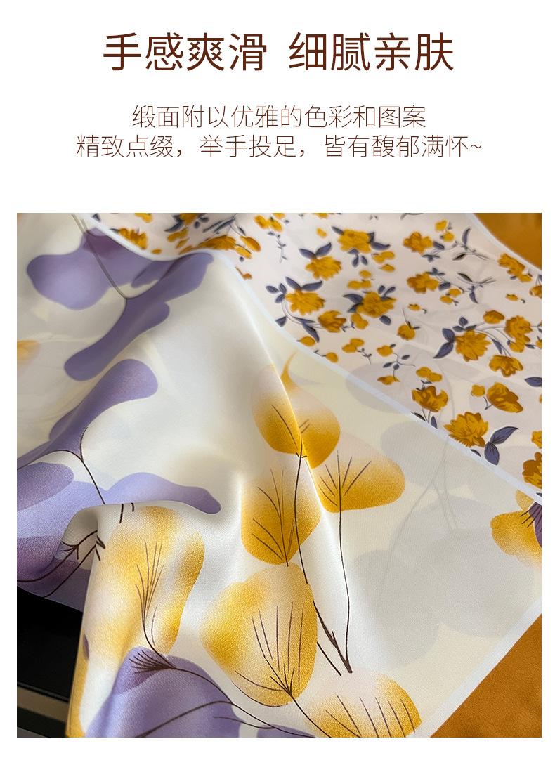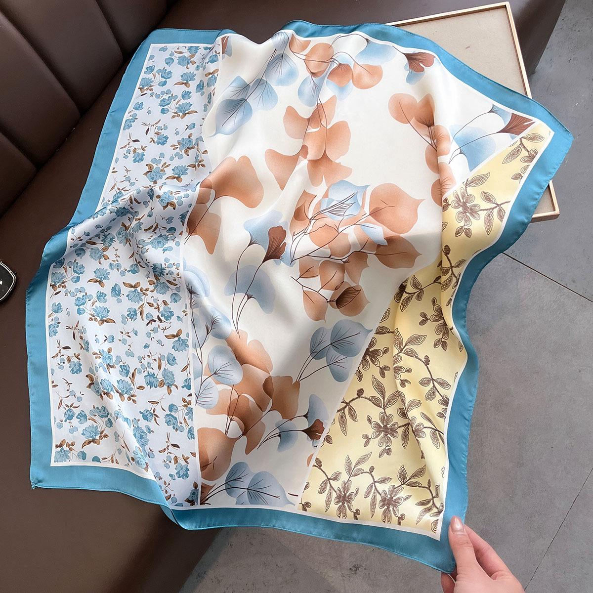 Bufanda de seda sintética de satén, cuadrada, mediana, con estampado floral, para primavera y otoño, para verano, estilo pequeño, para mujer, decorativa, versátil.