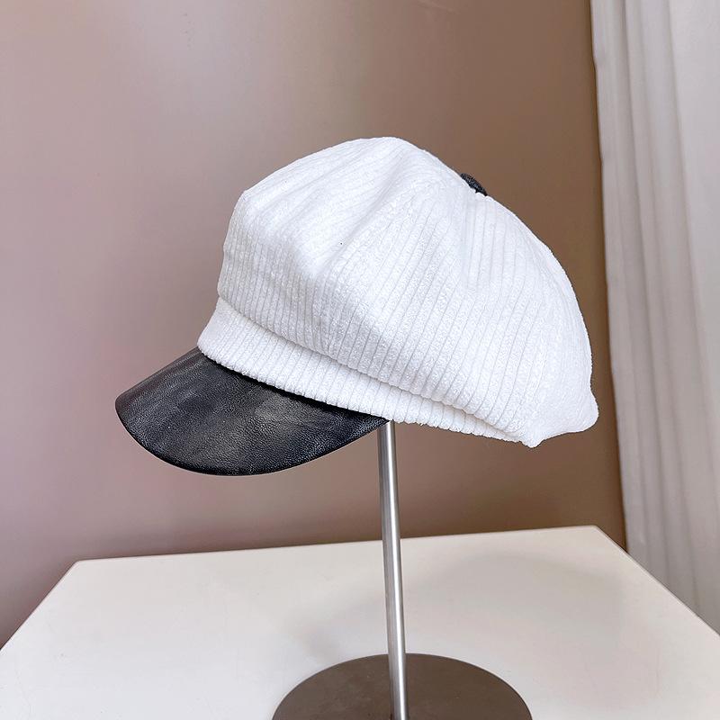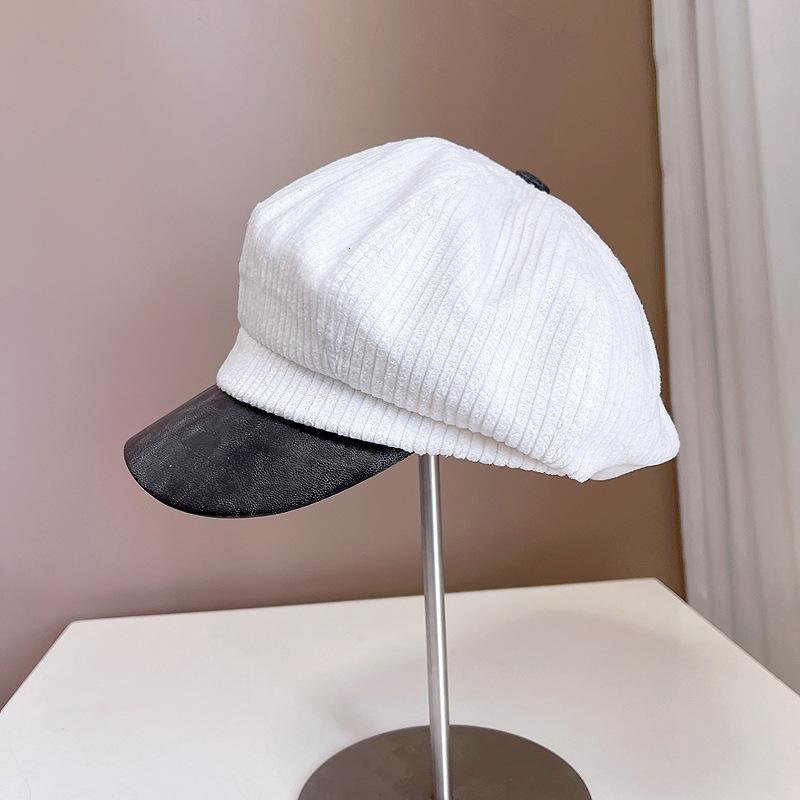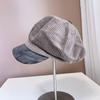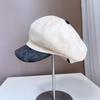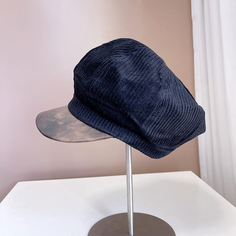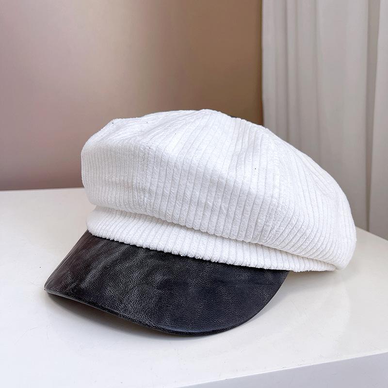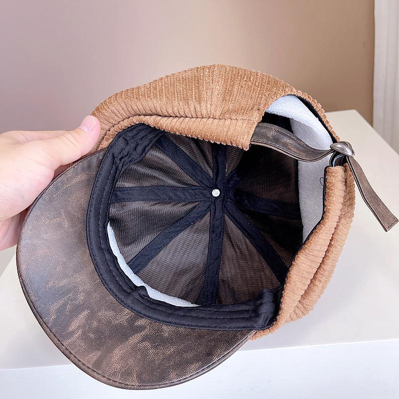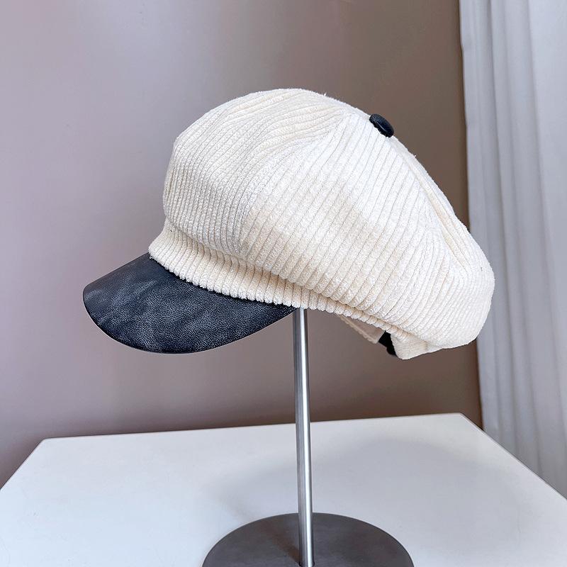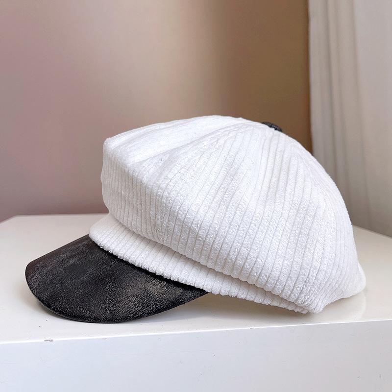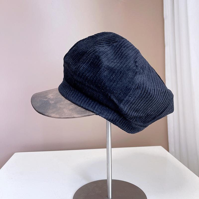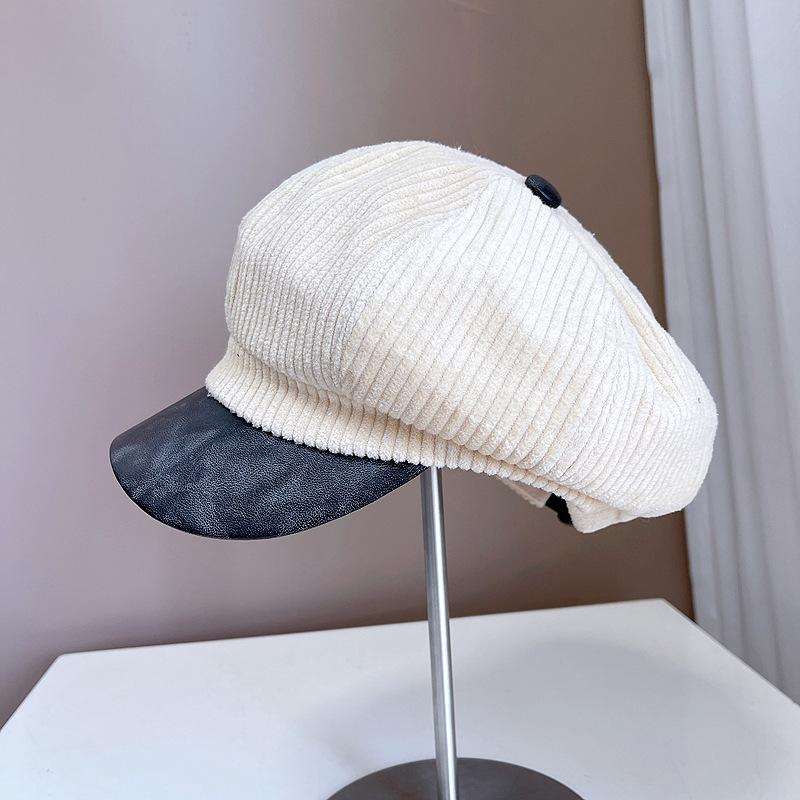 Gorra octogonal japonesa retro de pana con costuras de cuero para mujer, otoño e invierno, artística, combinable, pequeña, para exhibir en el rostro, gorra de vendedor de periódicos