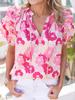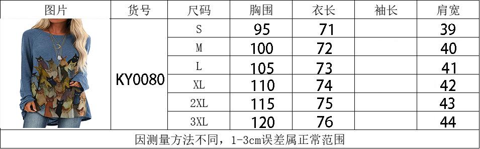 2020 Comercio Exterior Transfronterizo Moda Femenina Suelto Cuello Redondo Estampado Digital Manga Larga Top