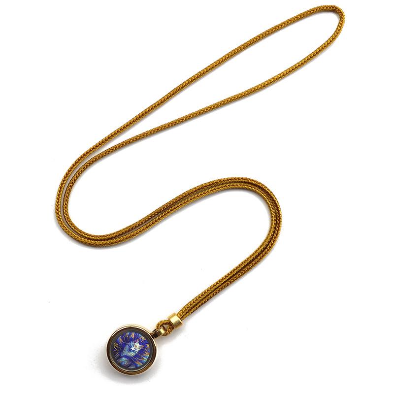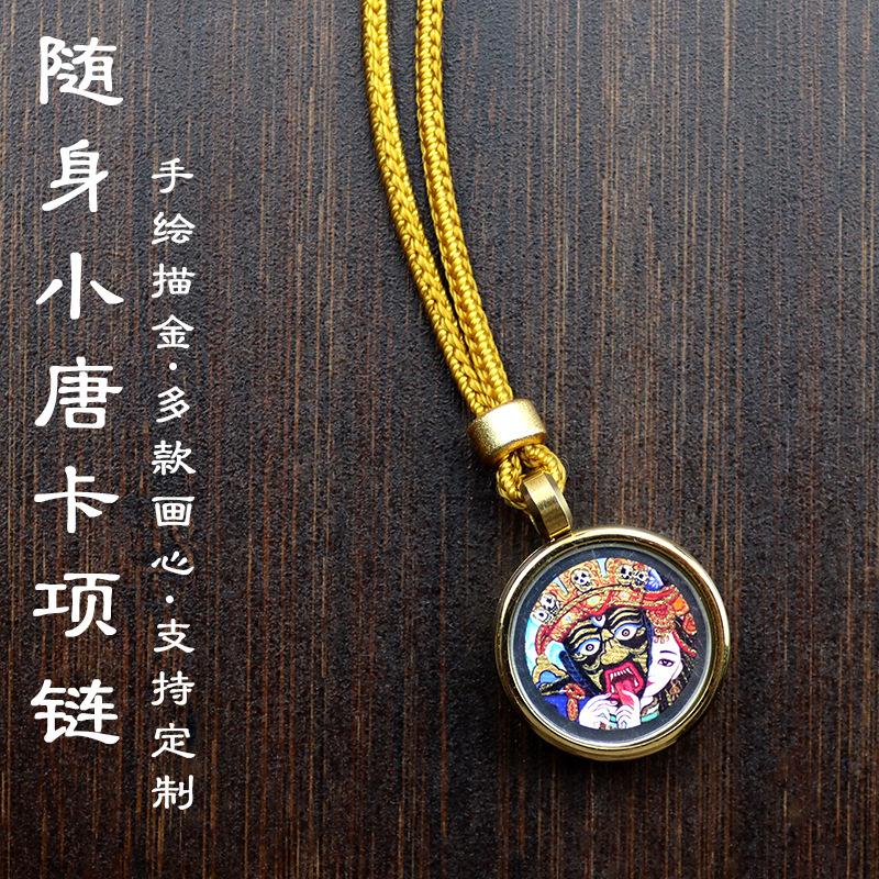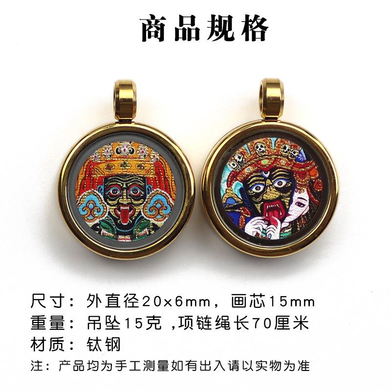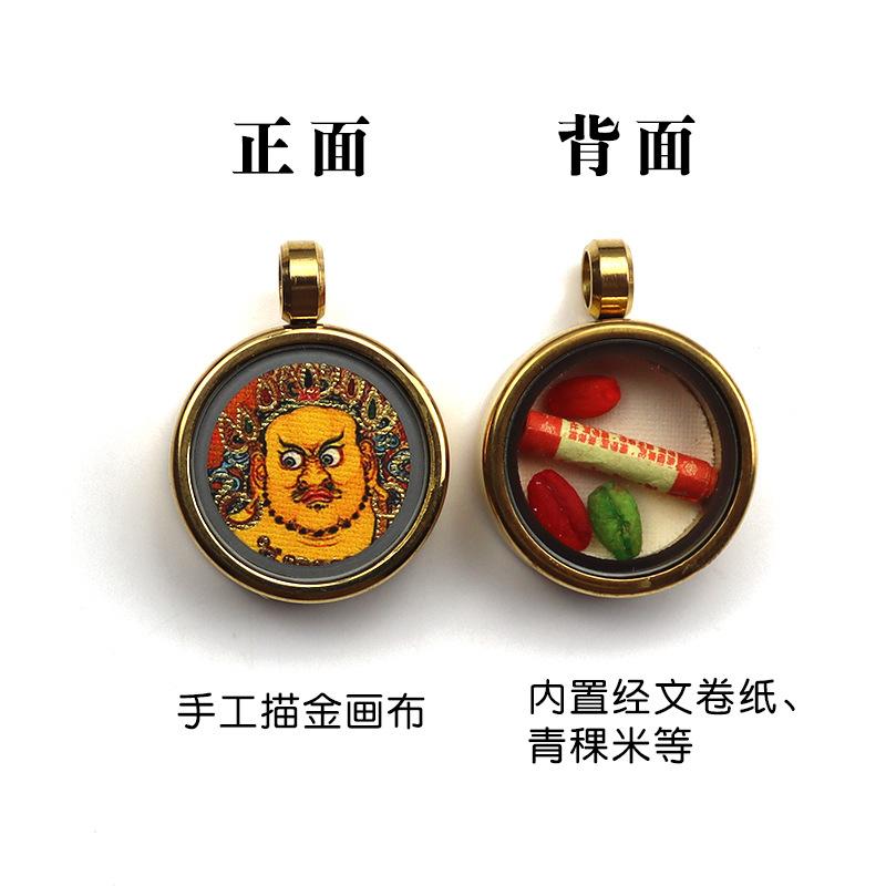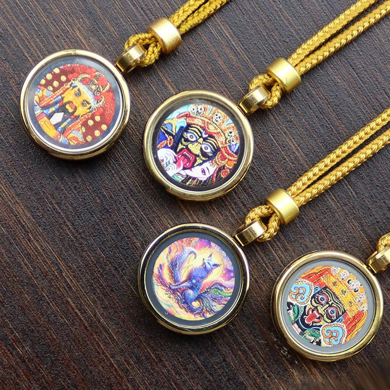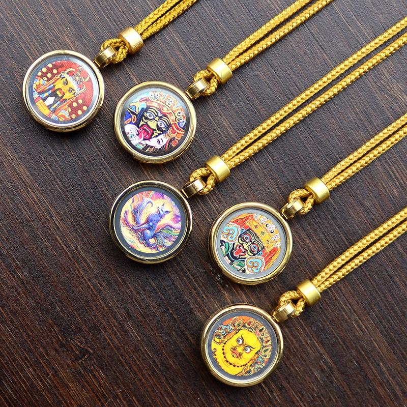 1.5 round hand-painted gold thangka pendant five eyes yellow wealth buddha zamu mini thangka necklace