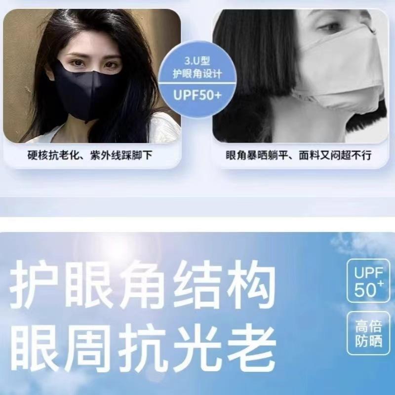 Mascarilla de Seda de Hielo de Verano Transpirable Lavable Ácido Hialurónico 3D Mascarilla Protectora Solar Protección de Ángulo de Ojo Protección UV
