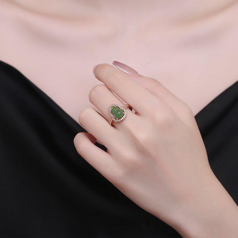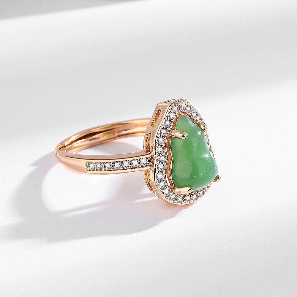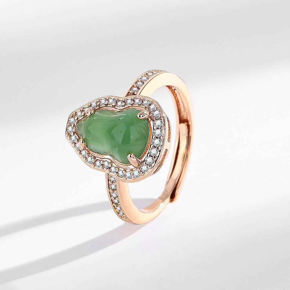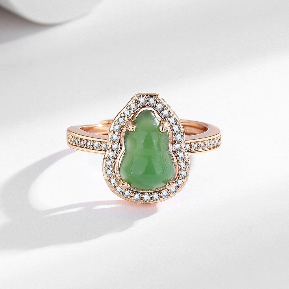 Nuevo Anillo Fulu de Moda China Anillo para Mujer Imitación Esmeralda Natural Anillo de Calabaza Anillo de Zirconia Exquisito Europeo y Americano para Mujer
