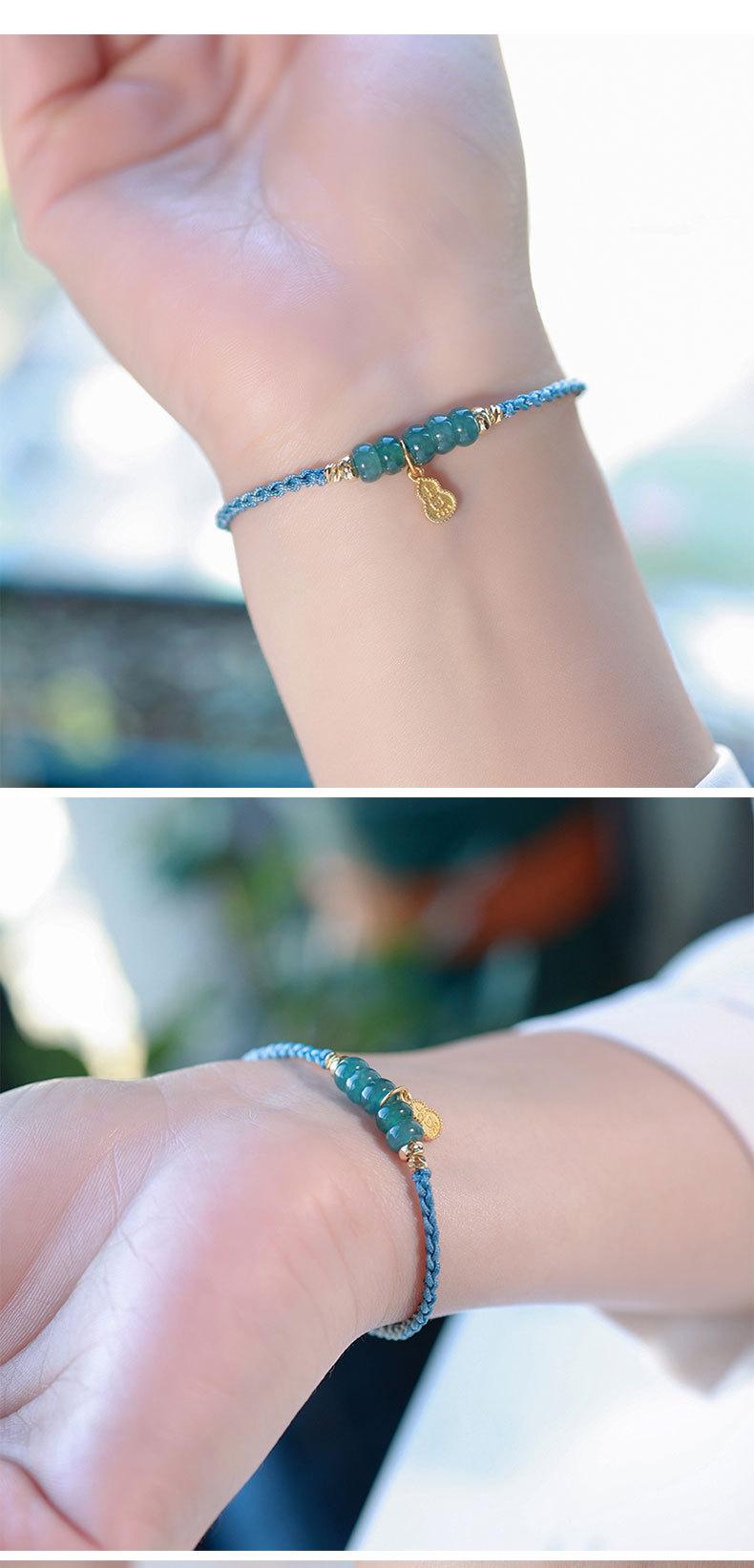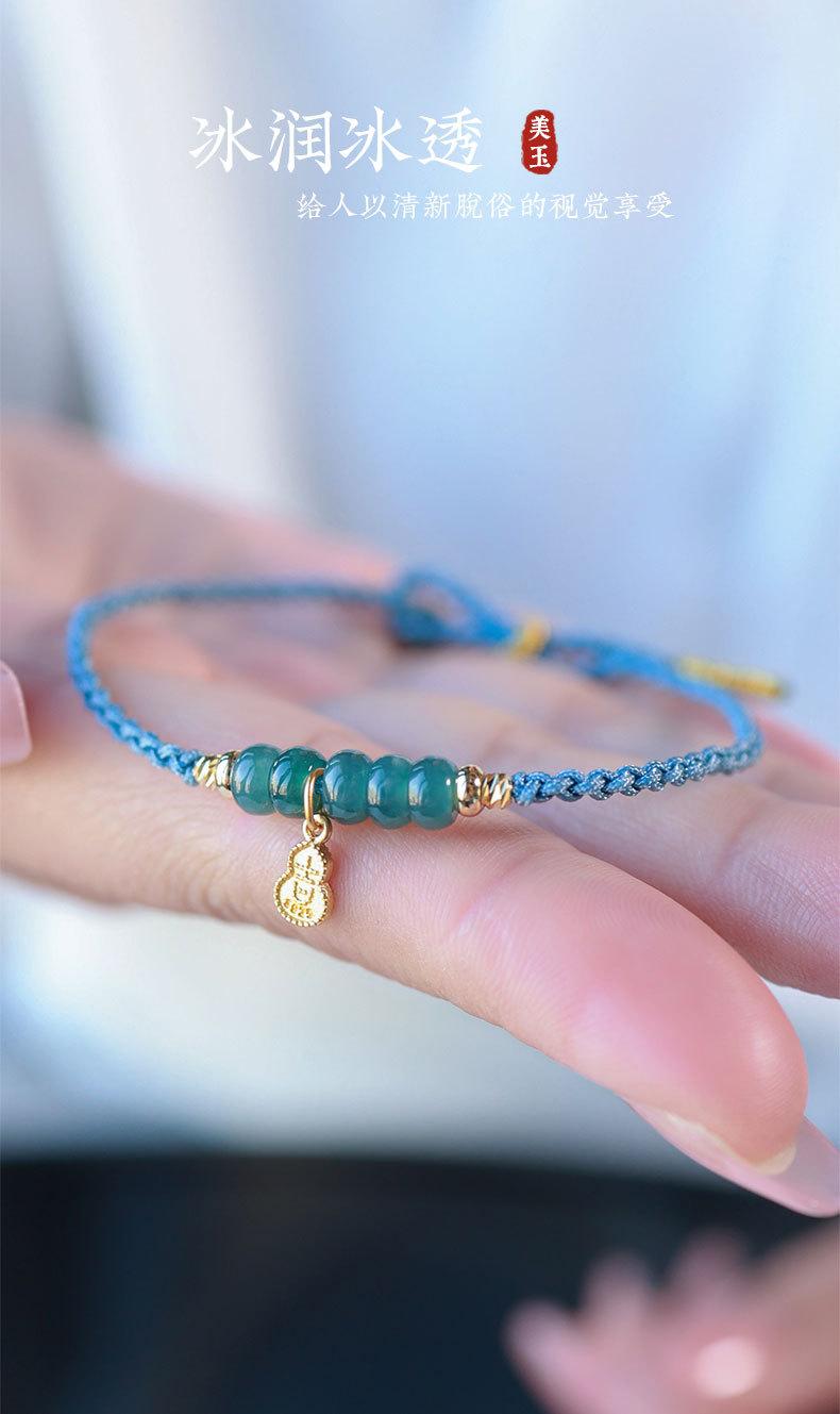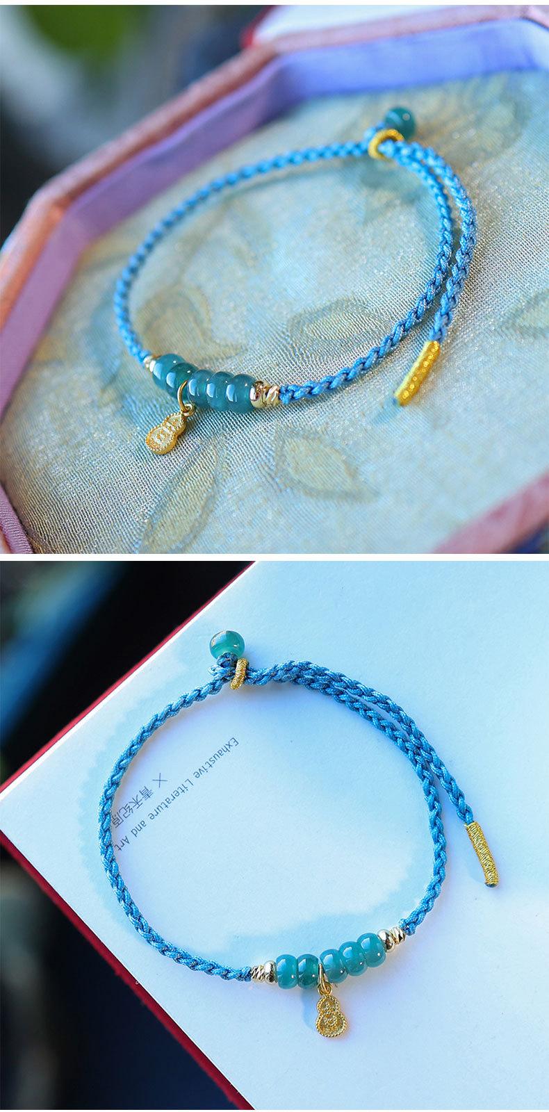 Pulsera de jade de agua azul natural fresca y dulce, pulsera retro china nueva, pulsera antigua de cuerda con cuentas de ábaco
